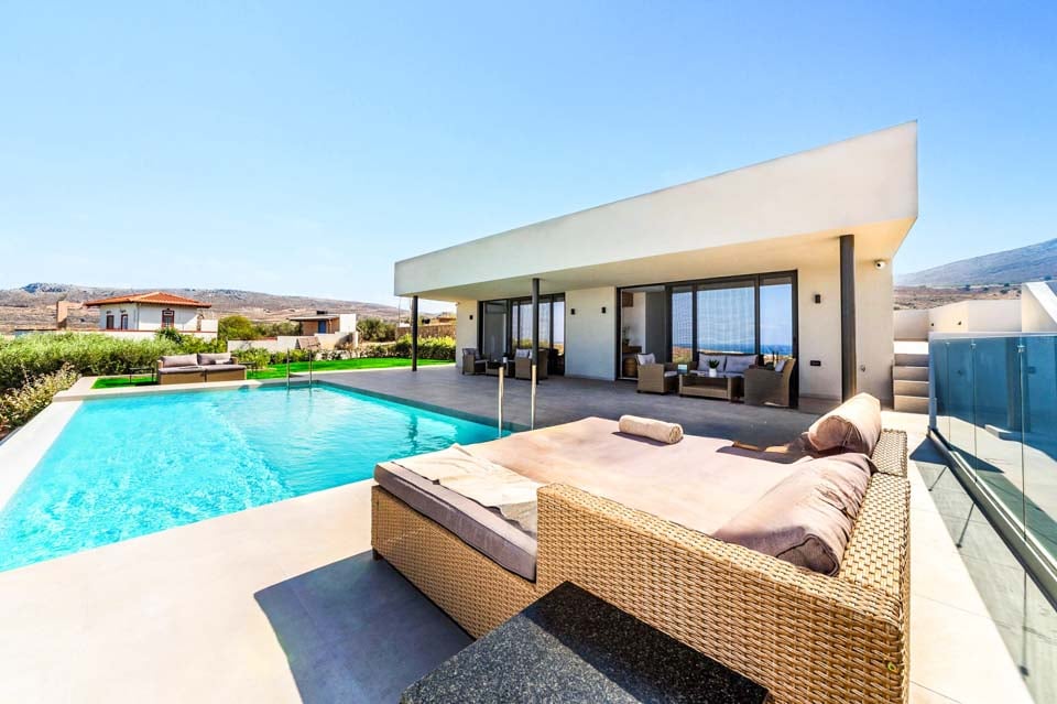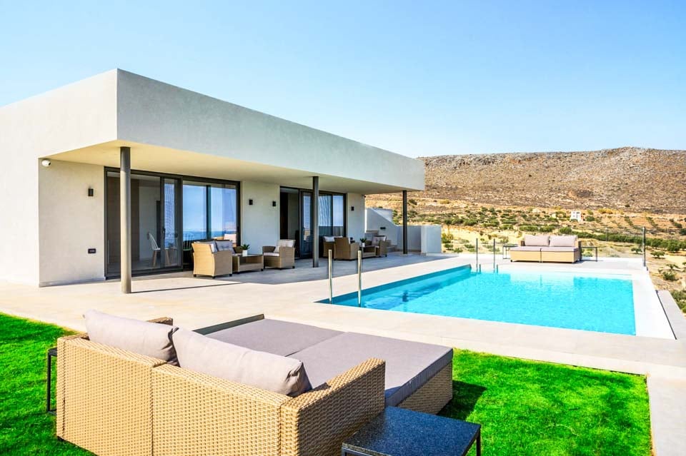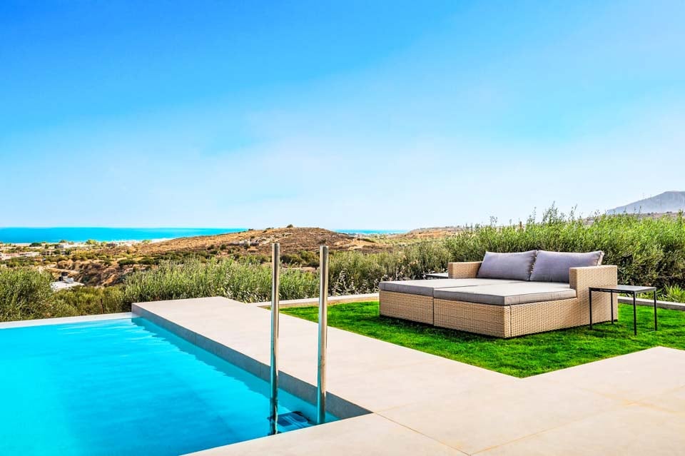 Omgeven door olijfbomen en geurige mediterrane begroeiing is de buitenruimte van Kamelia Villa 4 de perfecte plek om tot rust te komen. Of u nu 's ochtends van uw koffie geniet op het terras, of gewoon ontspant in de Kretenzische zon op de ligstoelen bij het zwembad, de buitenruimtes van de villa zijn ontworpen voor ontspanning en verbinding.