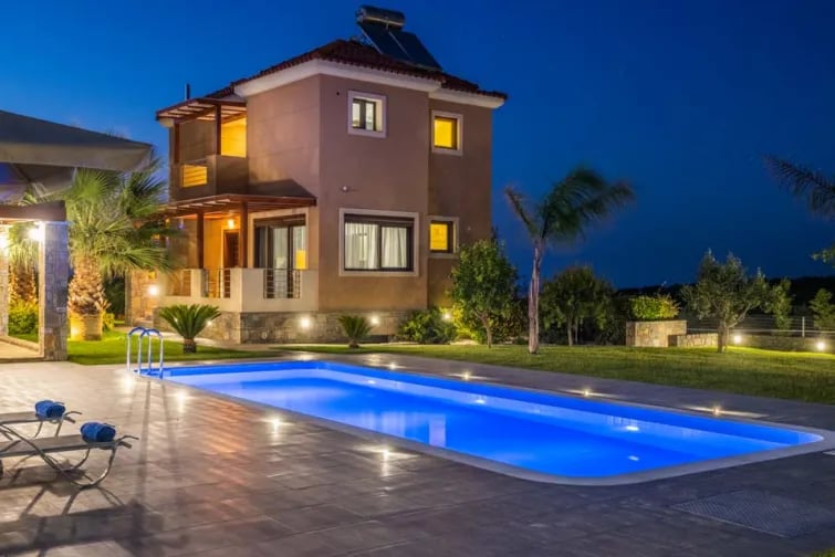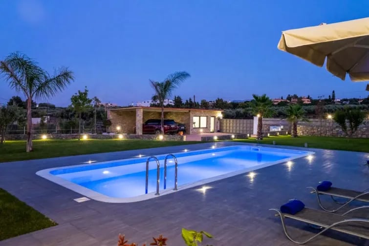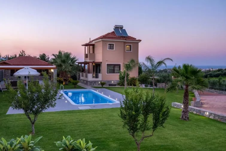 Villa David Heraklion, omgeven door betoverende tuinen en met een adembenemend uitzicht, is een moderne villa met 5 slaapkamers en een privézwembad, gelegen op slechts 10 km van Heraklion, de hoofdstad van Kreta. Deze villa is gunstig gelegen nabij de luchthaven en biedt slaapgelegenheid aan maximaal 9 gasten in smaakvol en stijlvol ingerichte ruimtes met airconditioning. Villa David Heraklion zal zeker indruk maken, dankzij het fantastische privézwembad, de uitgestrekte tuinen met talrijke gemeubileerde zitjes om buiten te vertoeven en het stijlvolle interieur.