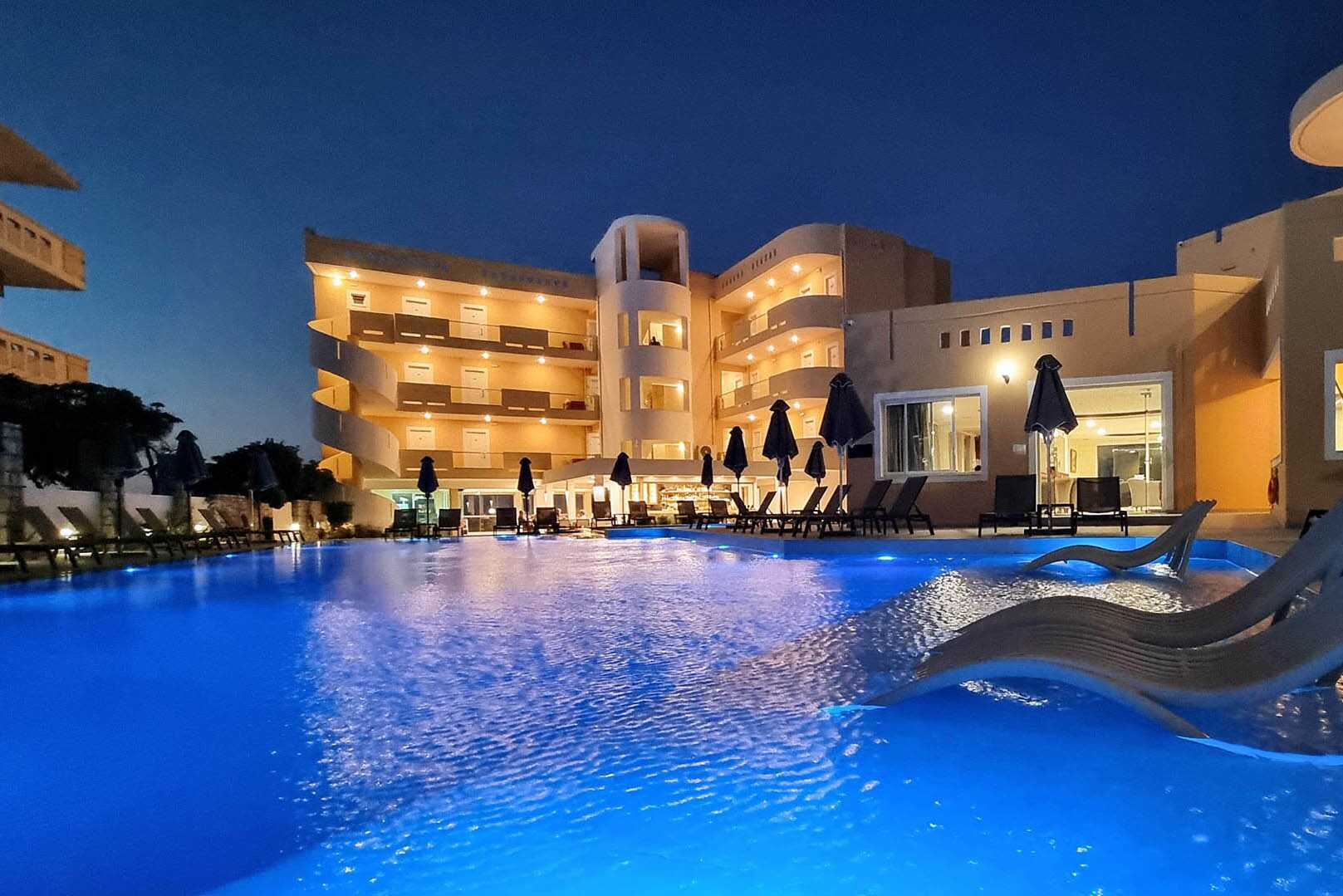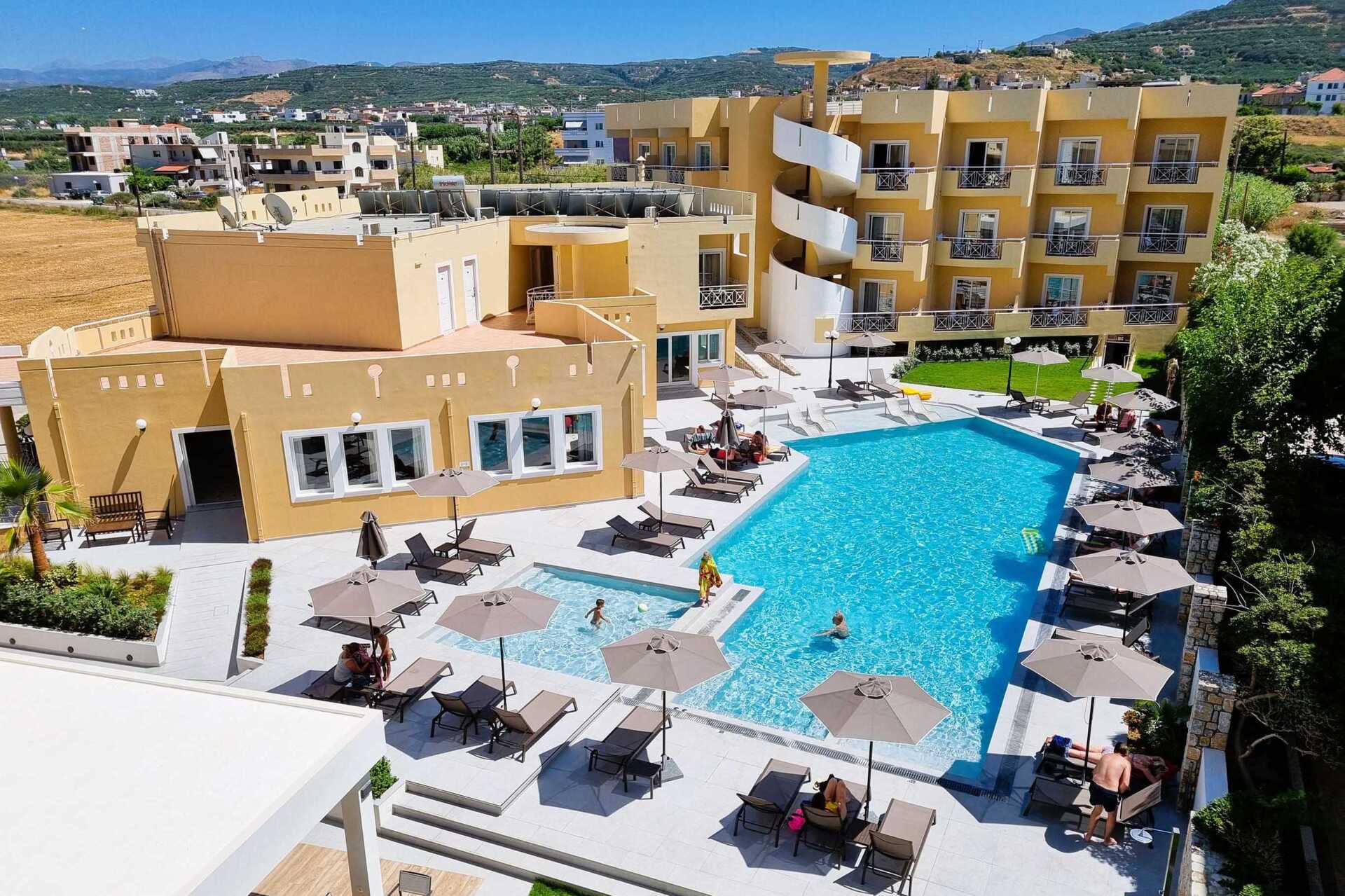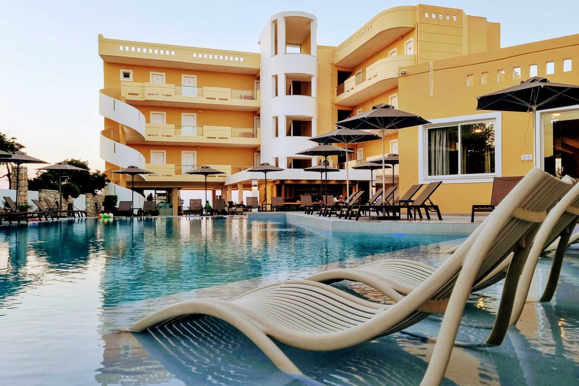 Het hotel bestaat uit drie gebouwen, waarvan twee met een lift. Minimarkt. Als je Kreta verkent met een huurauto, kun je buiten parkeren bij het hotel. Ongeveer 600 meter naar de strandpromenade met tavernes en cafés.