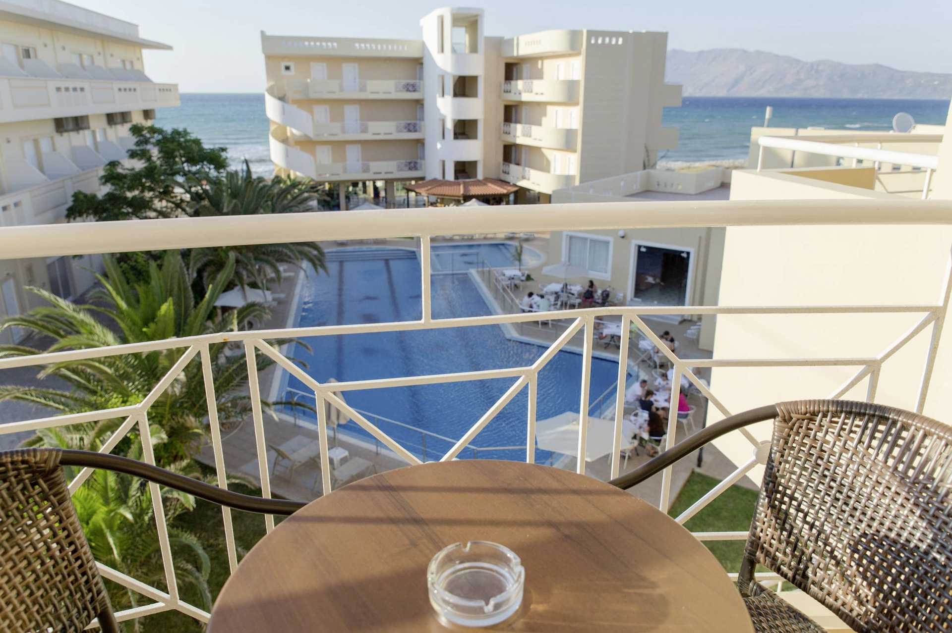 Tweepersoonskamer met balkon met uitzicht op zee, met beperkt uitzicht op zee of met uitzicht op het zwembad. Een tweepersoonsbed of twee eenpersoonsbedden. Mogelijkheid voor een extra bed op de slaapbank. Wifi en airconditioning inbegrepen. Kluisje tegen betaling. Koelkast. Tv met internationale zenders. Föhn. Badkamer met bad of douche en toilet. Schoonmaak 6 keer/week.