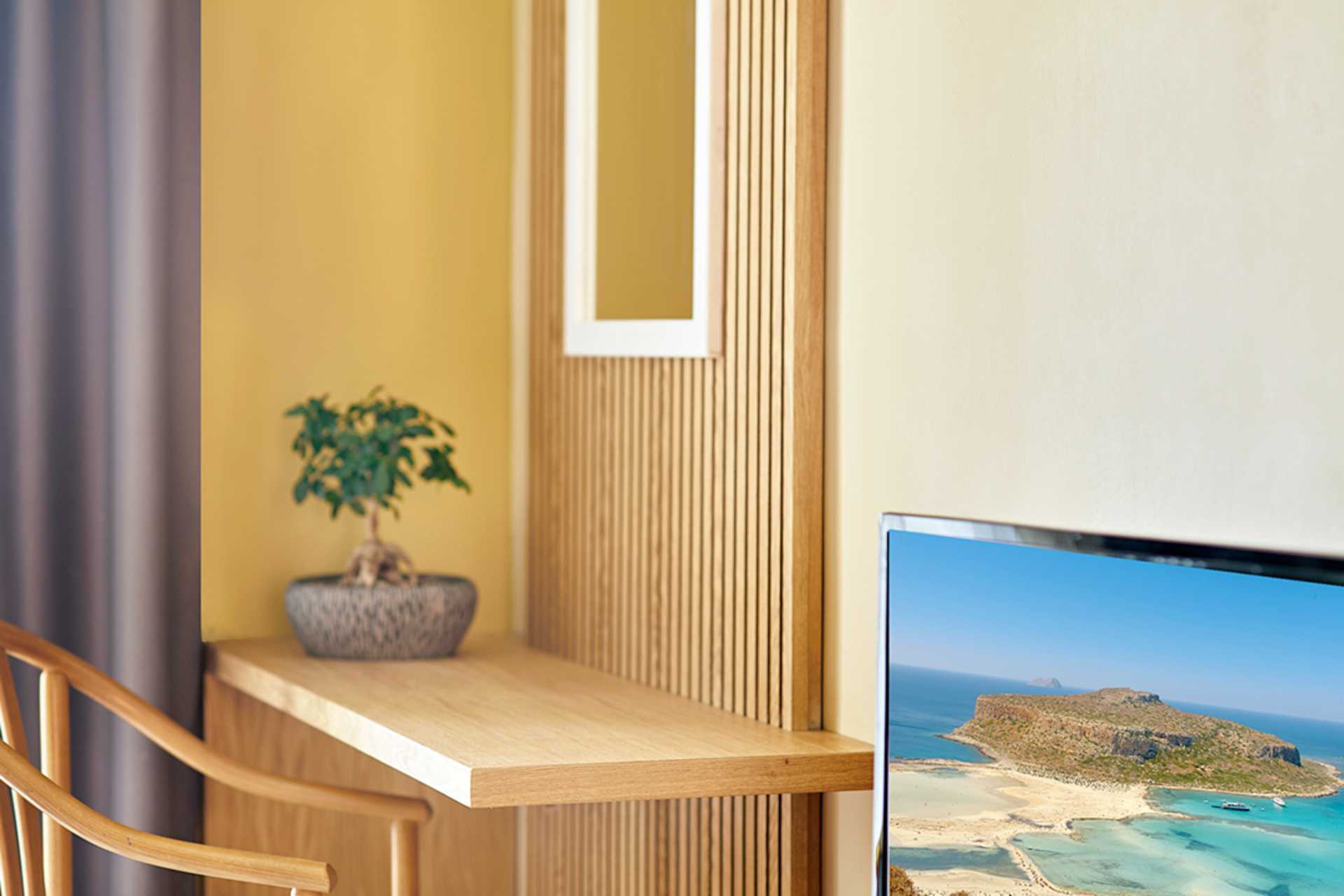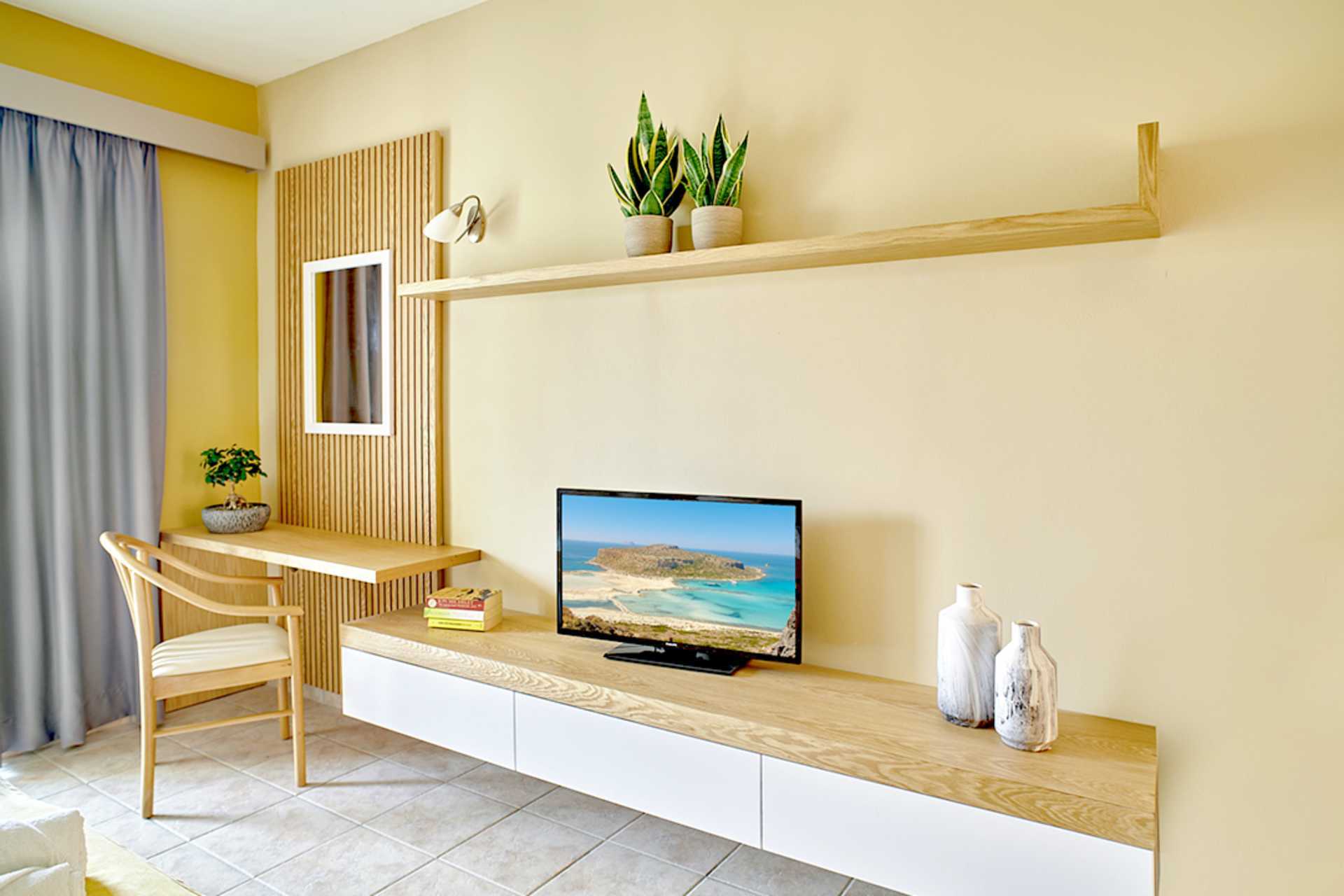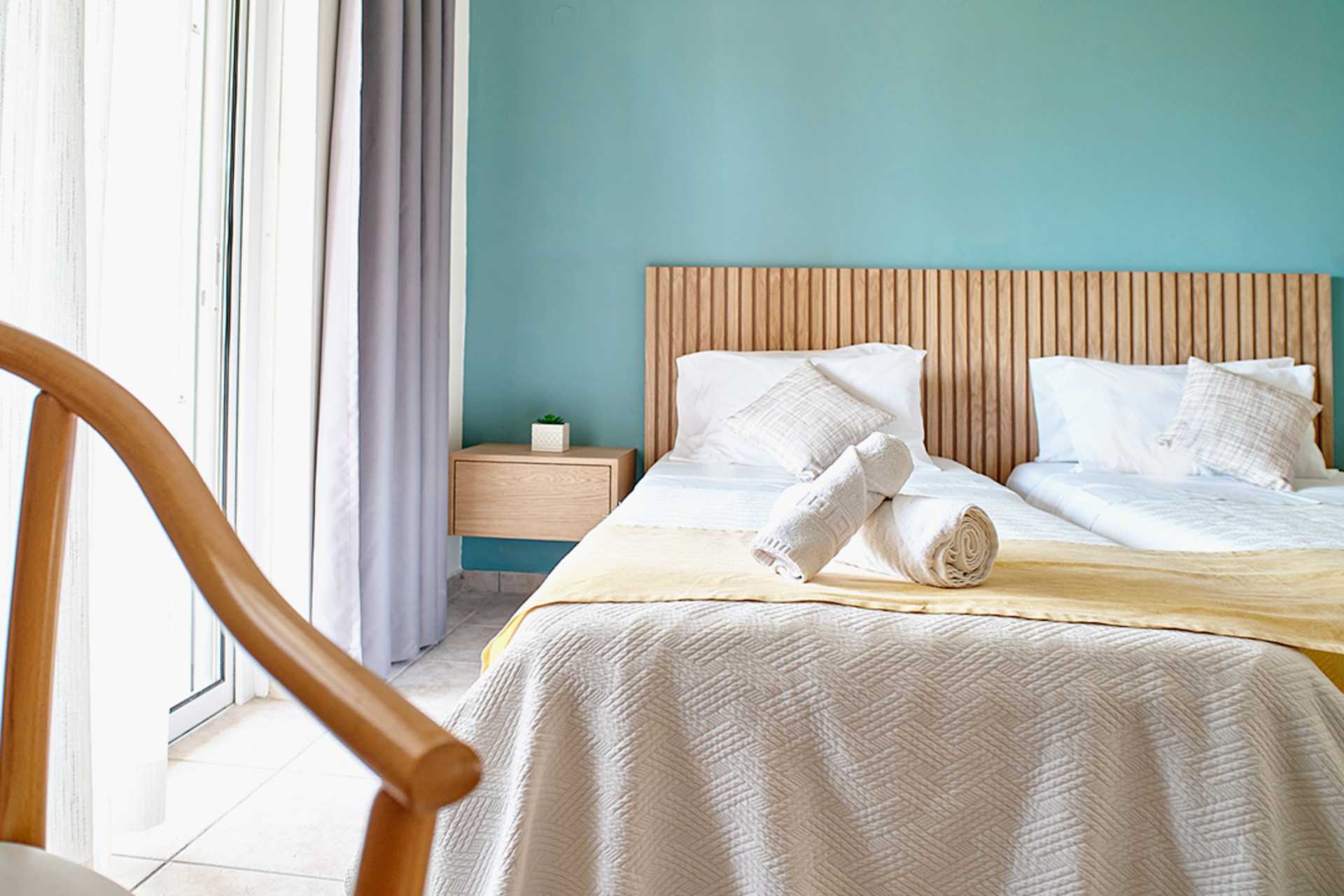 Tweekamerappartement met balkon of balkon op de begane grond, sommige met uitzicht op het zwembad. Slaapkamer en gecombineerde woonkamer met kitchenette. In sommige appartementen zijn er enkele niveauverschillen van enkele treden. Twee eenpersoonsbedden. Mogelijkheid voor extra bedden in slaapbank. Minikeuken met kookplaten, koelkast met vriesvak, magnetron, koffiezetapparaat, waterkoker, broodrooster en eenvoudige keukenapparatuur. Wifi, airconditioning en kluisje inbegrepen. Tv met internationale zenders. Föhn. Badkamer met bad of douche en toilet. Schoonmaak 6 keer/week.