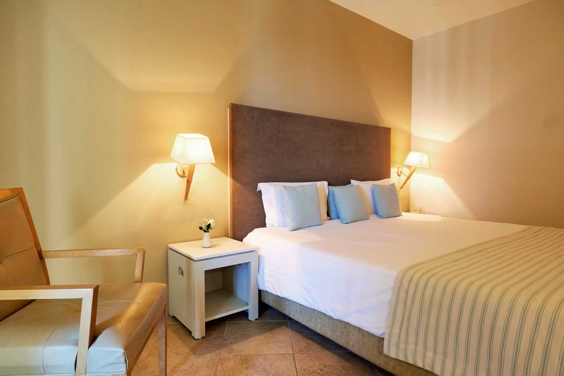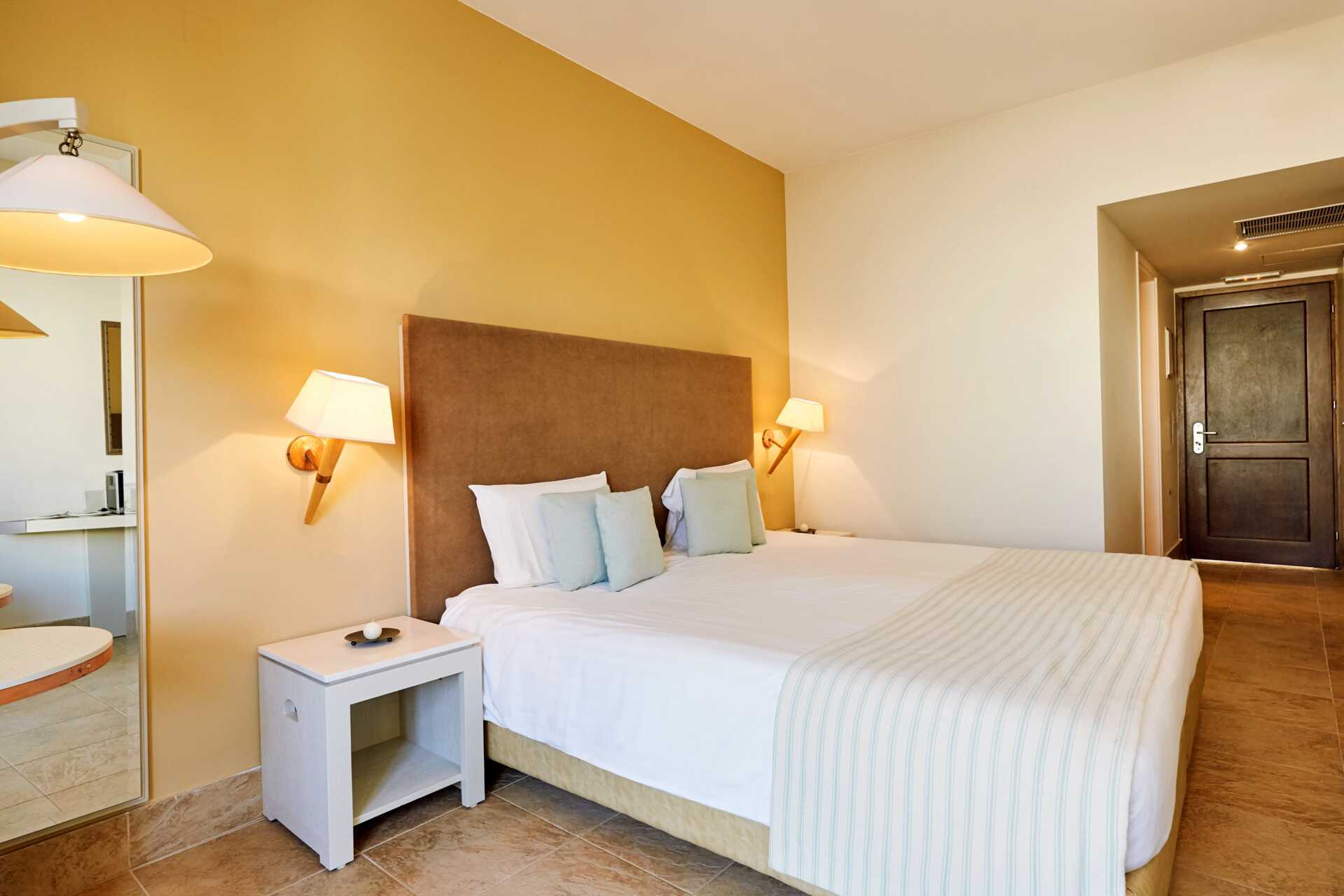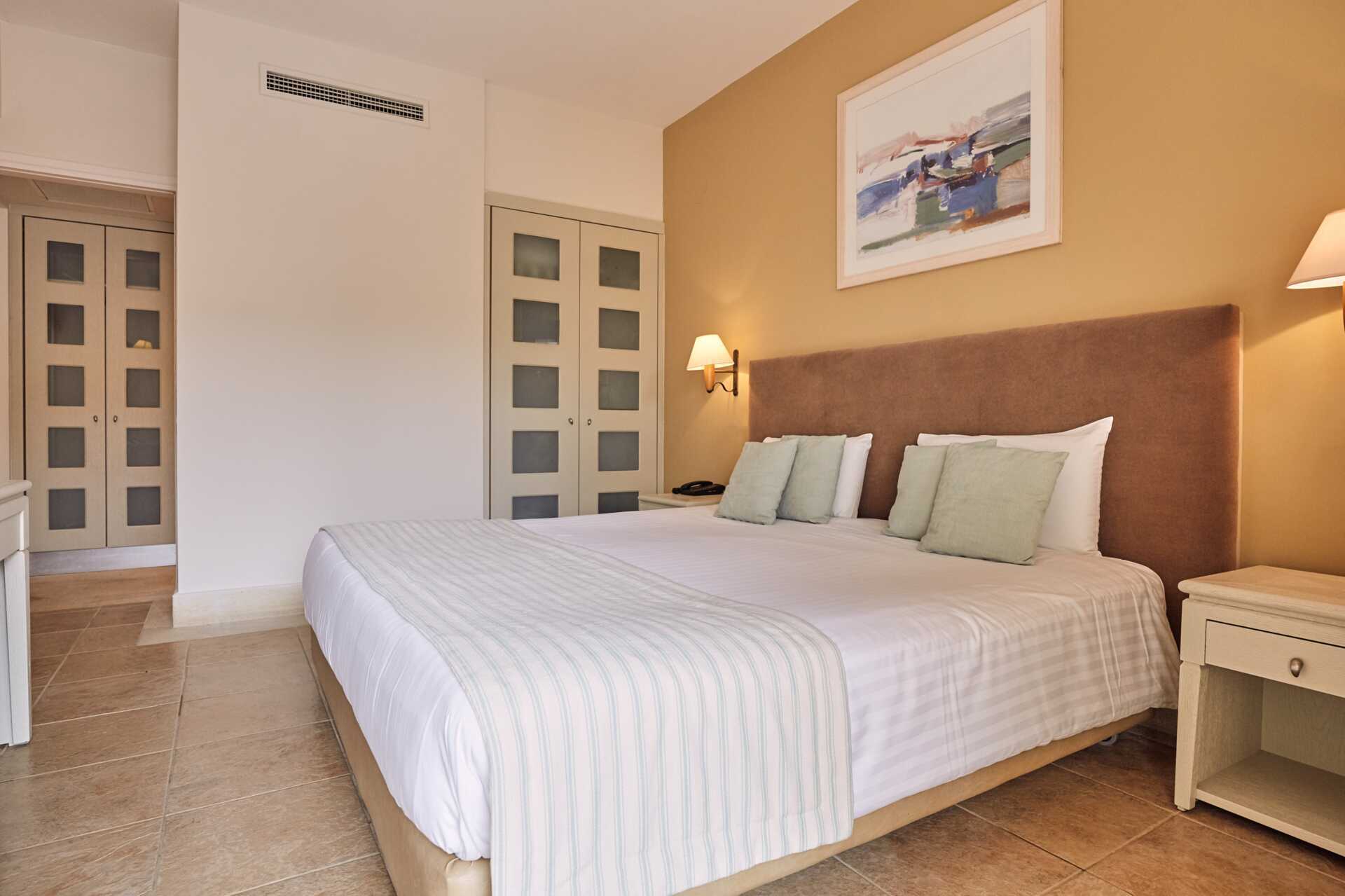 Tweepersoonskamer met grondterras met uitzicht op gedeeld zwembad, sommige met uitzicht op zee. Ligstoelen en parasols op de patio. Enkele treden omhoog naar het grondterras. Een tweepersoonsbed of twee eenpersoonsbedden. Wifi, centrale airconditioning en kluisje inbegrepen. Minibar tegen betaling. Espressomachine - capsules inbegrepen en dagelijks bijgevuld. Tv met internationale zenders. Badjassen en hotelslippers. Föhn. Badkamer met bad of douche en toilet. Schoonmaak 7 keer / week.