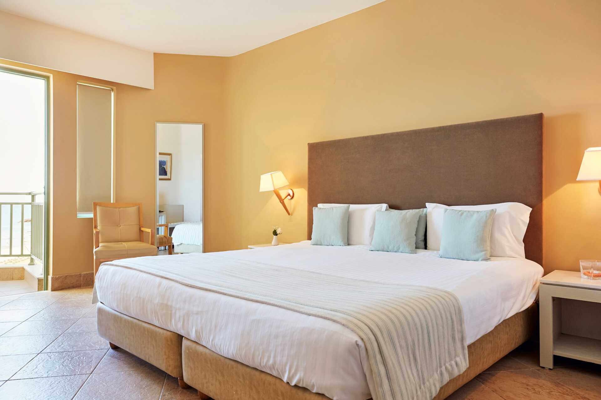 Juniorsuites met balkon en uitzicht op zee. Een tweepersoonsbed of twee eenpersoonsbedden. Mogelijkheid voor een extra bed op de slaapbank. Wifi, airconditioning en kluis inbegrepen. Minibar tegen betaling. Espressomachine - capsules inbegrepen en dagelijks bijgevuld. Televisie met internationale zenders Badjassen en pantoffels. Föhn. Badkamer met bad of douche en toilet. Schoonmaak 7 keer/week.