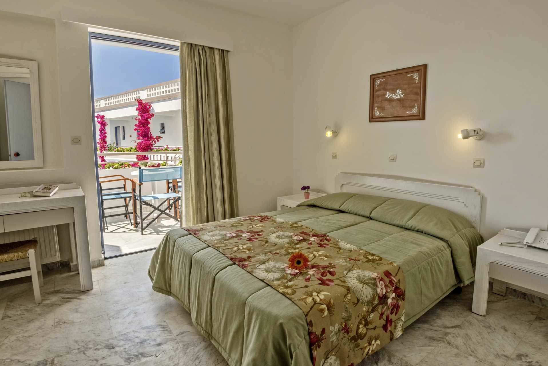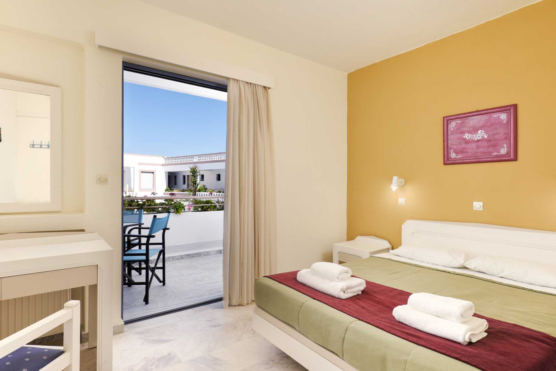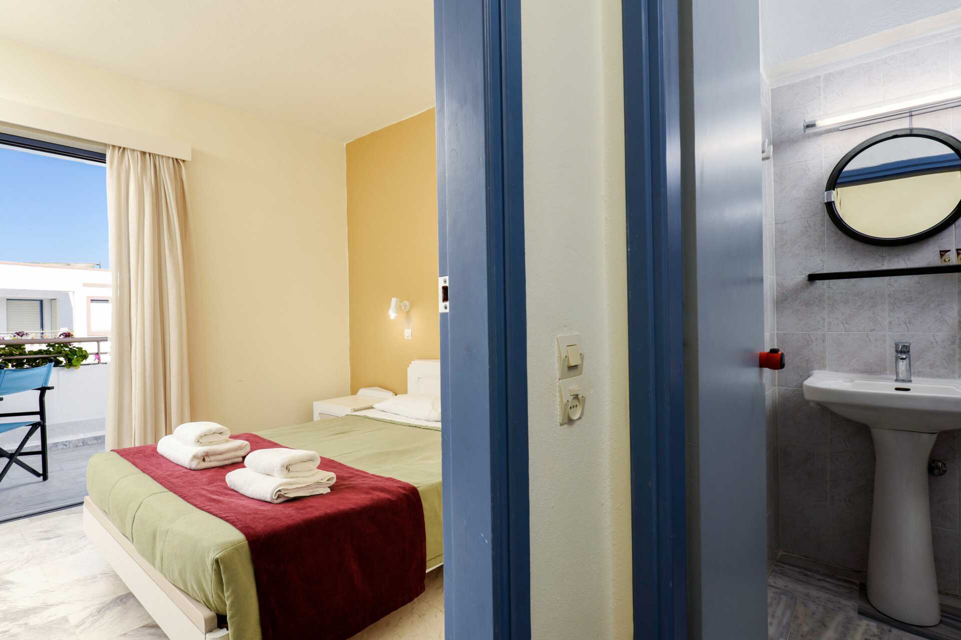 Tweekamerappartement met balkon of terras. Slaapkamer en gecombineerde woonkamer met kitchenette. Twee eenpersoonsbedden. Mogelijkheid voor extra bedden in slaapbank. Minikeuken met kookplaten, koelkast, waterkoker en eenvoudige keukenapparatuur. Wifi en airconditioning inbegrepen. Kluis tegen betaling. TV met internationale zenders. Föhn. Badkamer met douche en wc. Schoonmaak 6 keer/week.