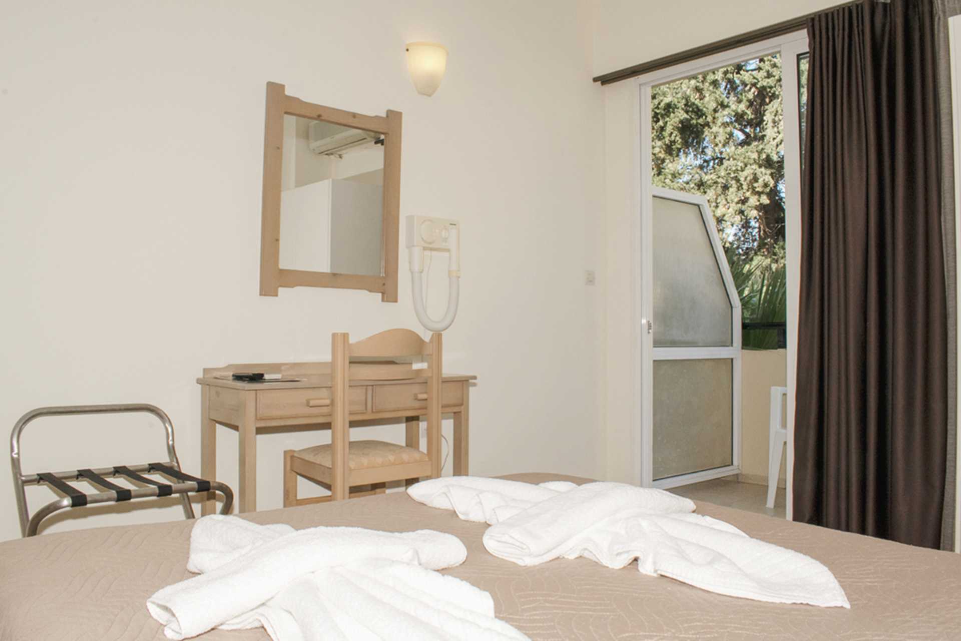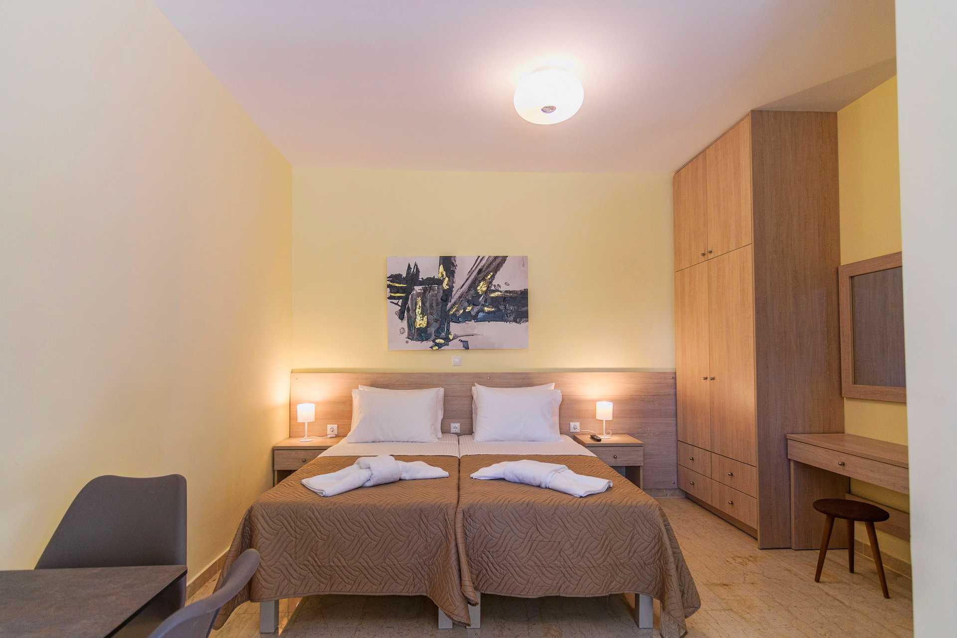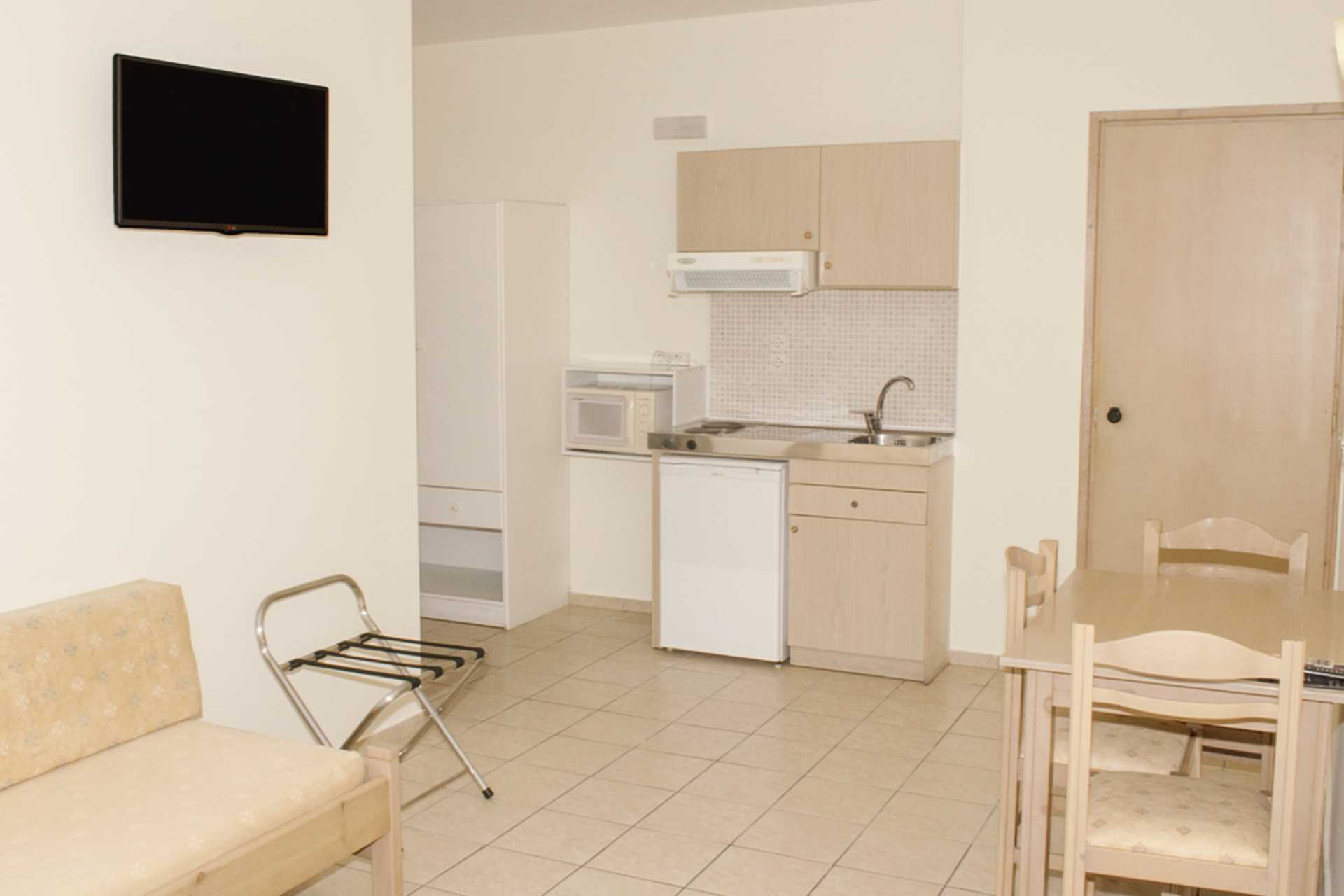 Studio met balkon. Gecombineerde slaapkamer en minikeuken. Twee éénpersoonsbedden. In sommige kamers is er de mogelijkheid van een extra bed voor een derde persoon. Minikeuken met koelkast, kookplaten, oven en basis keukengerei. Wifi (verbindingskwaliteit kan variëren) en airconditioning inbegrepen. Tv met lokale zenders. Badkamer met bad of douche en toilet. Schoonmaak 7 keer/week. Kinderen tot 2 jaar zijn inbegrepen in het maximum aantal personen op de kamer. Gecombineerde slaapkamer met kitchenette. Een tweepersoonsbed. Mogelijkheid voor extra bedden in slaapbank. Minikeuken met koelkast, kookplaten, magnetron, waterkoker en basis keukenapparatuur. Wifi, airconditioning en kluis inbegrepen. TV met internationale zenders. Föhn. Badkamer met douche en toilet. Schoonmaak 7 keer/week.