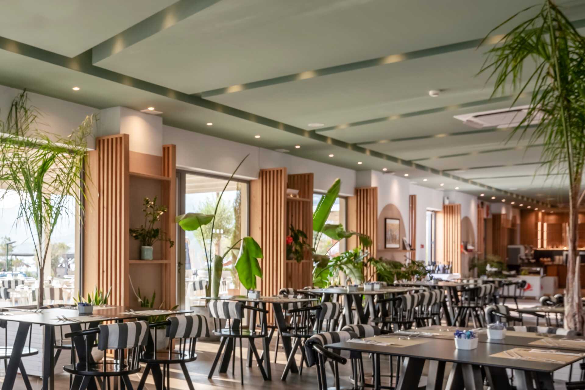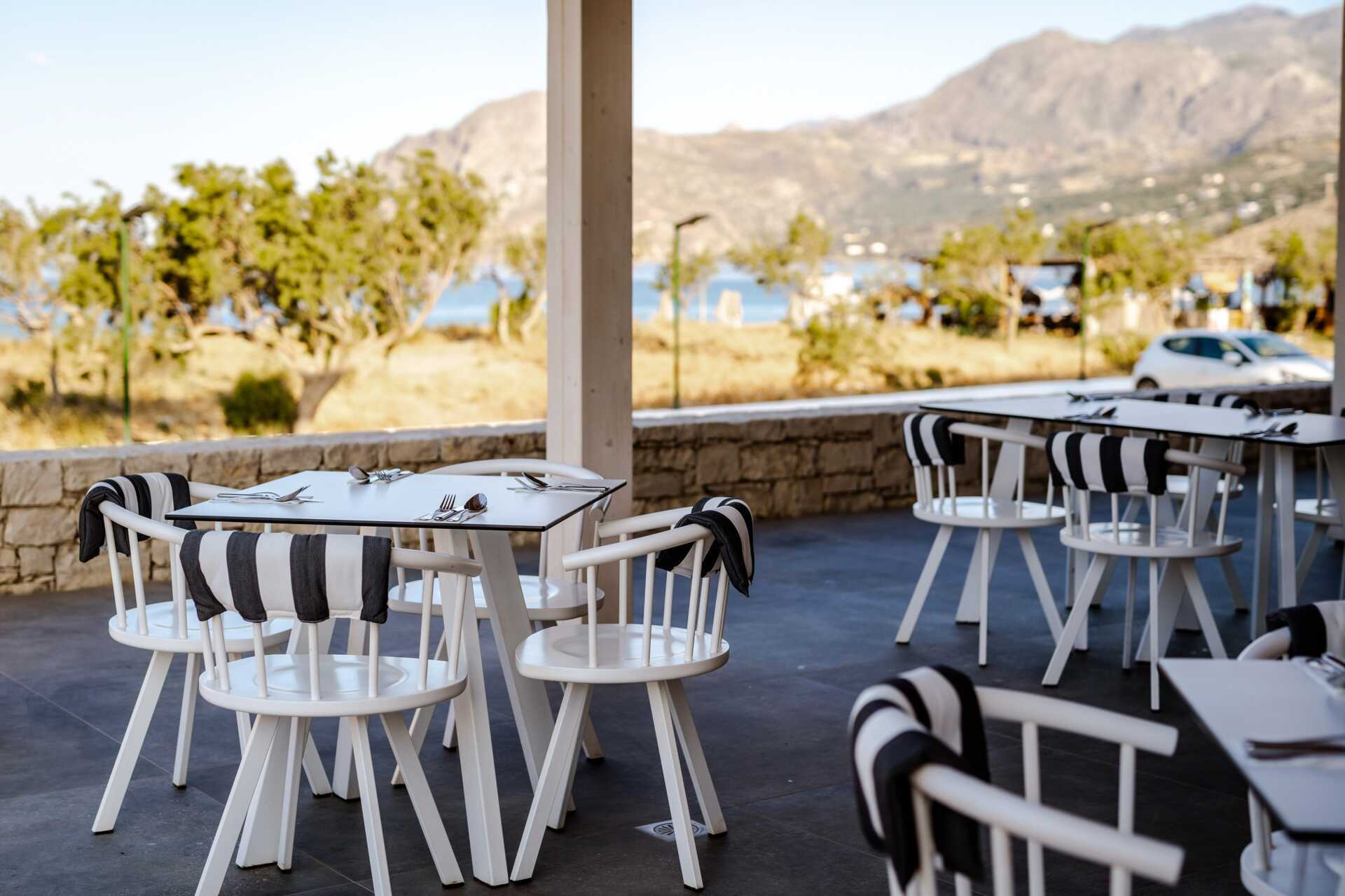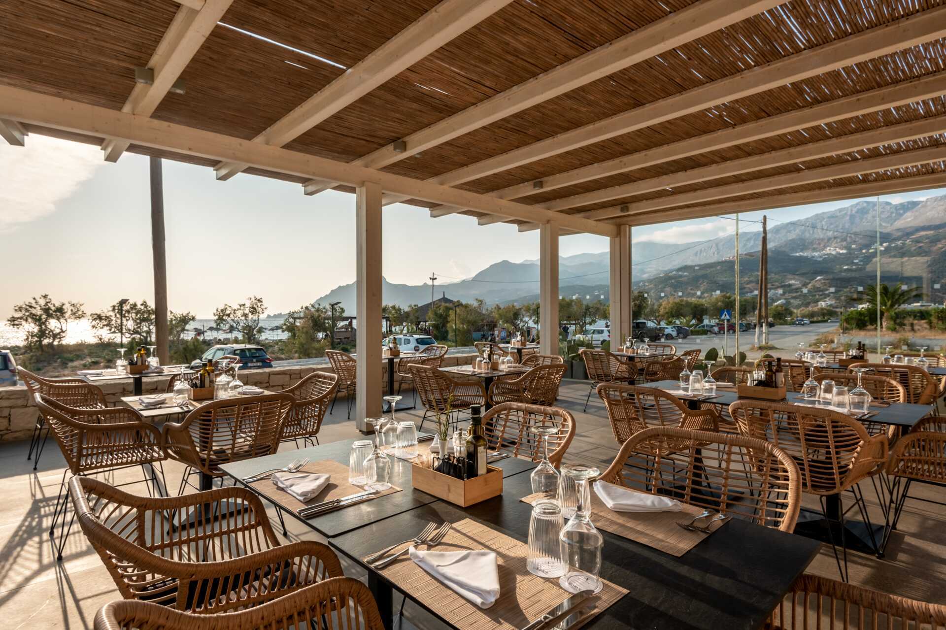 Restaurant met prachtig uitzicht op de zee, waar ontbijt, lunch en diner worden geserveerd. Het authentieke Crétoise restaurant van het Marconi serveert het diner en reserveren is verplicht tot 15:00 op de dag zelf. Er is ook een zwembadbar en een snackbar op het strand waar je een lichte maaltijd kunt bestellen. Nette kleding – lange broek voor mannen ’s avonds in het restaurant.
