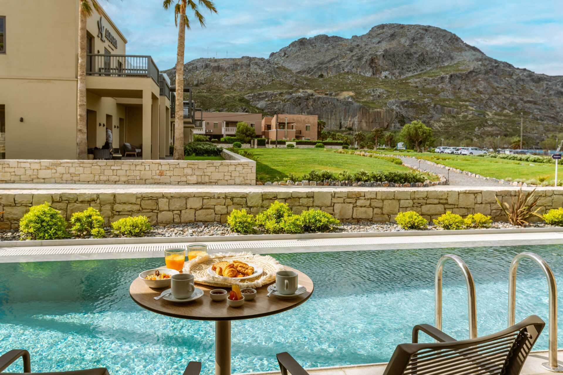 Wil je een gouden randje toevoegen aan jouw vakantie? Boek dan zeker één van onze premium appartementen met exclusieve voordelen zoals twee hoogwaardige gereserveerde ligbedden (incl. parasol) op het strand, prioritaire check-in en vers fruit en Griekse zoetigheden in het appartement bij aankomst. Als je in een premium appartement verblijft, heb je ook de mogelijkheid om ontbijtbroodjes en etenswaren rechtstreeks bij je appartement te laten bezorgen, evenals zwembadservice via een app om eten en drinken te bestellen. De premium appartementen hebben ook twee zwembadgedeeltes, exclusief voor degenen die in het premium gedeelte wonen.