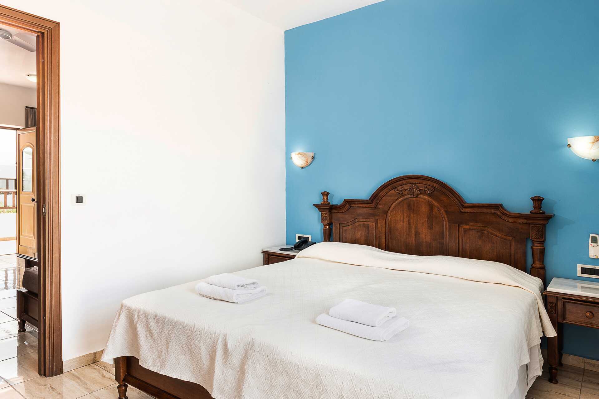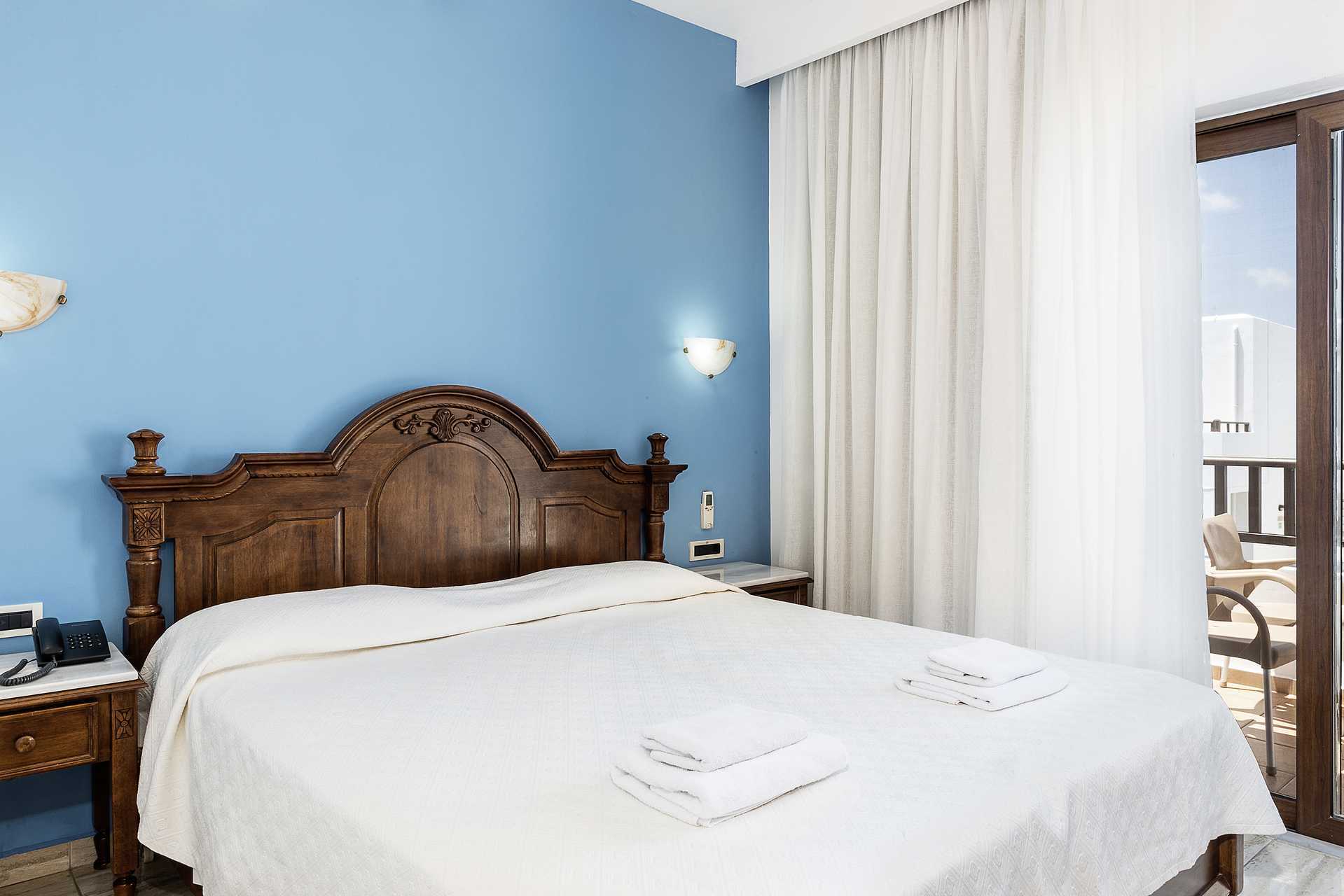 Tweepersoonskamers met balkon of terras, sommige met zeezicht of beperkt zeezicht. Een tweepersoonsbed of twee eenpersoonsbedden. Mogelijkheid voor een extra bed in een eenpersoonsbed. Wifi, kluisje en airconditioning inbegrepen. Koelkast. Waterkoker. Espressomachine tegen betaling. Tv met internationale zenders. Hotelslippers. Föhn. Badkamer met douche en toilet. Schoonmaak 6 keer/week.