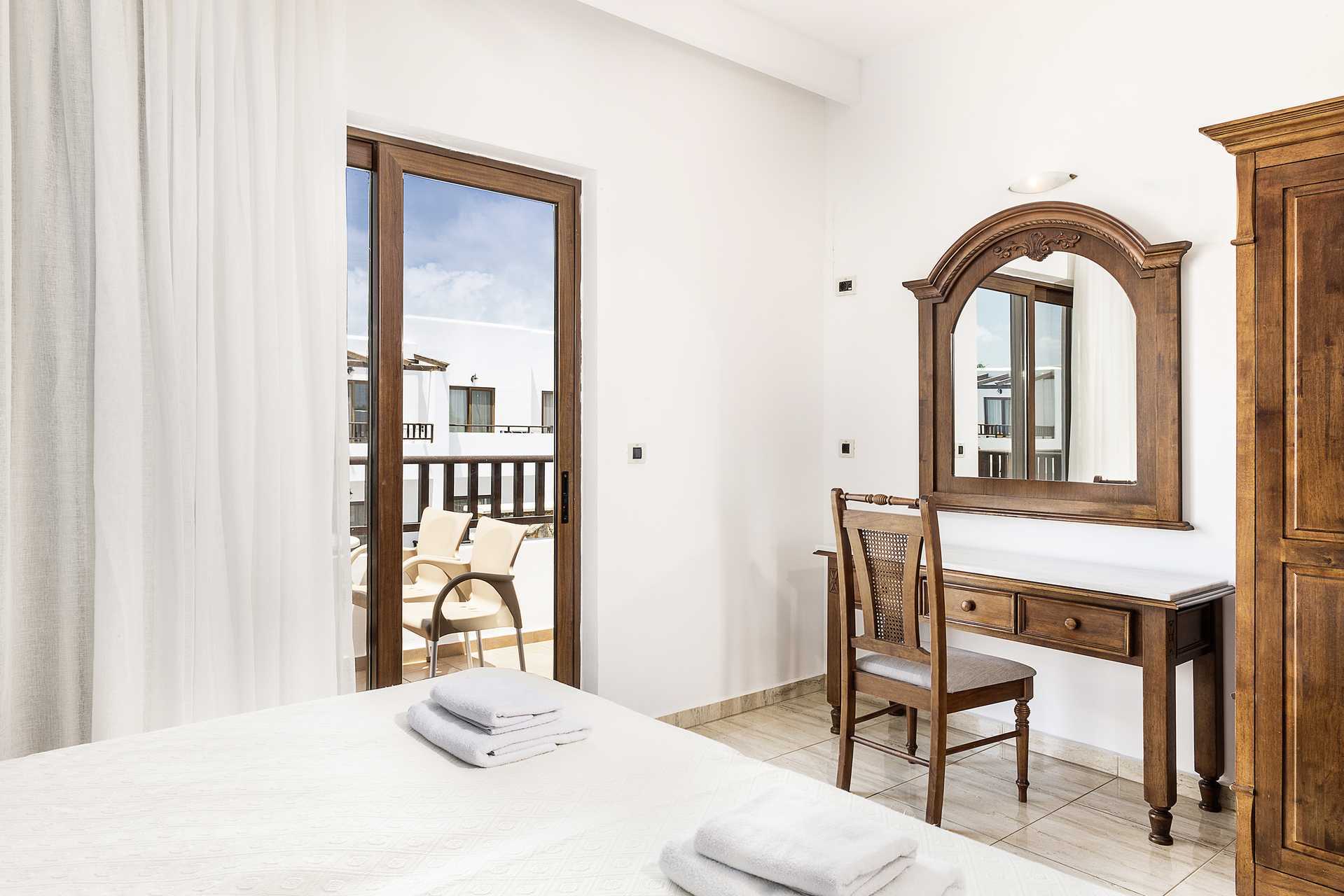 Appartement met twee slaapkamers en balkon of terras, sommige met zeezicht of beperkt zeezicht. Slaapkamer en gecombineerde woonkamer met kitchenette. Een tweepersoonsbed of twee eenpersoonsbedden. Mogelijkheid voor extra bedden in slaapbank. Minikeuken met koelkast, magnetron, kookplaten, tosti-ijzer, koffiezetapparaat en goede keukenapparatuur. Wifi, airconditioning en kluis inbegrepen. Plafondventilator. Tv met internationale zenders. Hotelslippers. Föhn. Badkamer met bad of douche en toilet. Klamboe in de balkon-/terrasdeur. Schoonmaak 6 keer/week.
