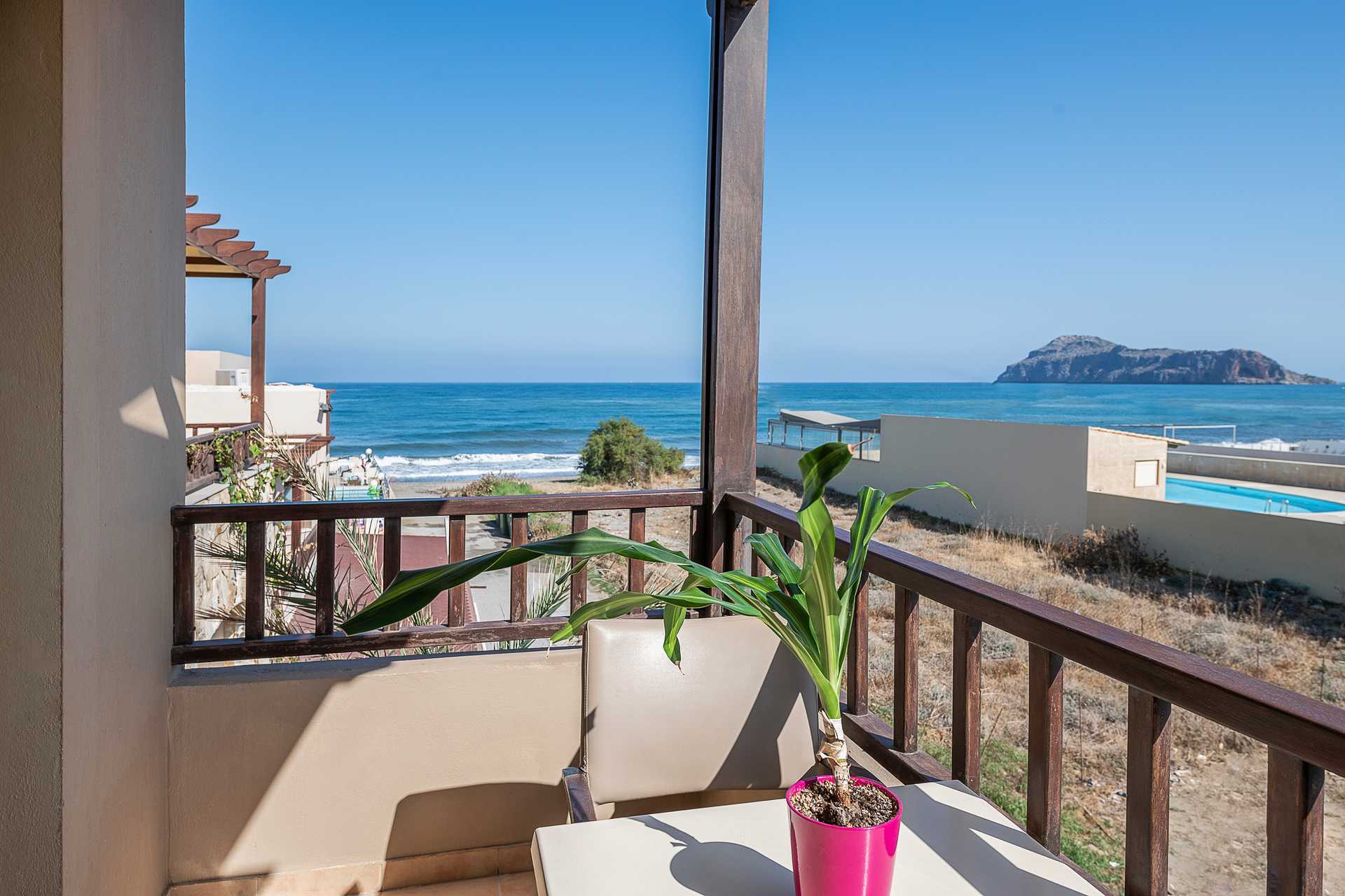 Het appartementenhotel Indigo Mare heeft veel terugkerende gasten en wat hen het meest bevalt is de ideale ligging aan het strand en op loopafstand van het centrum van Platanias.