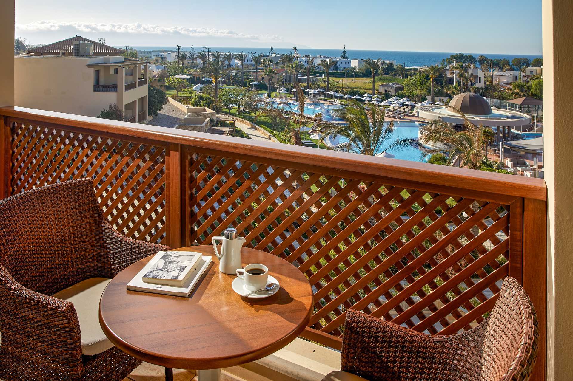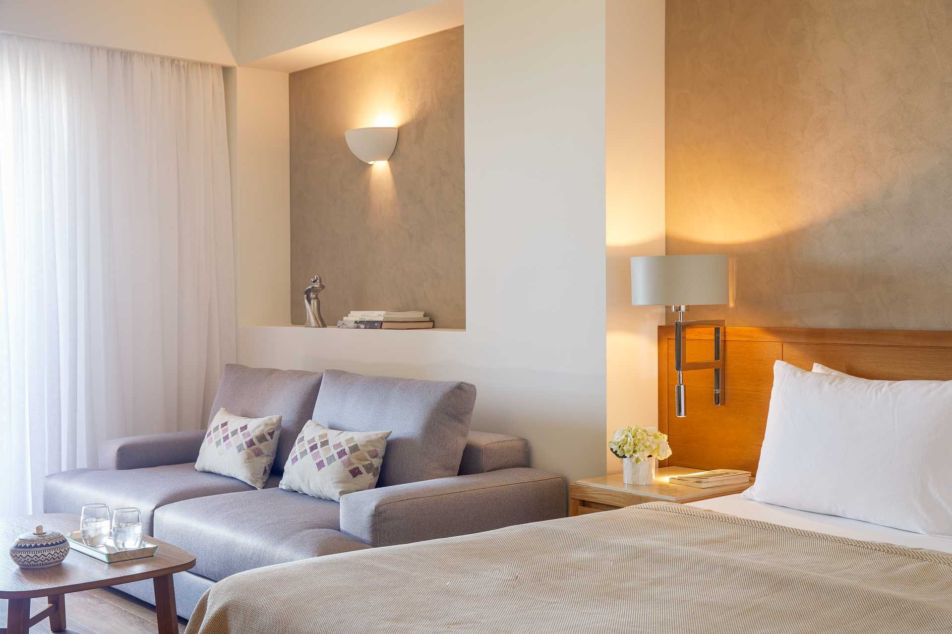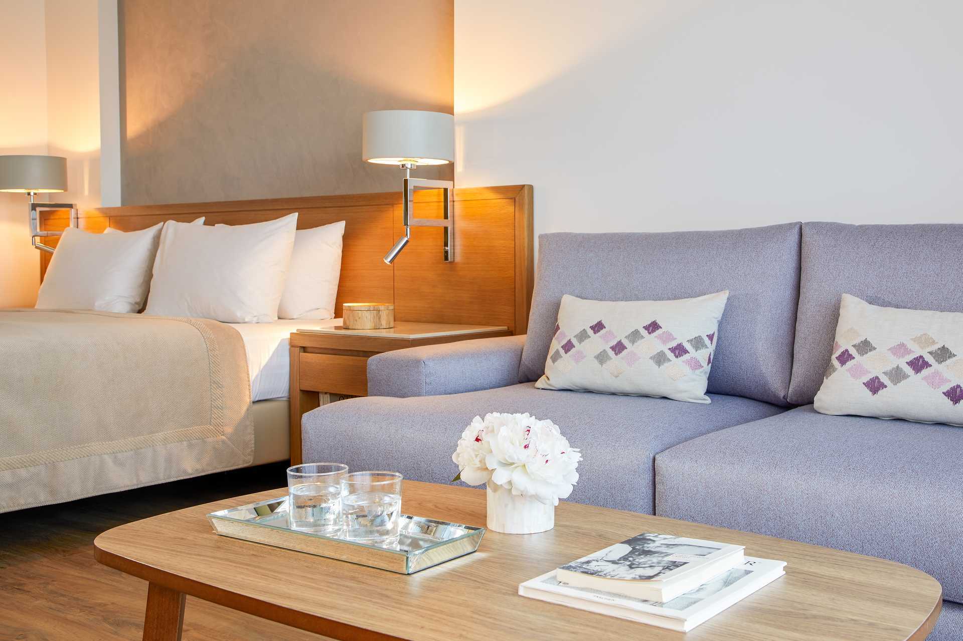 Tweepersoonskamer met balkon, sommige met uitzicht op het zwembad. De kamers bevinden zich in het hoofdgebouw. Een tweepersoonsbed. Mogelijkheid voor een extra bed op de slaapbank. Wifi, airconditioning en kluisje inbegrepen. Minibar. Welkomstpakket met wijn en water. Waterkoker en koffie en thee. Espressomachine, capsules tegen betaling. Tv met internationale zenders. Badjassen en hotelslippers. Föhn. Badkamer met douche en toilet. Schoonmaak 7 keer/week.
