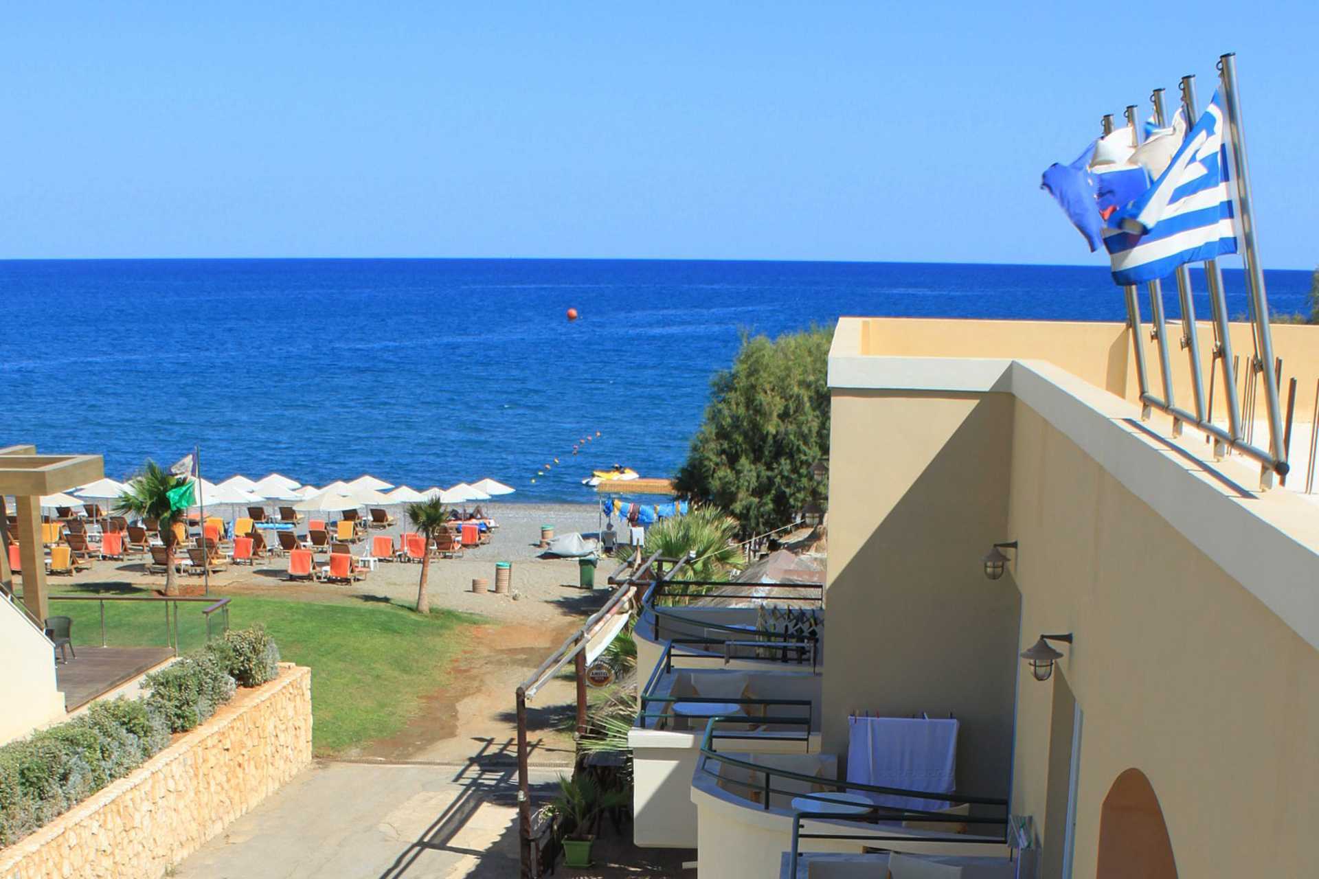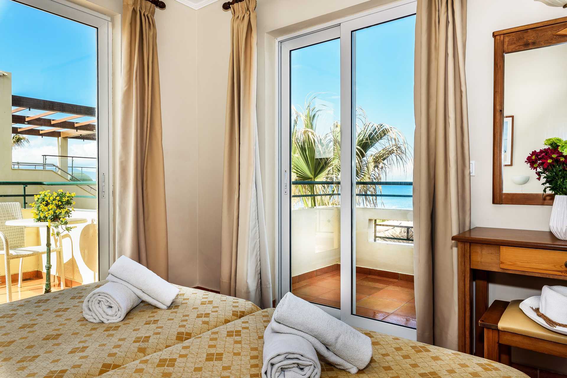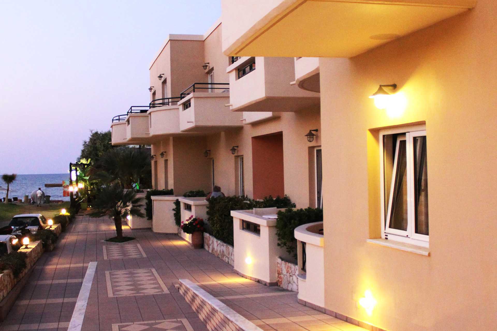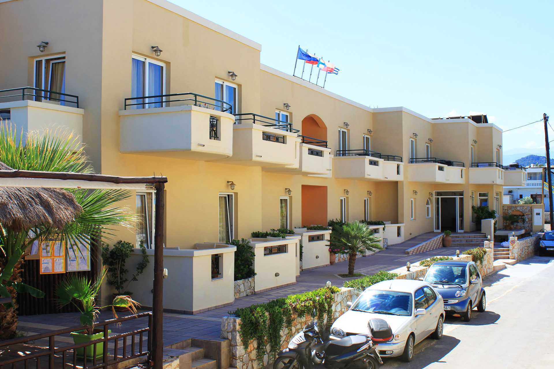 Eenkamerappartement met balkon of verhoogd terras op de begane grond, sommige balkons hebben beperkt zeezicht. Gecombineerde slaapkamer met woonkamer en kitchenette. Twee eenpersoonsbedden. Mogelijkheid tot een extra bed in een eenpersoonsbed. Kitchenette met koelkast, kookplaat, waterkoker en basiskeukengerei. Wifi en airconditioning inbegrepen. Kluisje tegen betaling. Badkamer met douche en toilet. Schoonmaak 6 keer/week.