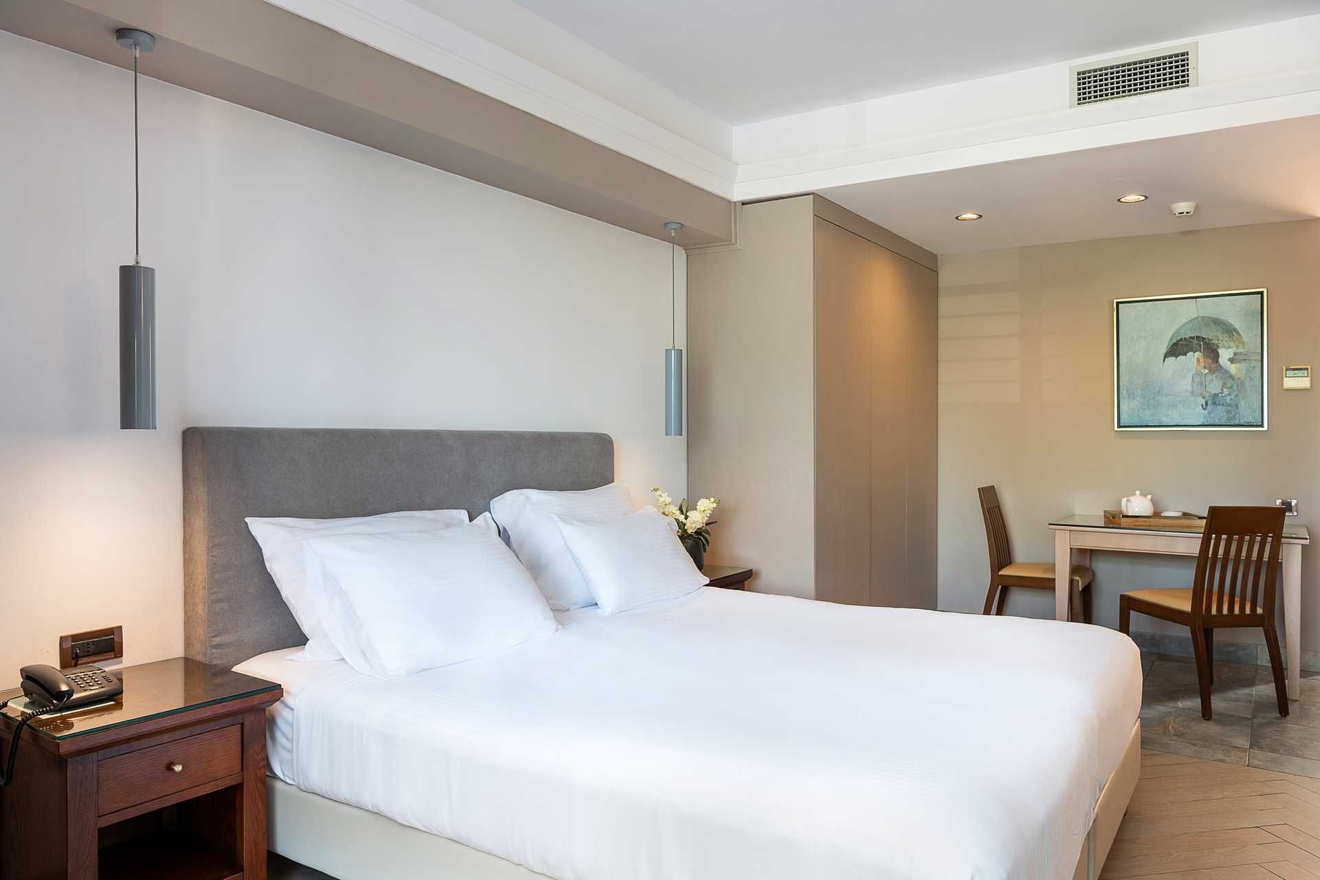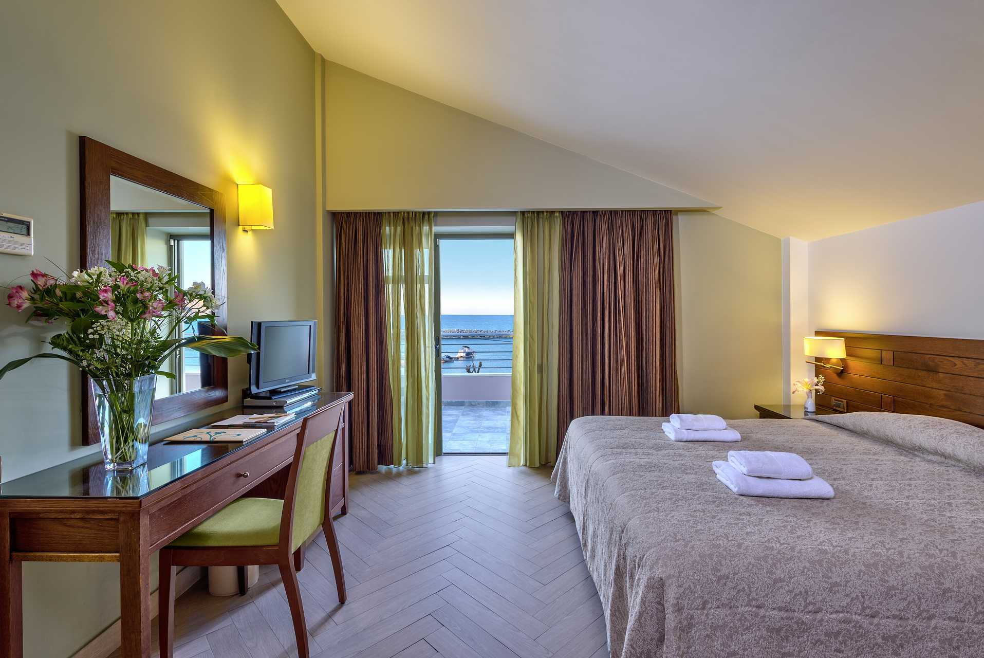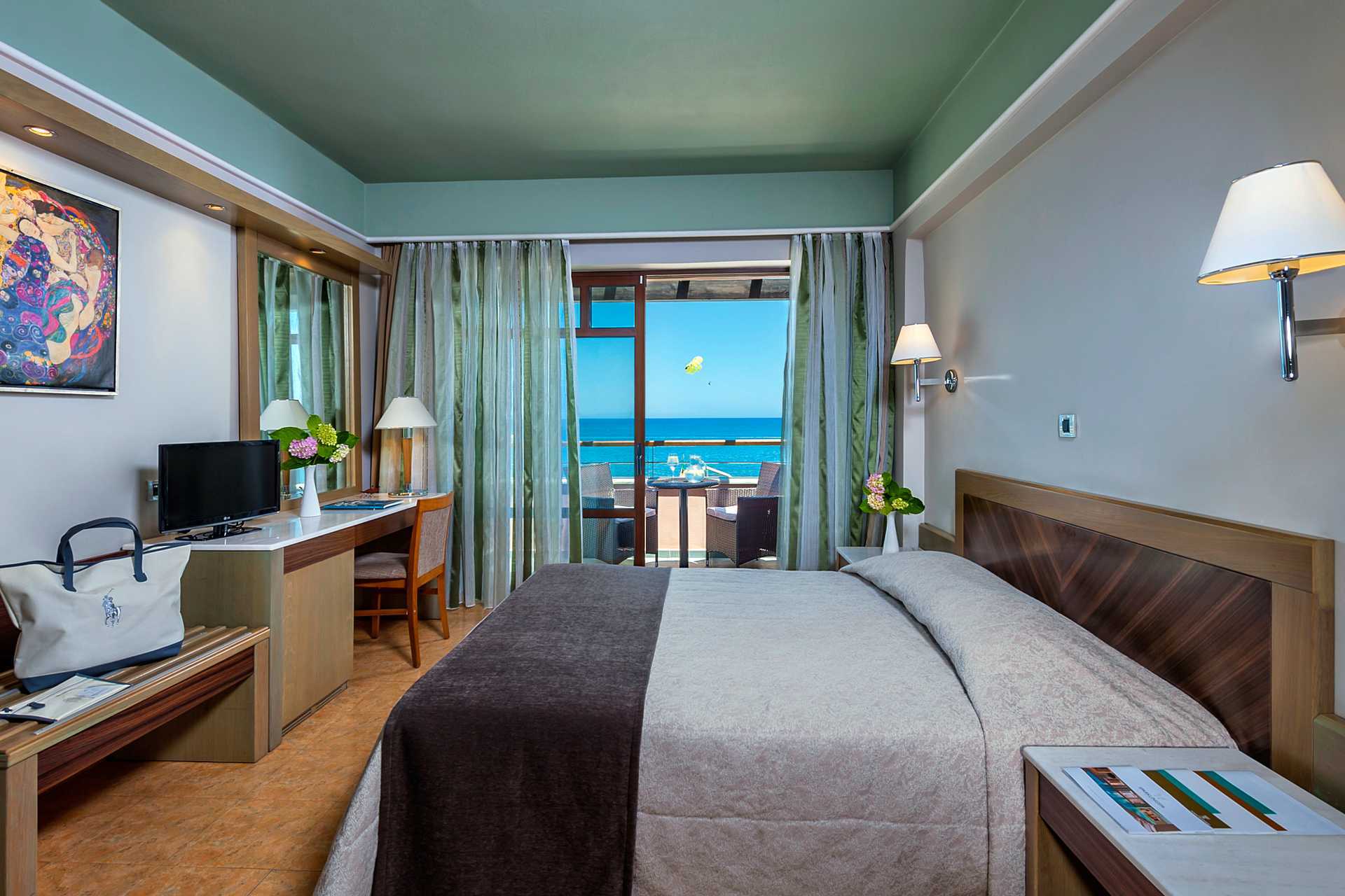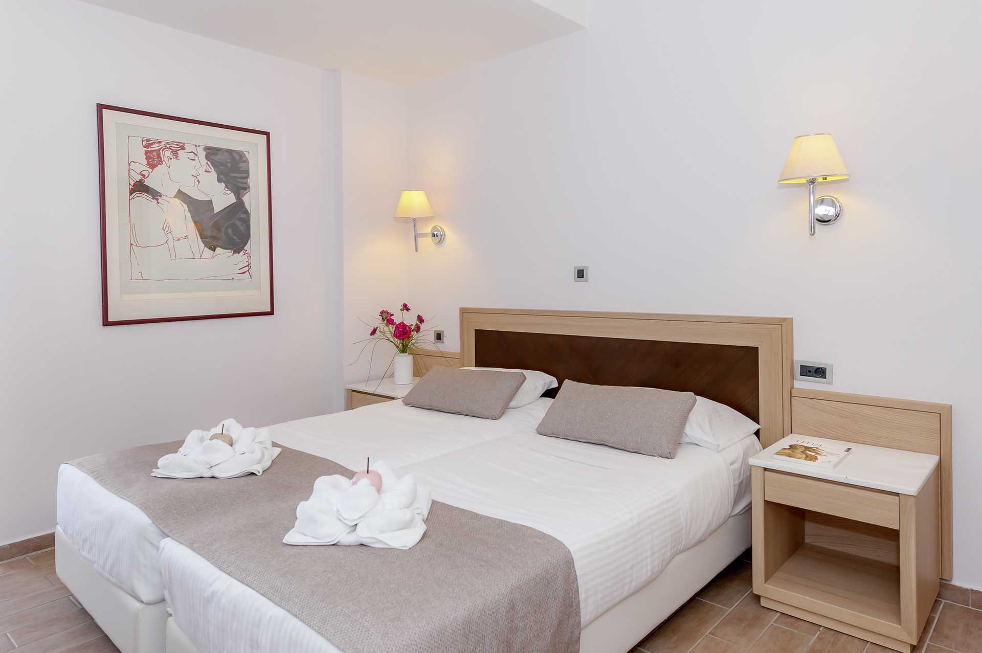 Tweepersoonskamers met balkon of terras, sommige met zeezicht of met beperkt zeezicht. Een tweepersoonsbed of twee eenpersoonsbedden. Mogelijkheid voor een extra bed in een eenpersoonsbed. Wifi en airconditioning inbegrepen. Kluisje tegen betaling. Koelkast. Tv met internationale zenders. Badkamer met bad of douche en toilet. Schoonmaak 7 keer/week. Kinderen jonger dan twee jaar zijn inbegrepen in het maximale aantal personen in de kamer.