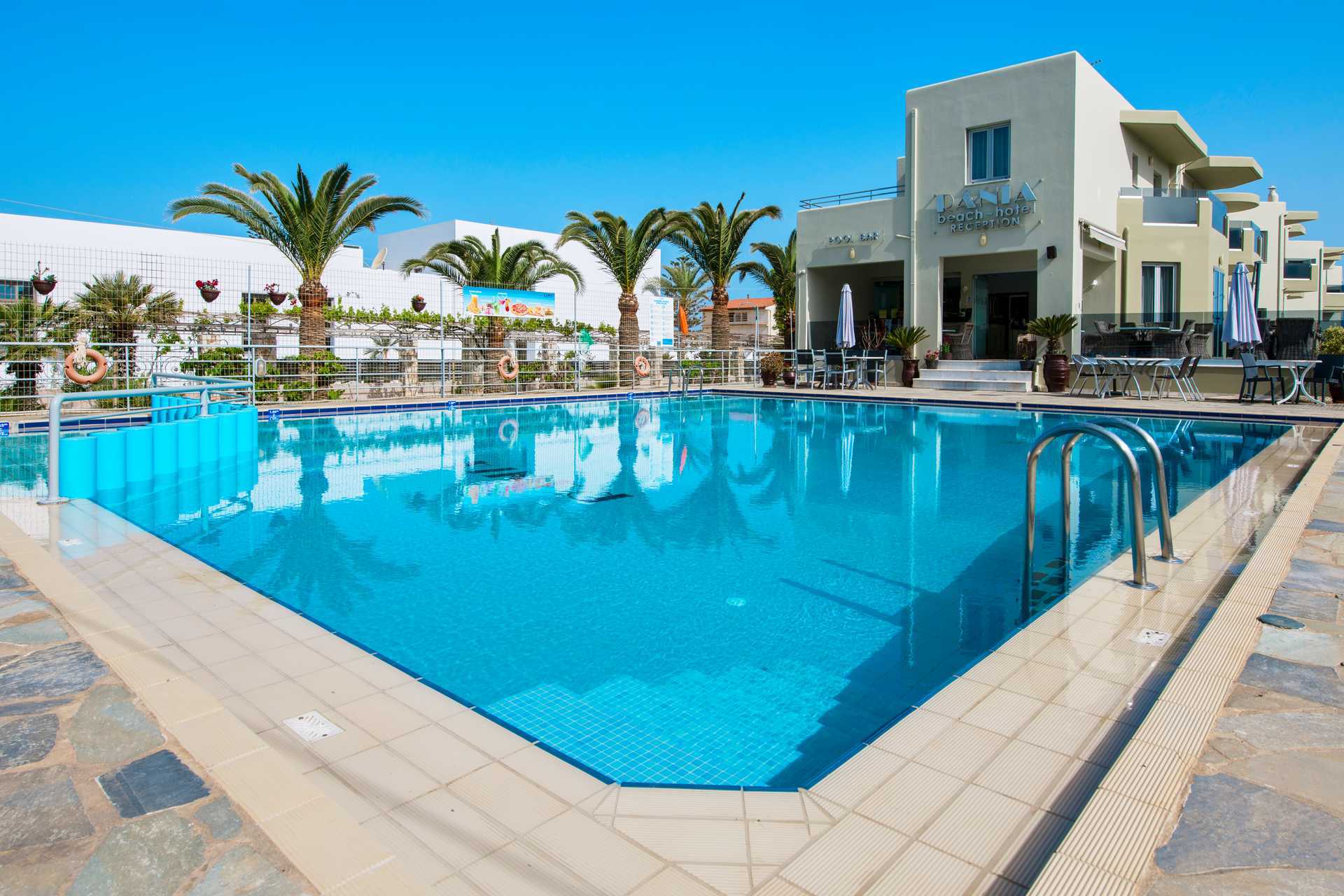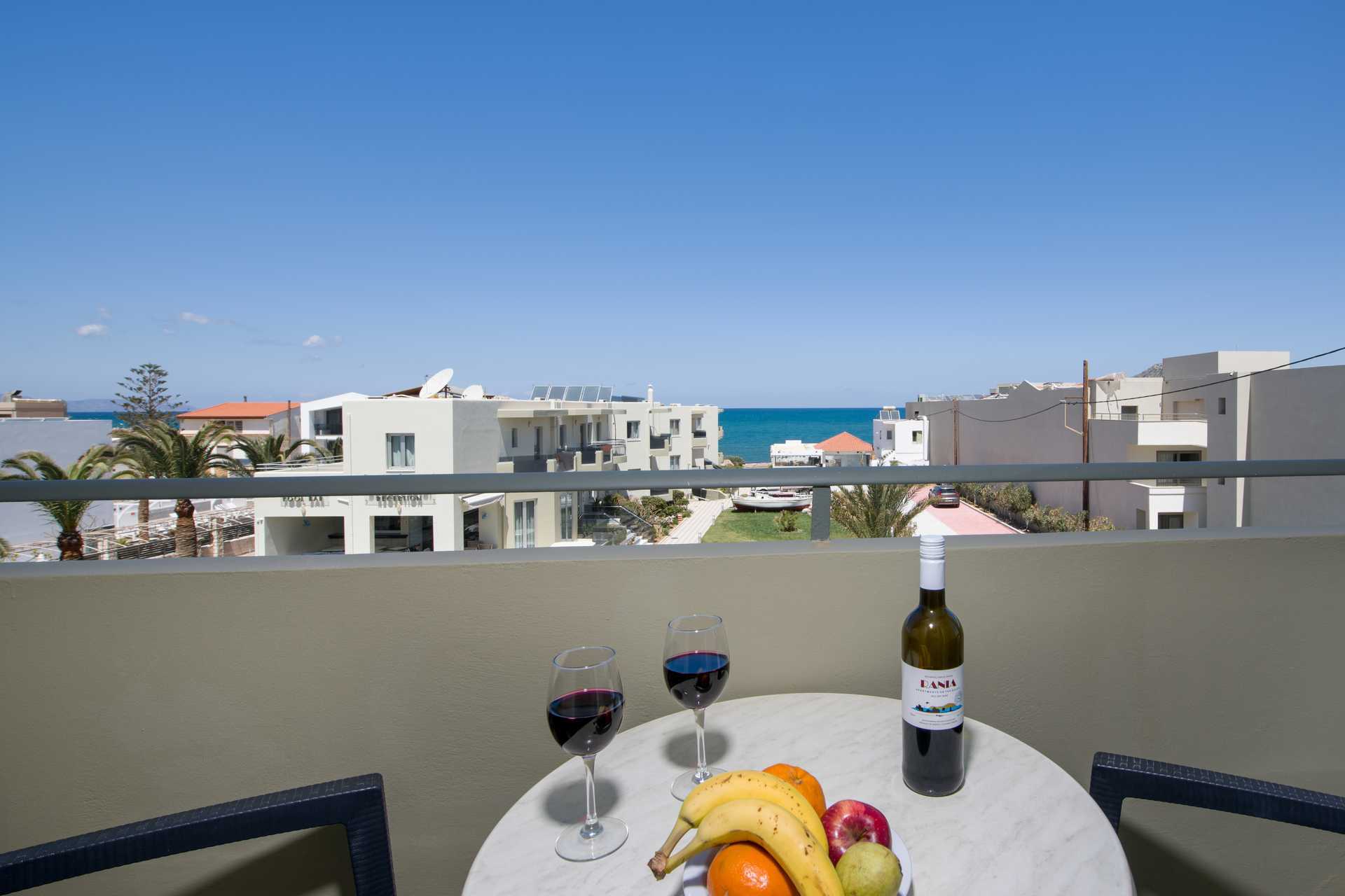 Studio-appartementen gelegen in het strand-/zwembadgebouw. Balkon, sommige met zeezicht of beperkt zeezicht. Gecombineerde slaapkamer met kitchenette. Twee eenpersoonsbedden. Mogelijkheid voor een extra bed op de slaapbank. In de appartementen staat bij aankomst een fles wijn en een fles water. Minikeuken met kookplaten, koelkast met vriesvak, magnetron, koffiezetapparaat, waterkoker, broodrooster en eenvoudige keukenapparatuur. Wifi, airconditioning en kluisje inbegrepen. Tv met internationale zenders. Strijkijzer en strijkplank. Badjassen en hotelslippers. Föhn. Badkamer met douche en toilet. Schoonmaak 7 keer/week.