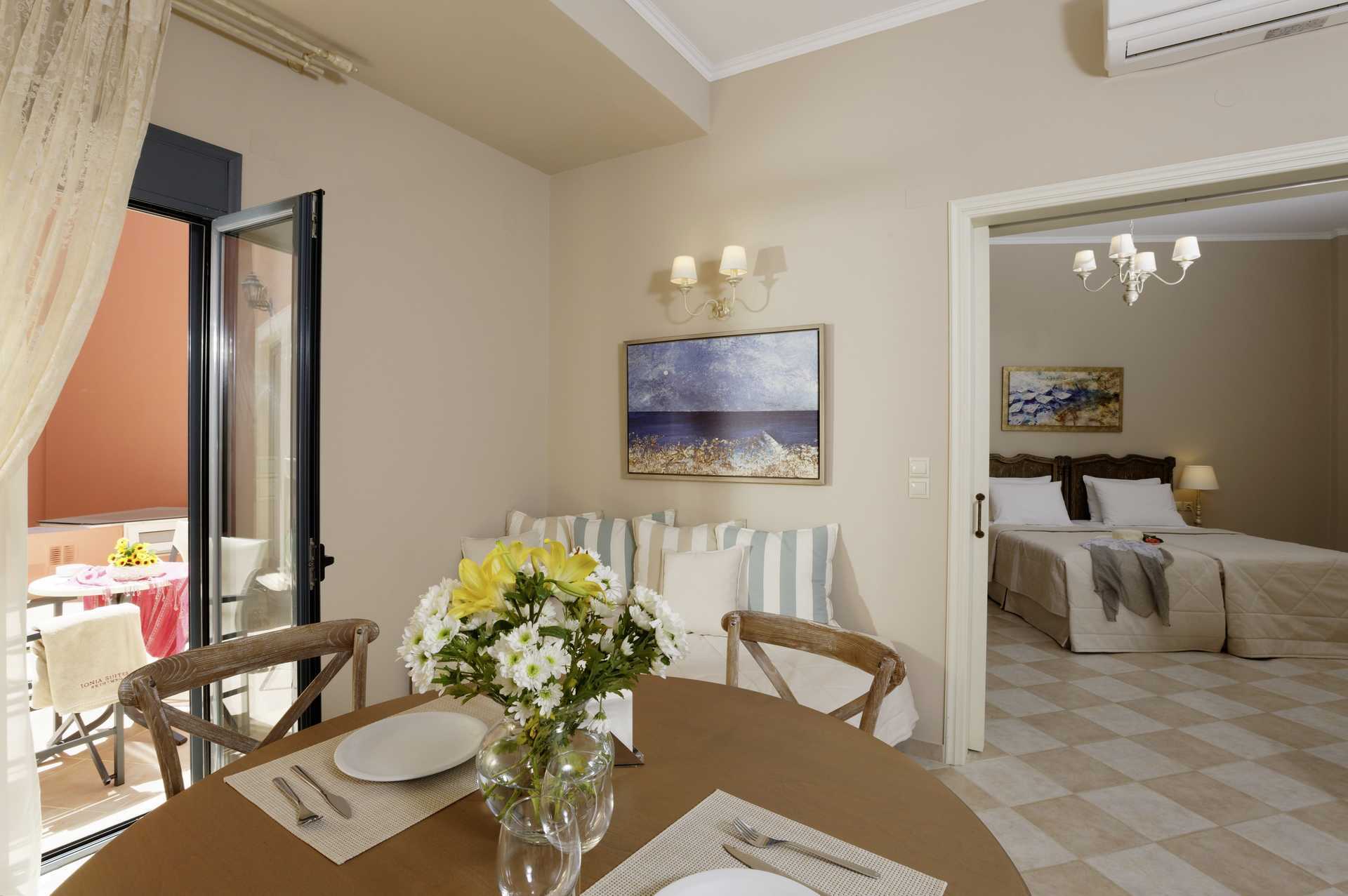 Superior tweekamerappartement met drie gewone bedden. Balkon of terras in verschillende maten. Slaapkamer en gecombineerde woonkamer met kitchenette. Een tweepersoonsbed of twee eenpersoonsbedden. Mogelijkheid voor extra bedden in slaapbank. Minikeuken met koelkast en vriezer, kookplaten, magnetron, koffiezetapparaat, broodrooster, waterkoker en eenvoudige keukenapparatuur. Wifi, airconditioning en kluisje inbegrepen. Tv met internationale zenders. Strijkijzer en strijkplank. Föhn. Badkamer met douche en toilet. Schoonmaak 6 keer/week.