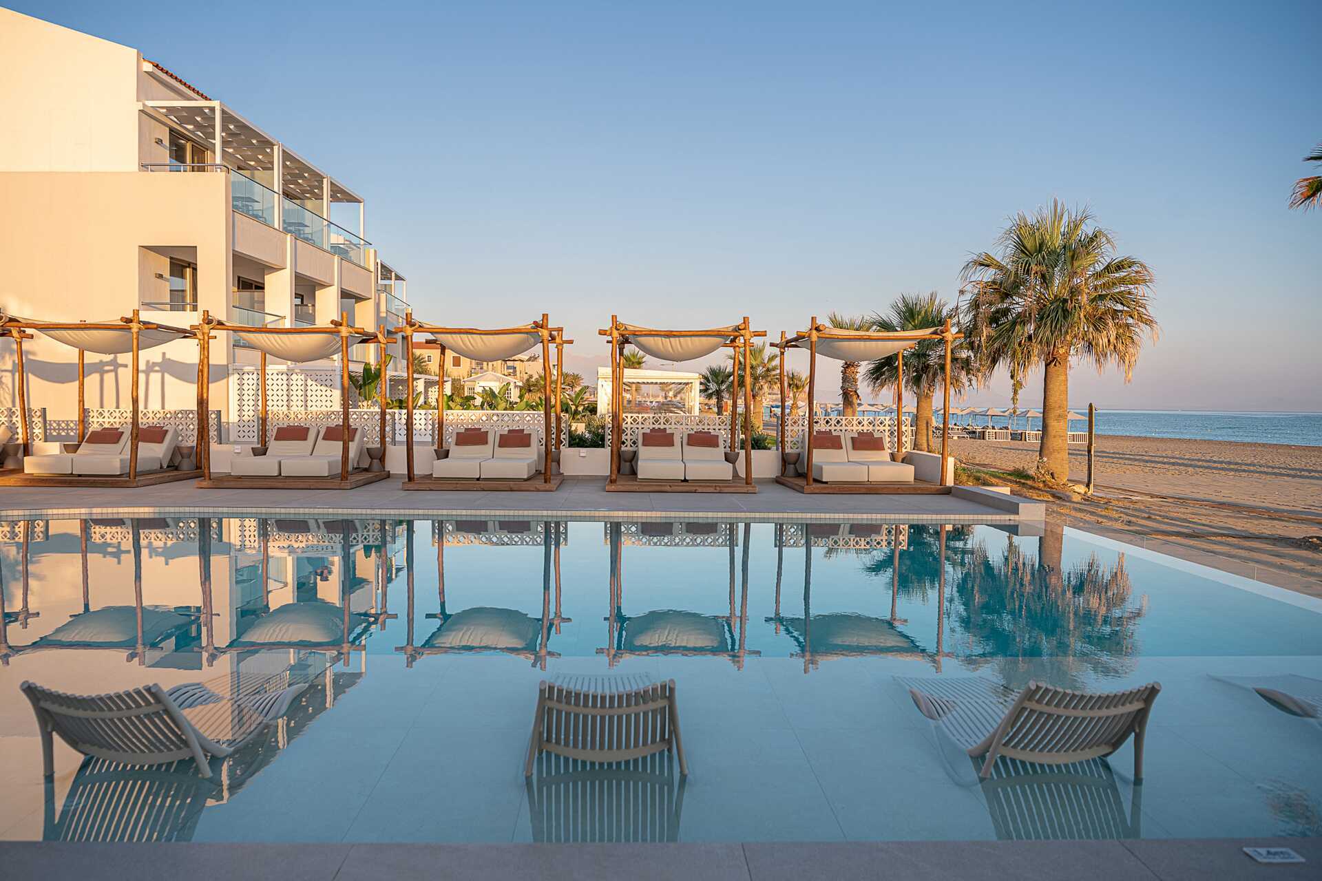 Iperion Beach met zijn leuke appartementen ligt precies zoals de naam doet vermoeden, direct aan het strand op korte afstand van het centrum van Rethymnon. Hier kun je het rustig aan doen en tussen een van de twee zwembaden van het hotel en het lange zandstrand wandelen. Een wandeling door de steegjes van de oude wijken van Rethymnon duurt iets minder dan een half uur.