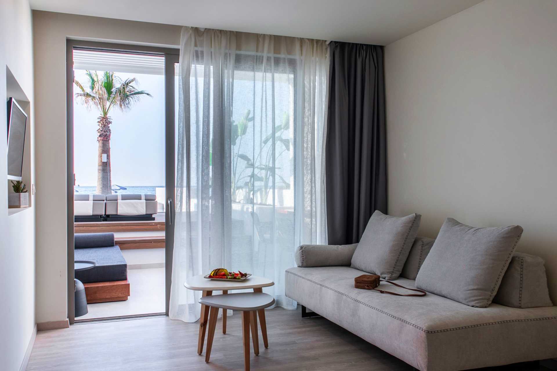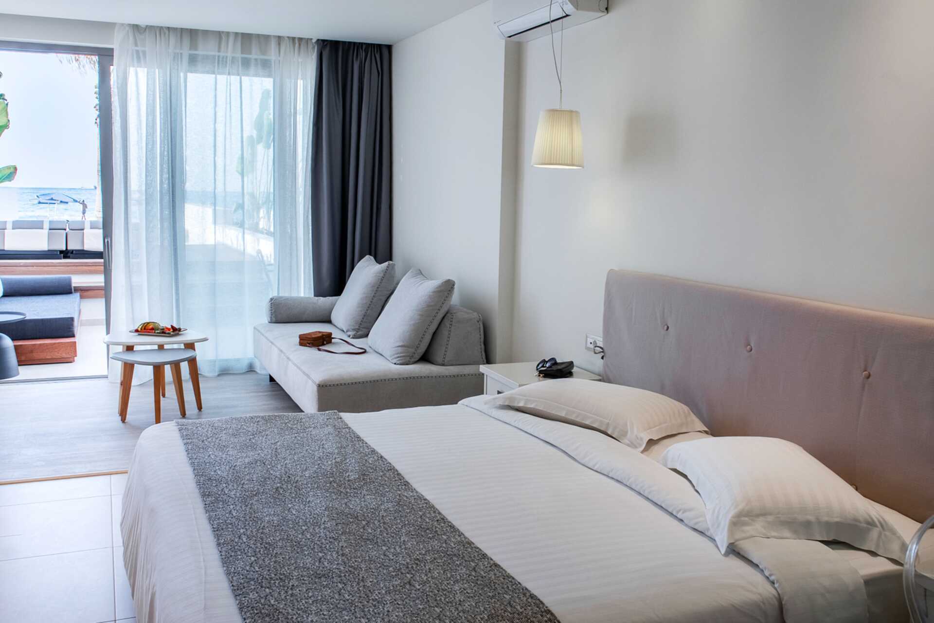 Tweekamerappartement met balkon of terras, deels met beperkt zeezicht. Klamboe in de balkon-/terrasdeur. Slaapkamer en gecombineerde woonkamer met kitchenette. Een tweepersoonsbed. Minikeuken met kookplaten, koelkast, waterkoker en eenvoudige keukenapparatuur. Wifi, airconditioning en kluisje inbegrepen. Tv met internationale zenders. Föhn. Badkamer met douche en toilet. Schoonmaak 6 keer/week. Kinderen jonger dan twee jaar zijn inbegrepen in het maximale aantal personen in het appartement.