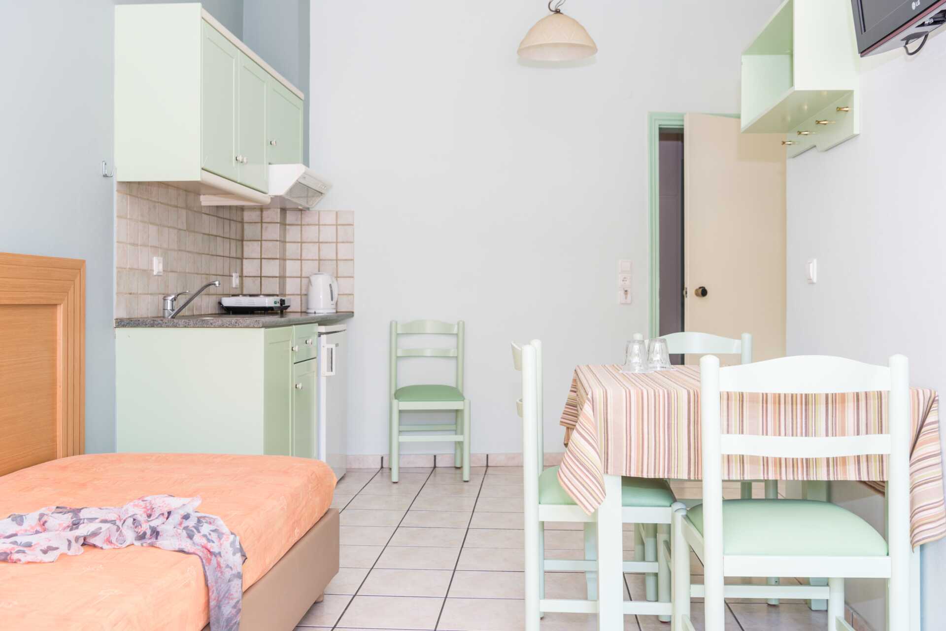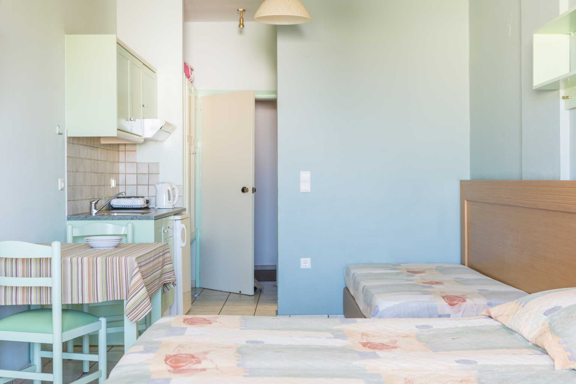 Studio Superior met 2 slaapkamers. Bedden en terras op de begane grond. Slaapkamer gecombineerd met kitchenette. Twee eenpersoonsbedden. Mogelijkheid tot een extra bed in een eenpersoonsbed. Kitchenette met kookplaat, koelkast, waterkoker en basiskeukengerei. Wifi inbegrepen. Airconditioning en kluisje tegen betaling. Tv met internationale zenders. Föhn. Badkamer met bad of douche en toilet. Schoonmaak 6 keer/week.