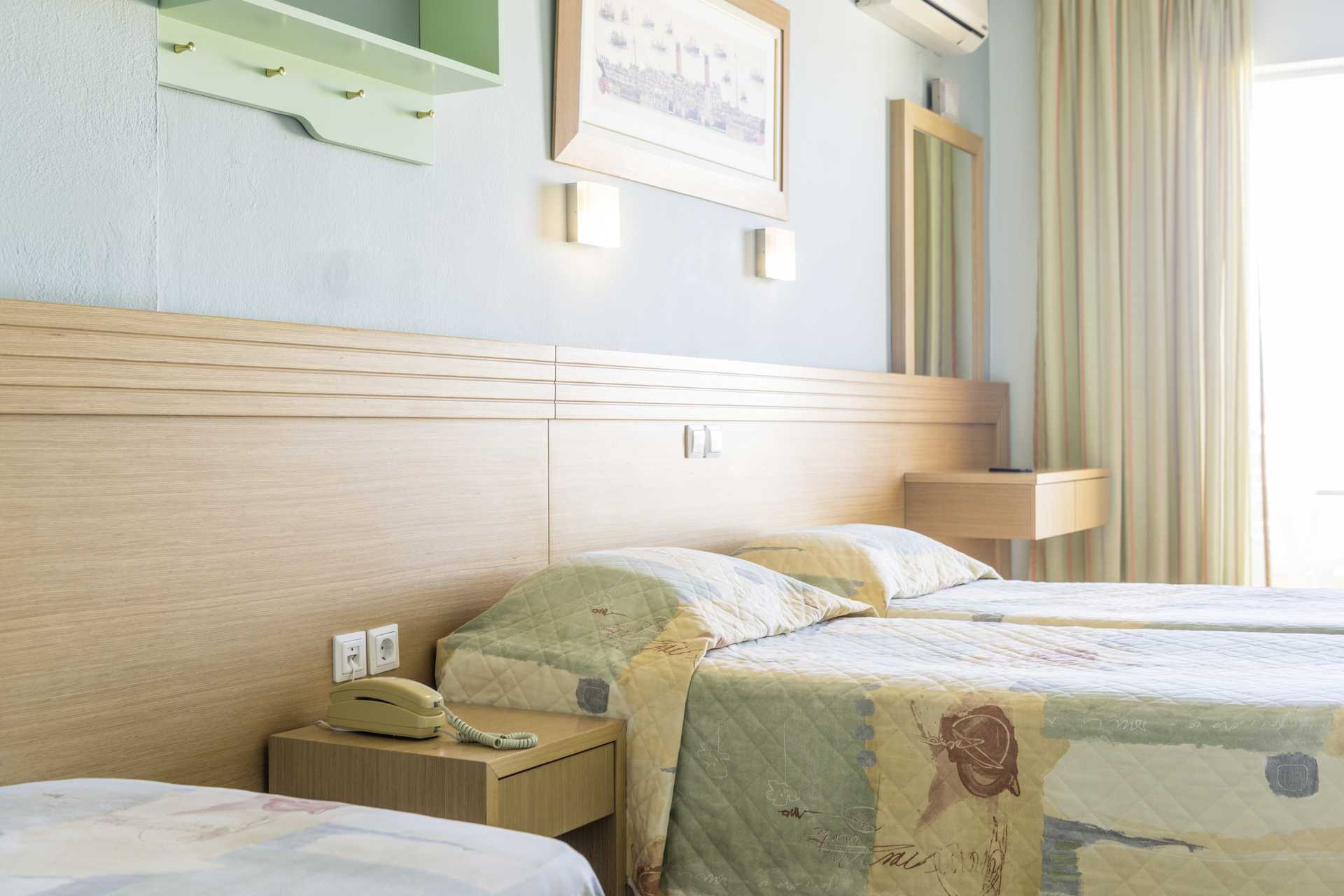 Tweekamerappartement met balkon. Slaapkamer en gecombineerde woonkamer met kitchenette. Twee eenpersoonsbedden. Mogelijkheid voor extra bedden in slaapbank. Minikeuken met kookplaten, koelkast, waterkoker en eenvoudige keukenapparatuur. Wifi inbegrepen. Airconditioning en kluisje tegen betaling. TV met internationale zenders. Föhn. Badkamer met douche en toilet. Schoonmaak 6 keer/week.