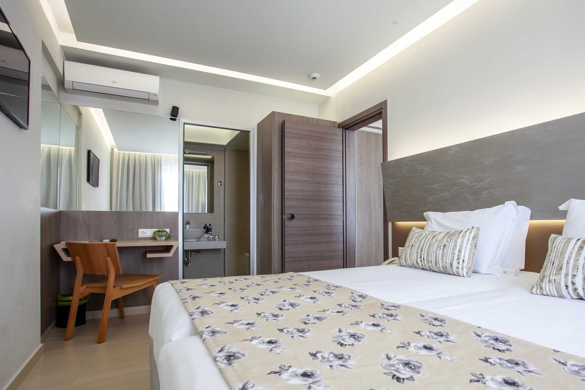 Tweepersoonskamer met balkon. Twee eenpersoonsbedden. Mogelijkheid voor extra bed. Wifi, airconditioning en kluis inbegrepen. Koelkast. Waterkoker en koffie en thee. TV met internationale zenders. Föhn. Slippers. Badkamer met douche en wc. Schoonmaak 7 keer/week. Kinderen jonger dan twee jaar zijn inbegrepen in het maximale aantal personen in de kamer.