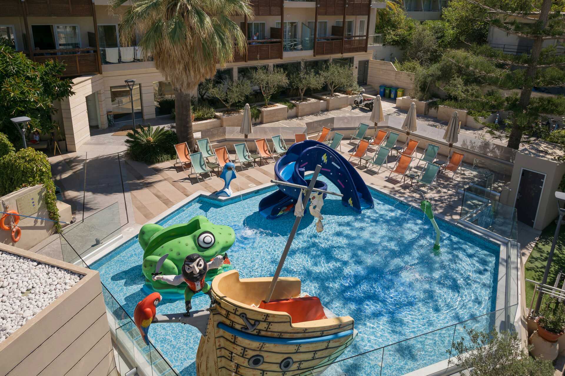 Bij Hotel Minos zijn er twee zwembadgedeeltes met in totaal drie zwembaden, waarvan één groot zwembad, een kinderbad met glijbanen en een zwembad alleen voor volwassenen. Ligstoelen en parasols. Badhanddoeken tegen betaling en borg - inbegrepen in junior suites en superior junior suites. Poolbar.