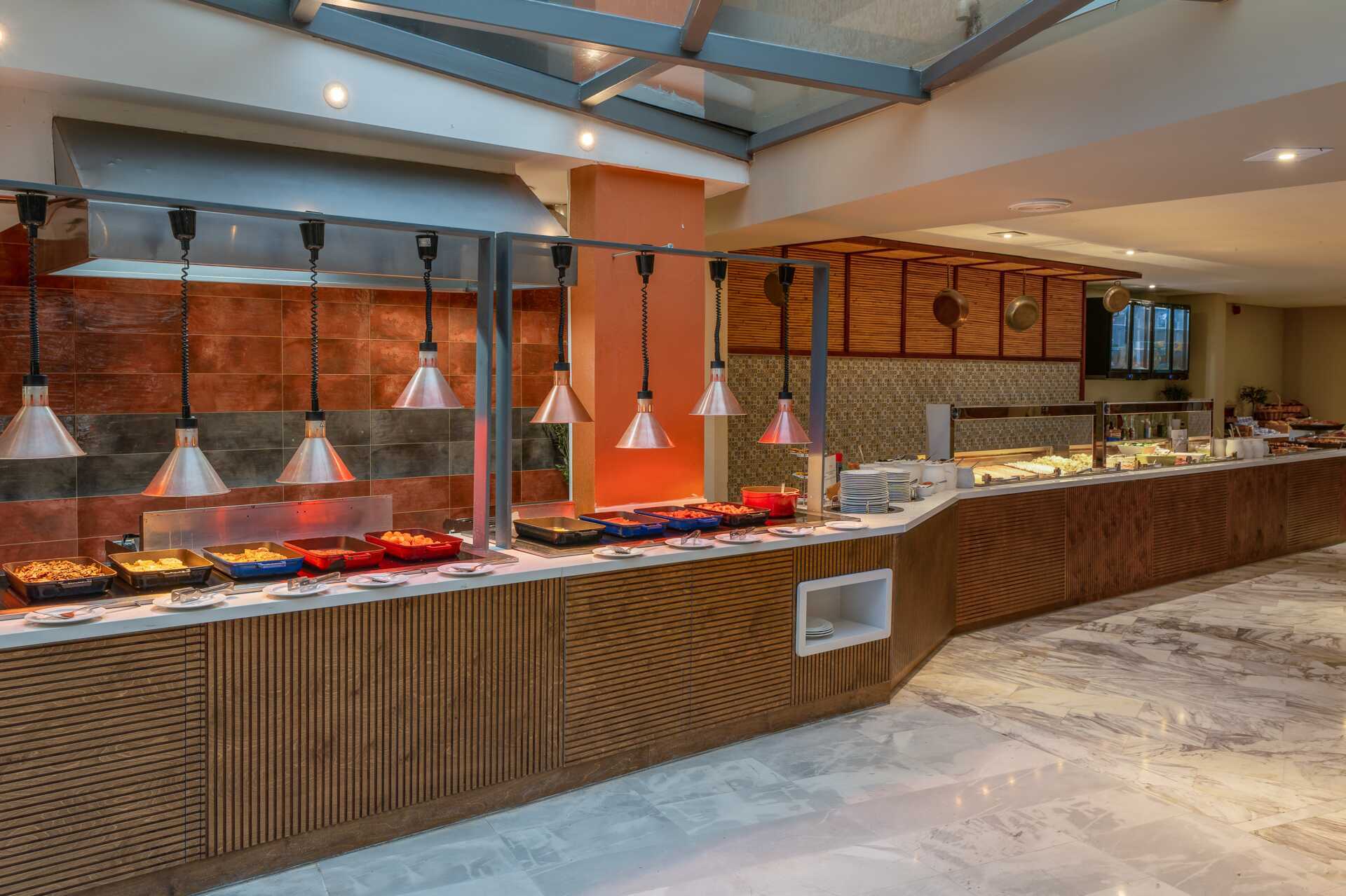 Het buffetrestaurant Ambrosia serveert een buffet voor ontbijt en diner, de gerechten zijn zowel lokaal als internationaal. In een deel van het restaurant worden Italiaanse specialiteiten zoals pizza en pasta geserveerd. Dresscode: in de meeste restaurants dragen mannen tijdens het diner een lange broek. Je kunt lunchen in het zwembadrestaurant van Dionyso, waar lichte maaltijden zoals salades en sandwiches worden aangeboden. Op bepaalde avonden wordt het zwembadgedeelte omgetoverd tot een openluchtrestaurant waar tegen betaling thema-avonden worden aangeboden. Speciale maaltijden voor mensen met een allergie zijn beschikbaar op aanvraag, bij voorkeur op het moment van reserveren.