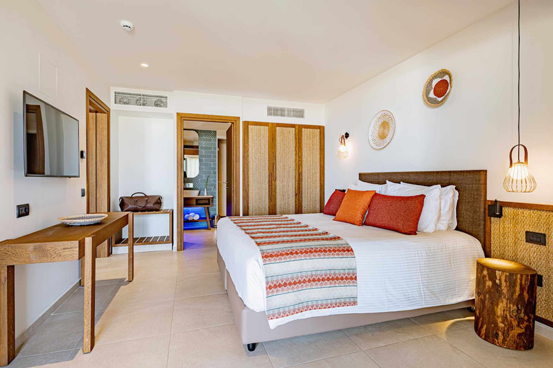 Junior suite met balkon. Een tweepersoonsbed. Kussenmenu. Wifi, airconditioning en kluis inbegrepen. Koelkast. Nespresso-apparaat - capsules inbegrepen. Waterkoker en koffie en thee. Mousserende wijn, een fles water en fruit bij aankomst. TV met internationale zenders. Badjassen en slippers Strijkijzer en strijkplank. Zwembad- en strandhanddoeken. Föhn. Badkamer met douche en wc. Schoonmaak 7 keer/week.