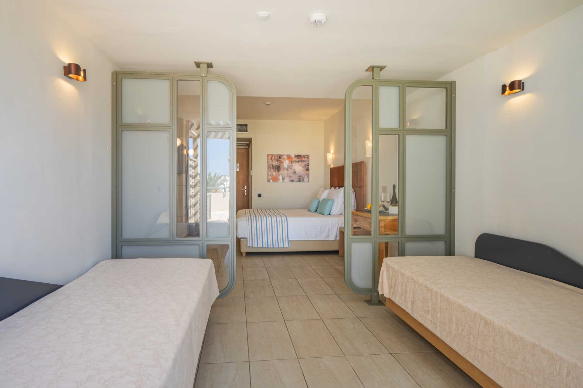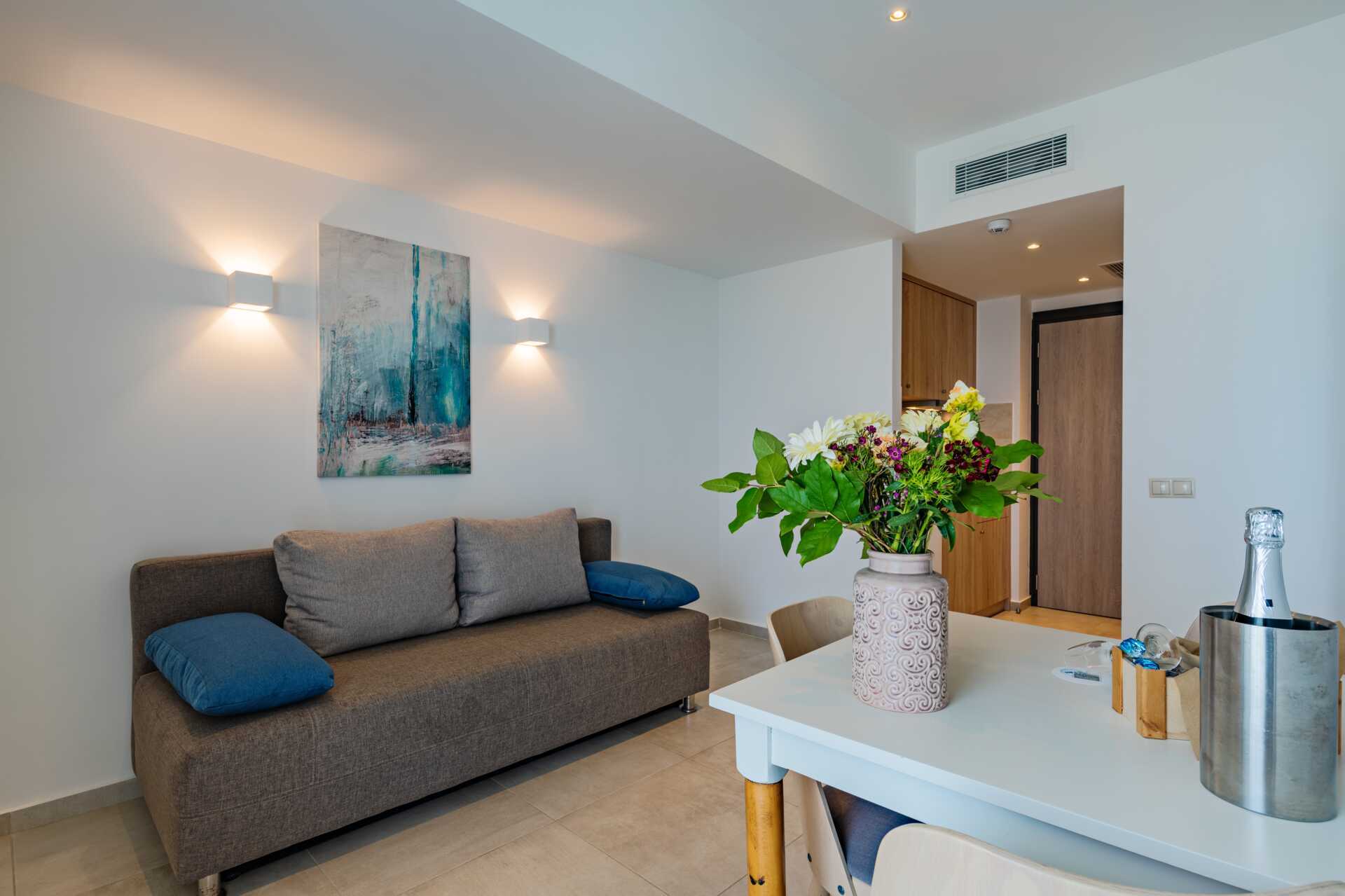 Suite met twee kamers met balkon of terras. De suite bestaat uit een slaapkamer en een woonkamer. Een tweepersoonsbed of twee eenpersoonsbedden. Mogelijkheid voor extra bedden in slaapbank. Comfort zoals dekbedden, kussenmenu's en klamboes. Bij aankomst wachten er bloemen, een fles water, een fles mousserende wijn en fruit op de kamer. Wifi en airconditioning inbegrepen. Kluis tegen betaling. Koelkast, minibar tegen betaling. Waterkoker en koffie en thee. Espressomachine. TV met internationale zenders Bij aankomst liggen badhanddoeken in de kamer. Badjassen en slippers Föhn. Badkamer met douche en wc. Schoonmaak 7 keer/week. Kinderen jonger dan twee jaar zijn inbegrepen in het maximale aantal personen in de kamer.