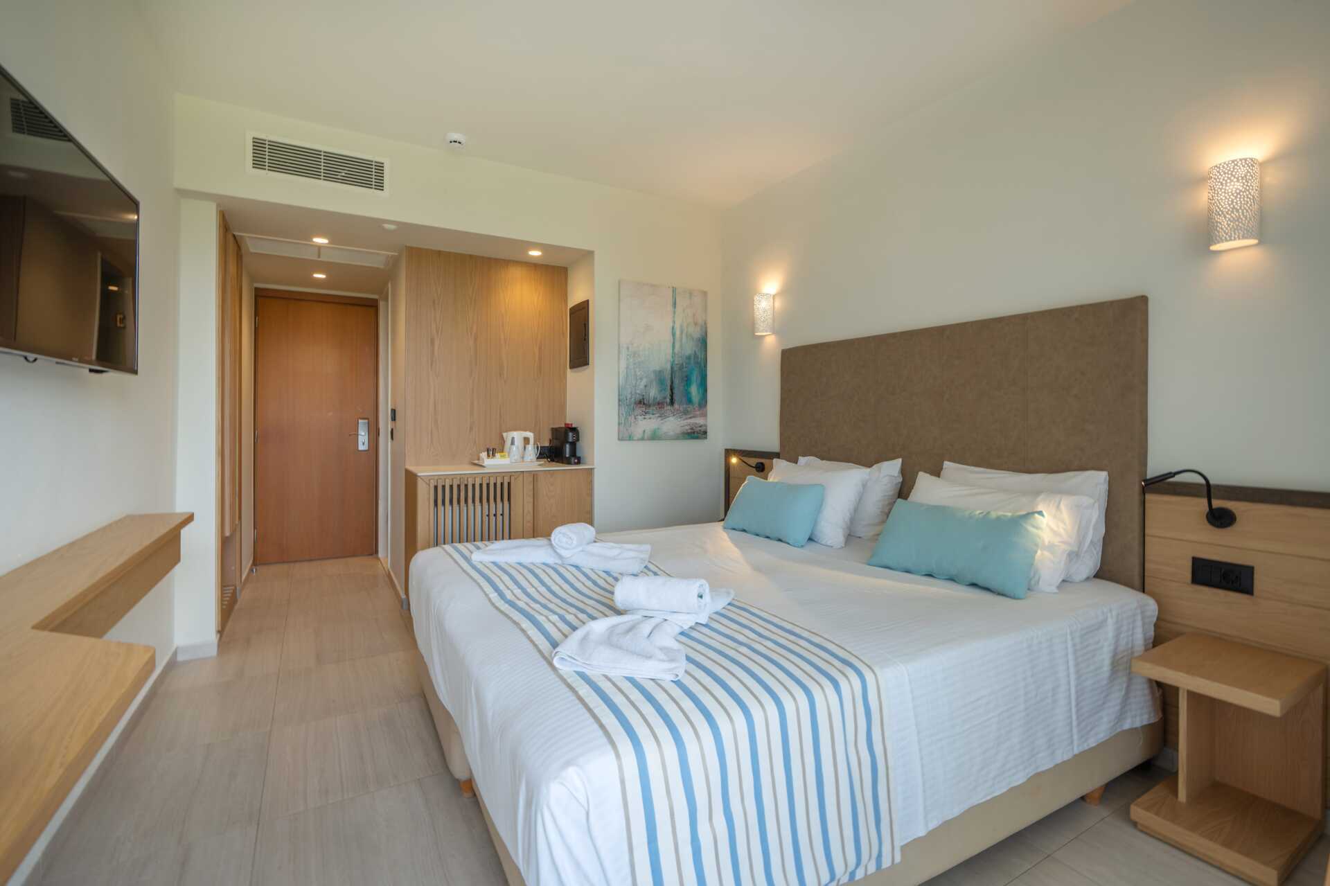 Standaardkamer met balkon of terras. Een tweepersoonsbed of twee eenpersoonsbedden. Mogelijkheid voor extra bed in slaapbank of eenpersoonsbed. Wifi en airconditioning inbegrepen. Kluis tegen betaling. Koelkast - minibar tegen betaling. Waterkoker en koffie en thee. Een fles water staat op de kamer bij aankomst. TV met internationale zenders. Mogelijkheid om een tablet te lenen tegen een borg. Een föhn. Badkamer met bad of douche en toilet. Schoonmaak 7 keer/week. Kinderen jonger dan twee jaar zijn inbegrepen in het maximum aantal personen op de kamer. Er zijn muggenhorren op het balkon.