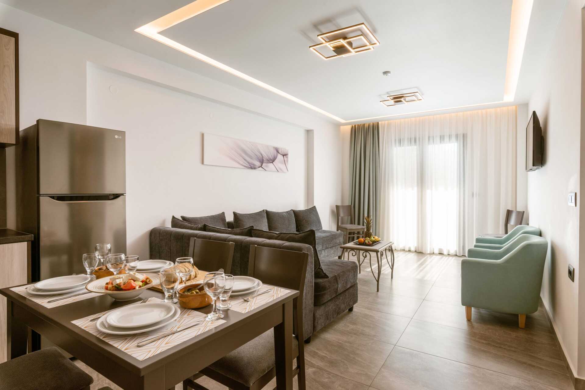Superieure tweekamerappartementen in verschillende groottes en uiterlijken. Balkon of terras op de begane grond met uitzicht op het zwembad. Slaapkamer en gecombineerde woonkamer met kitchenette. Een tweepersoonsbed. Mogelijkheid voor extra bedden in slaapbank. Minikeuken met kookplaten, koelkast, waterkoker, broodrooster, magnetron en goed keukengerei. Wasmachine. Strijkijzer en strijkplank. Wifi, airconditioning en kluisje inbegrepen. TV met internationale zenders. Föhn. Badkamer met douche en toilet. Schoonmaak 6 keer/week.
