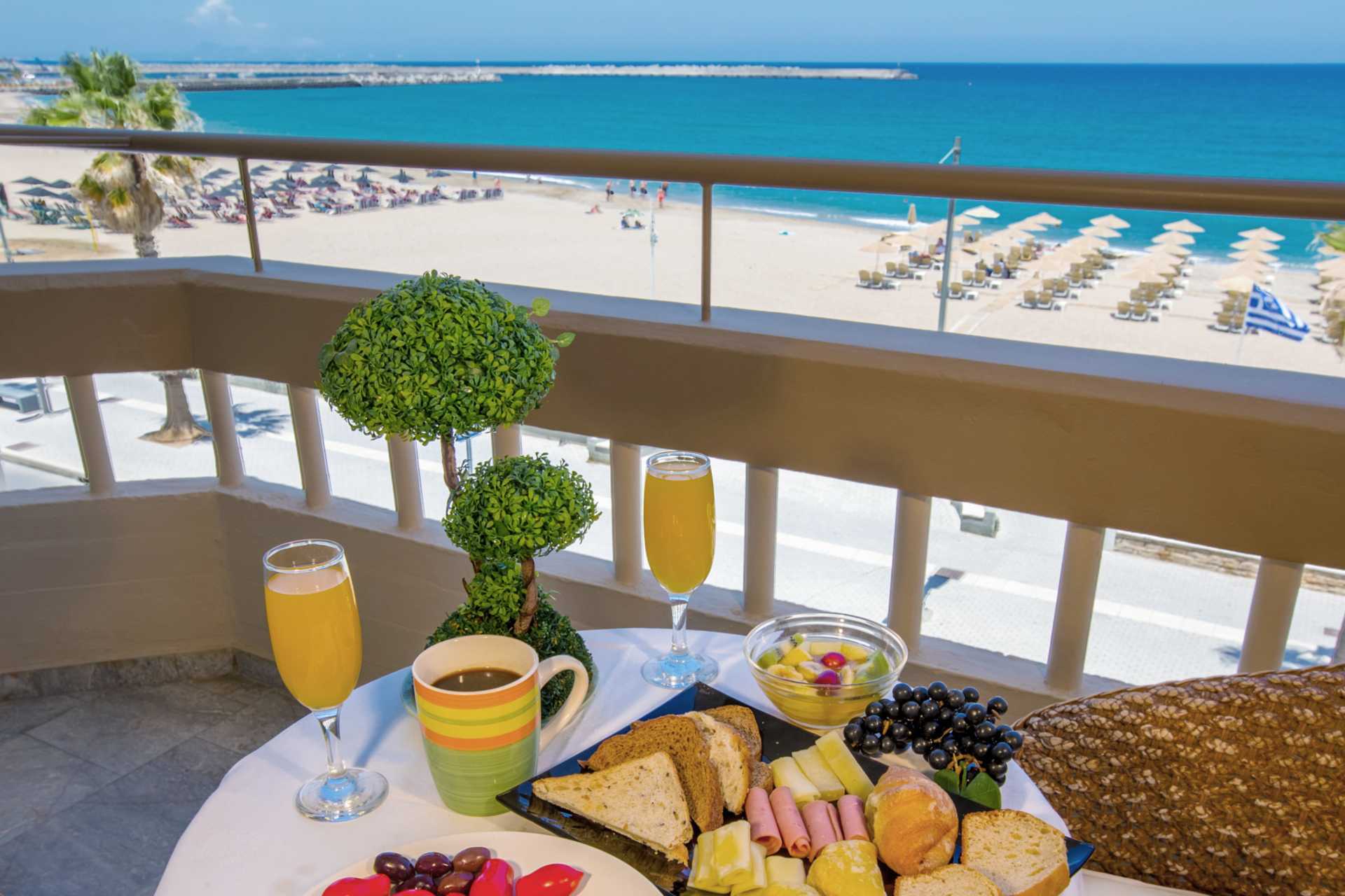 Studio met balkon of terras, sommige balkons met zeezicht. Slaapkamer gecombineerd met minikeuken. EƩn tweepersoonsbed of twee eenpersoonsbedden. Eenpersoonsbed voor extra slaapplaats. Minikeuken met kookplaten, koelkast, waterkoker en basiskeukengerei. Airconditioning en wifi. Kluisje tegen betaling. TV met lokale zenders. Haardroger. Badkamer met bad of douche en met toilet. Schoonmaak 6 keer/week.