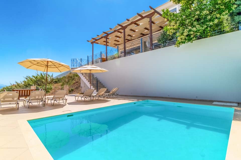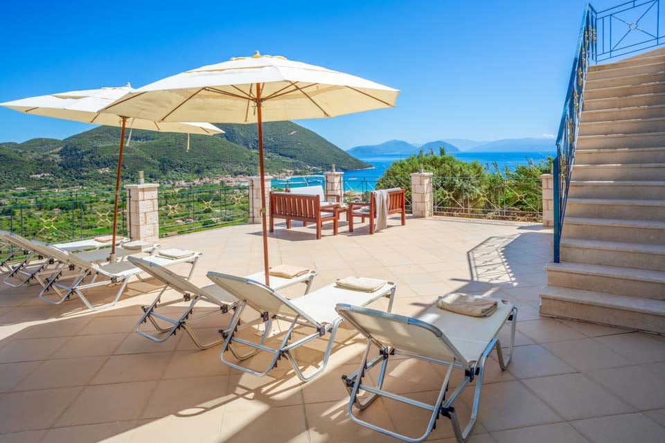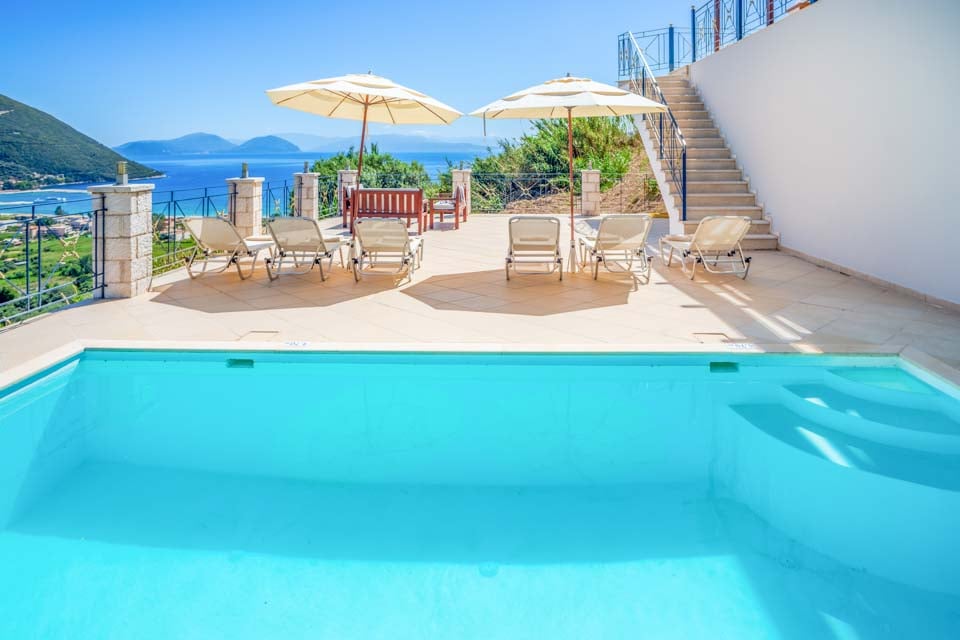 Villa Ponti ligt op de heuvel boven het fantastische kustplaatsje Vasiliki en biedt een adembenemend uitzicht over de omgeving en het kobaltblauwe water van de baai. Een schilderachtige wandeling van vijftien minuten bergafwaarts brengt u naar het begin van het lange zand- en kiezelstrand van Vasiliki, waar zich enkele voorzieningen bevinden. Het centrum van de badplaats, met een ruimere keuze aan restaurants, ligt iets verderop langs het strand of op vijf minuten rijden van de villa.