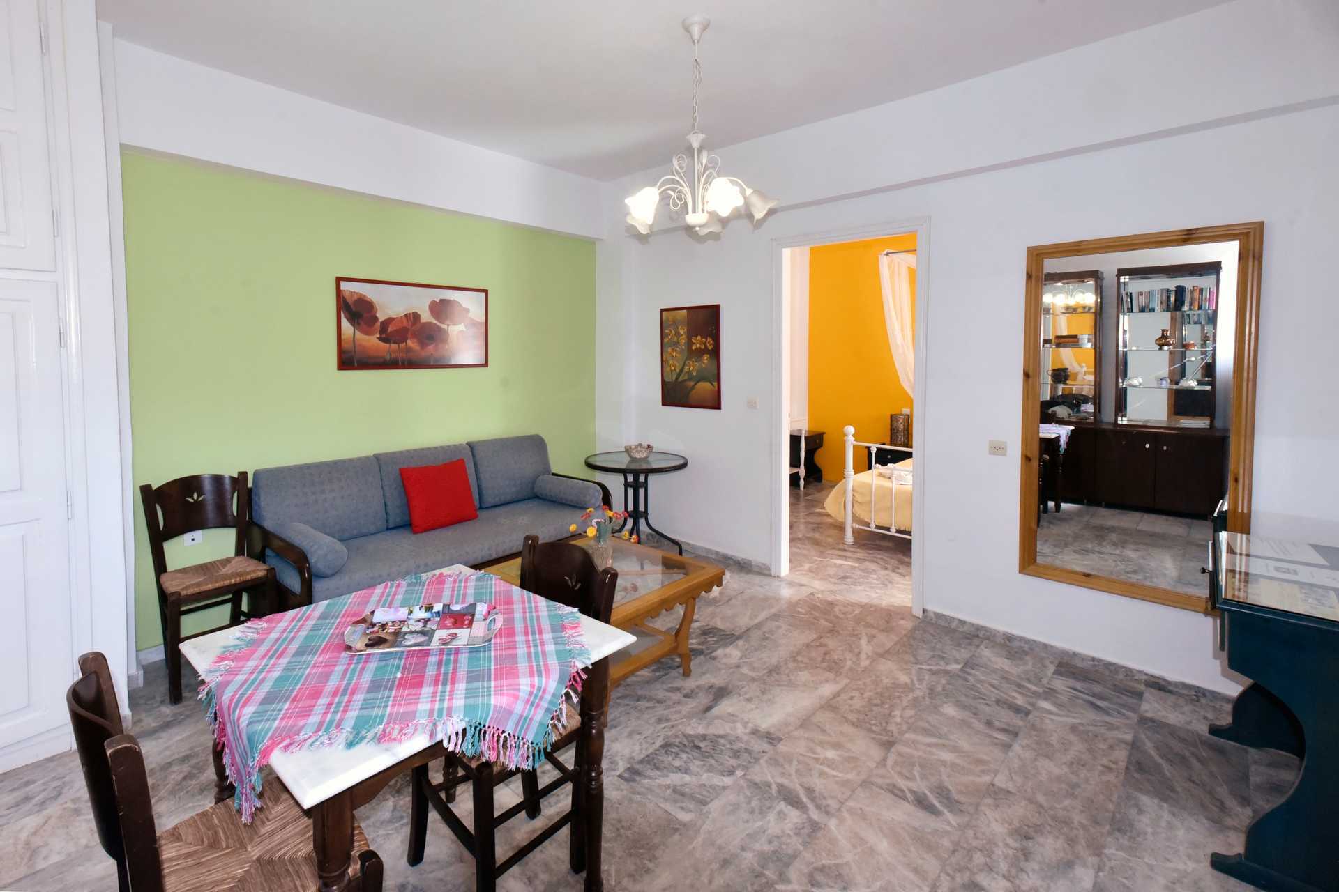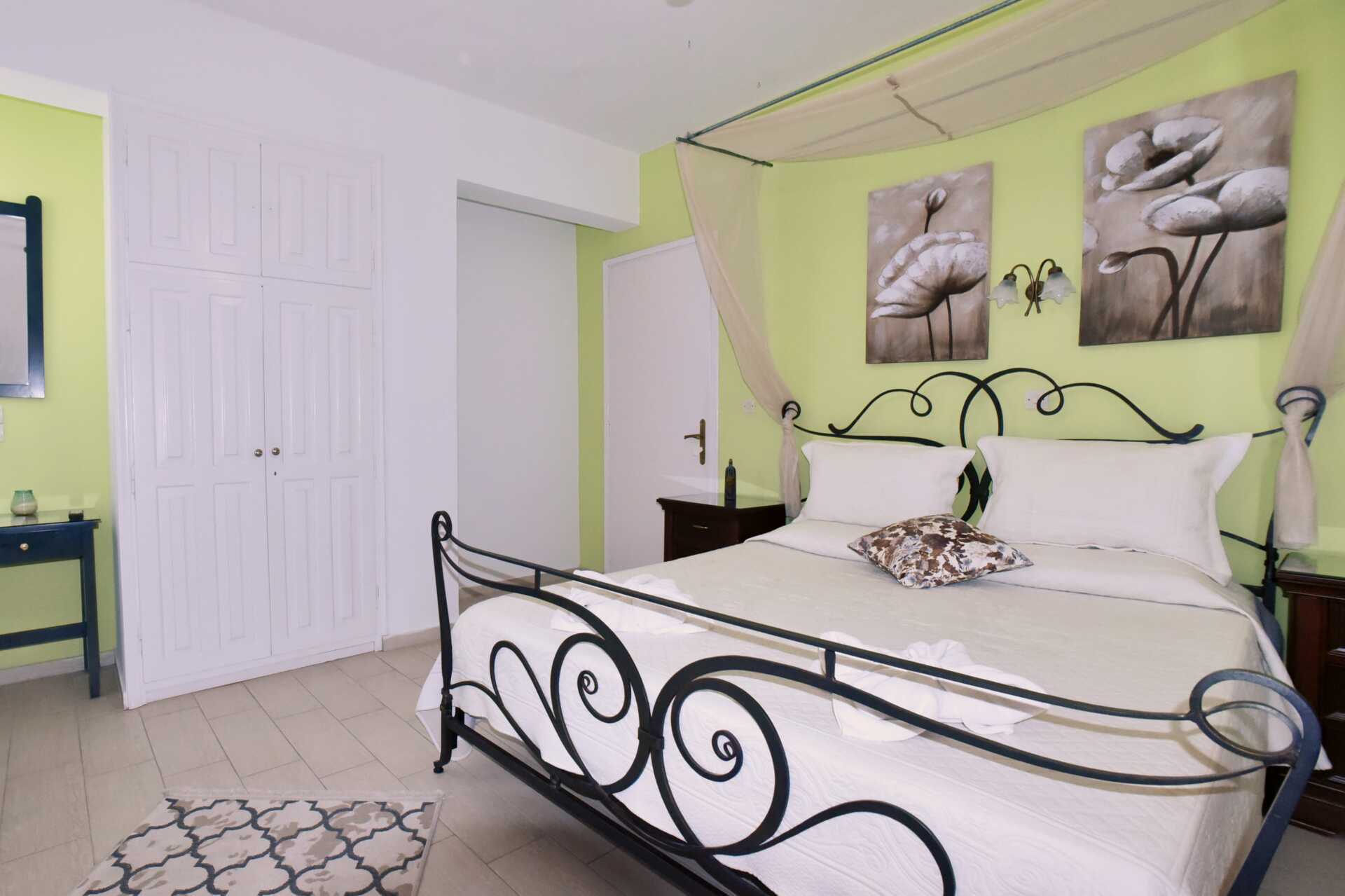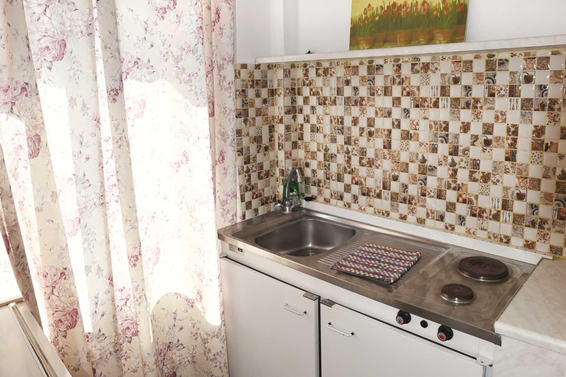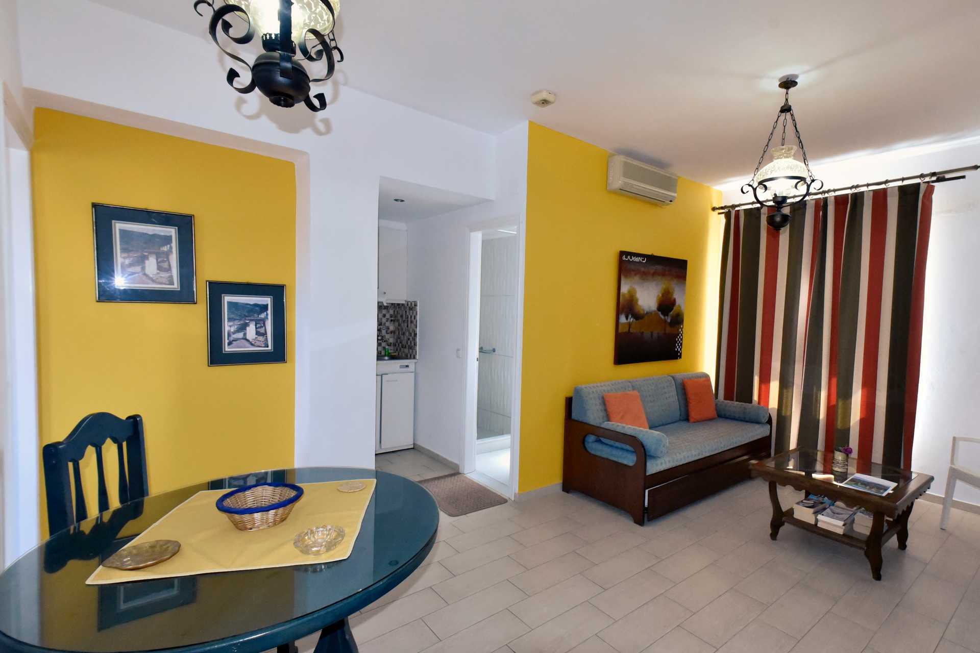 Eenkamerappartement met gedeelde patio. Slaapkamer gecombineerd met kitchenette. Een tweepersoonsbed of twee eenpersoonsbedden. Minikeuken met kookplaten, koelkast, waterkoker, koffiezetapparaat, magnetron en basiskeukengerei. Wifi, airconditioning en kluisje inbegrepen. Tv met internationale zenders. Föhn. Badkamer met douche en toilet. Schoonmaak 5 keer/week.