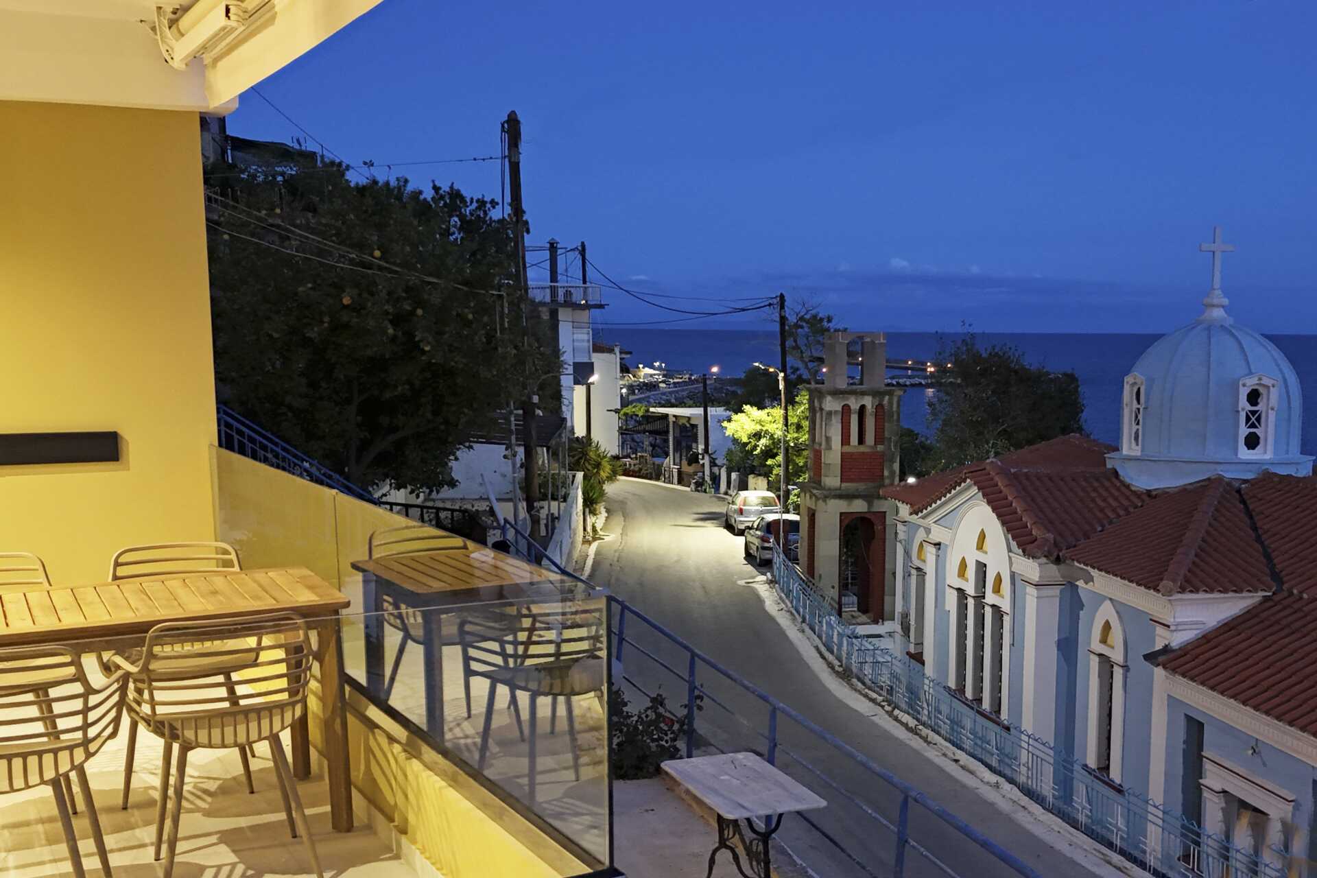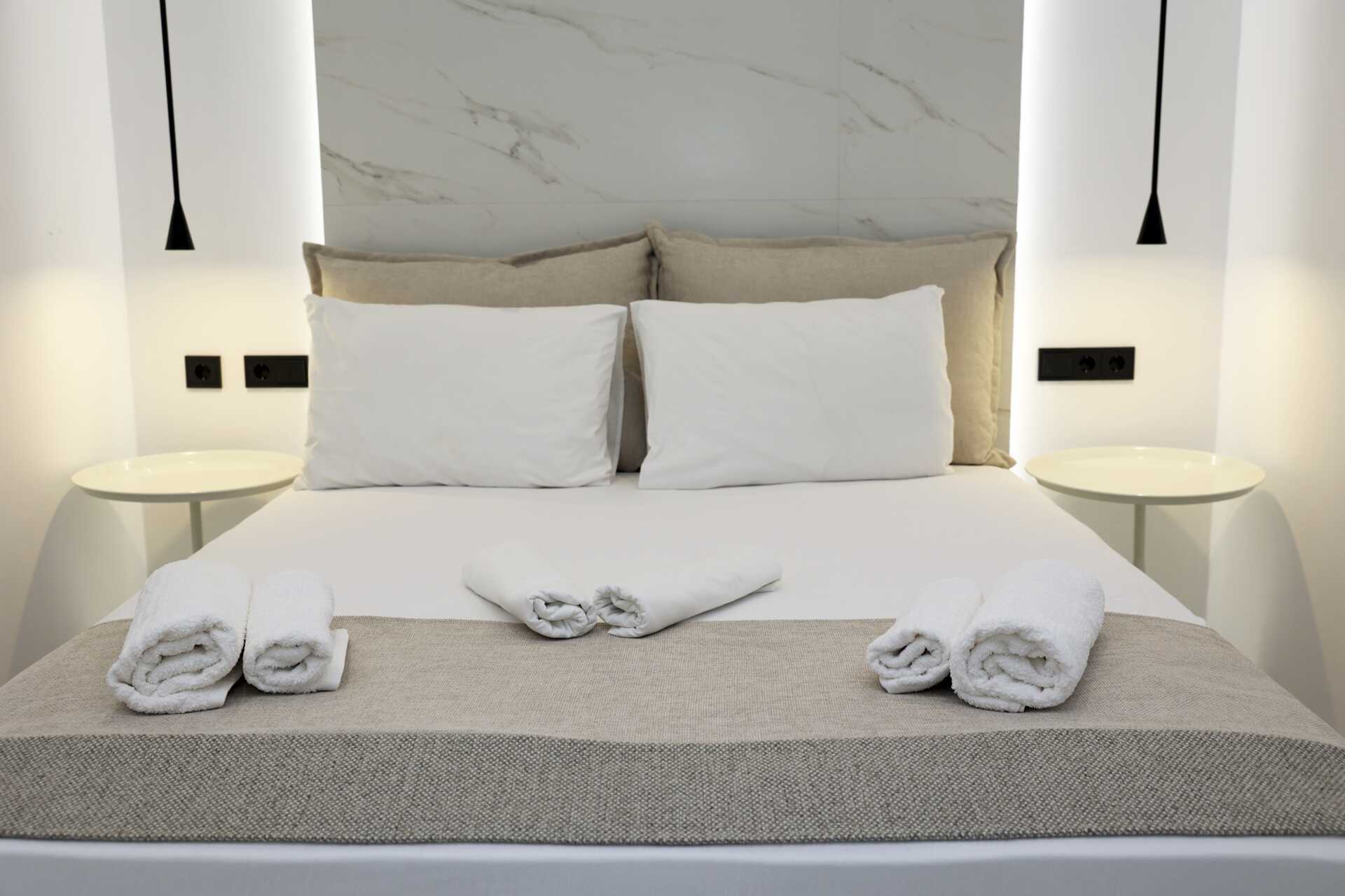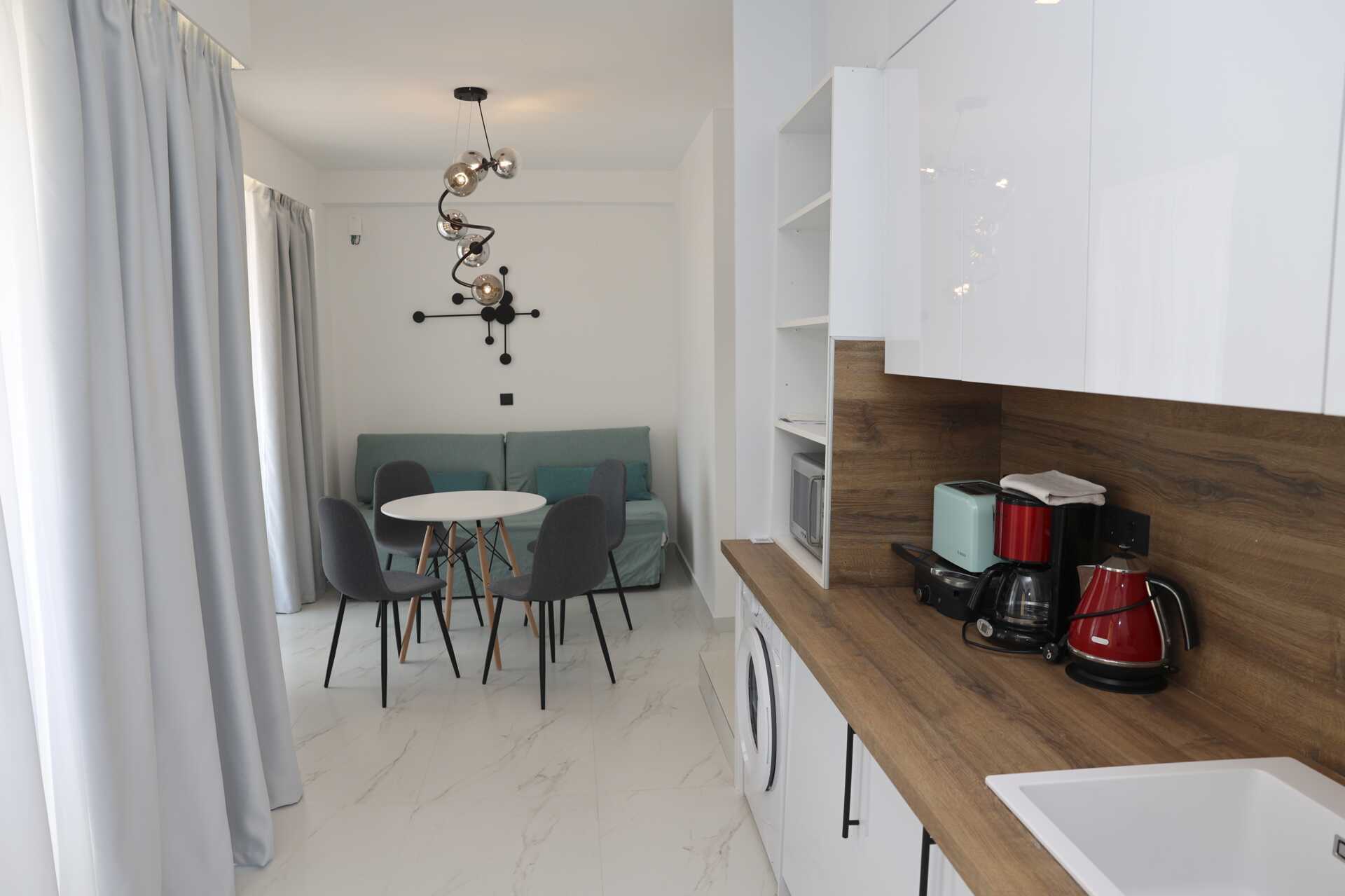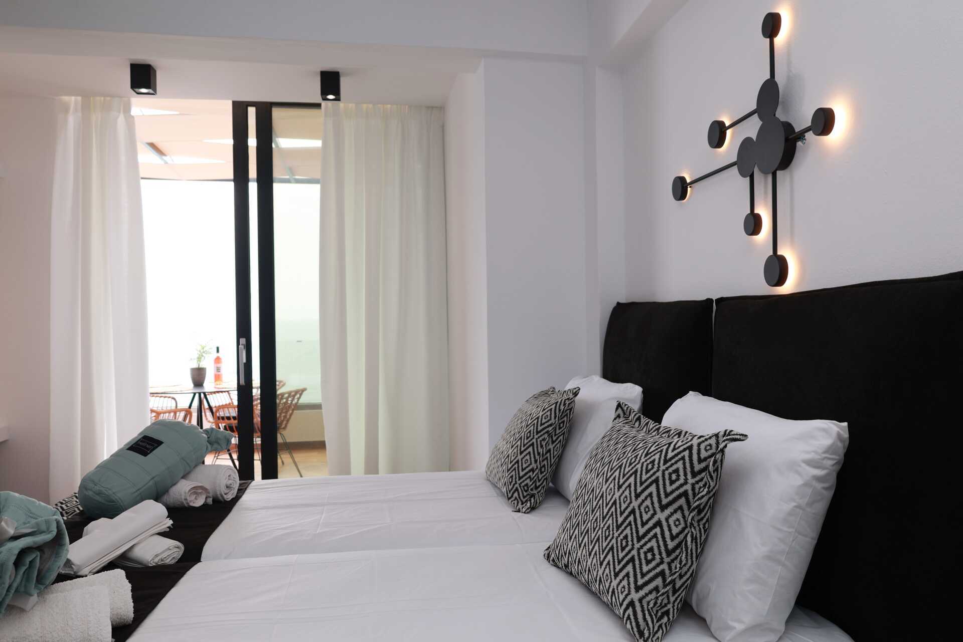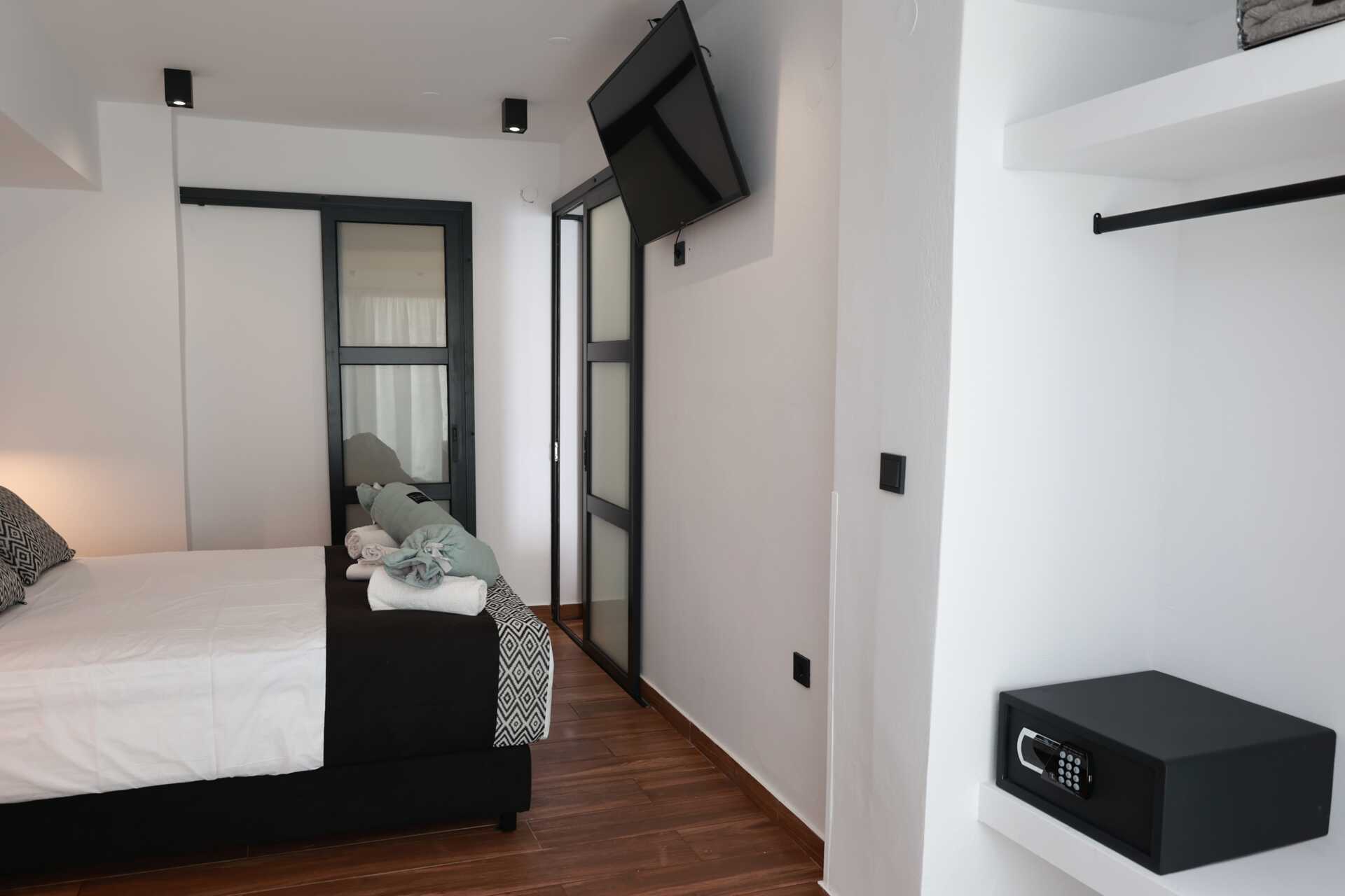 Studio met balkon en uitzicht op zee. Slaapkamer gecombineerd met kitchenette. Een tweepersoonsbed of twee eenpersoonsbedden. Minikeuken met kookplaten, koelkast met vriesvak, magnetron, koffiezetapparaat, waterkoker, broodrooster en eenvoudige keukenapparatuur. Wifi, airconditioning en kluisje inbegrepen. Tv met lokale zenders. Föhn. Badkamer met bad of douche en toilet. Entree via de patio. Schoonmaak 5 keer/week.