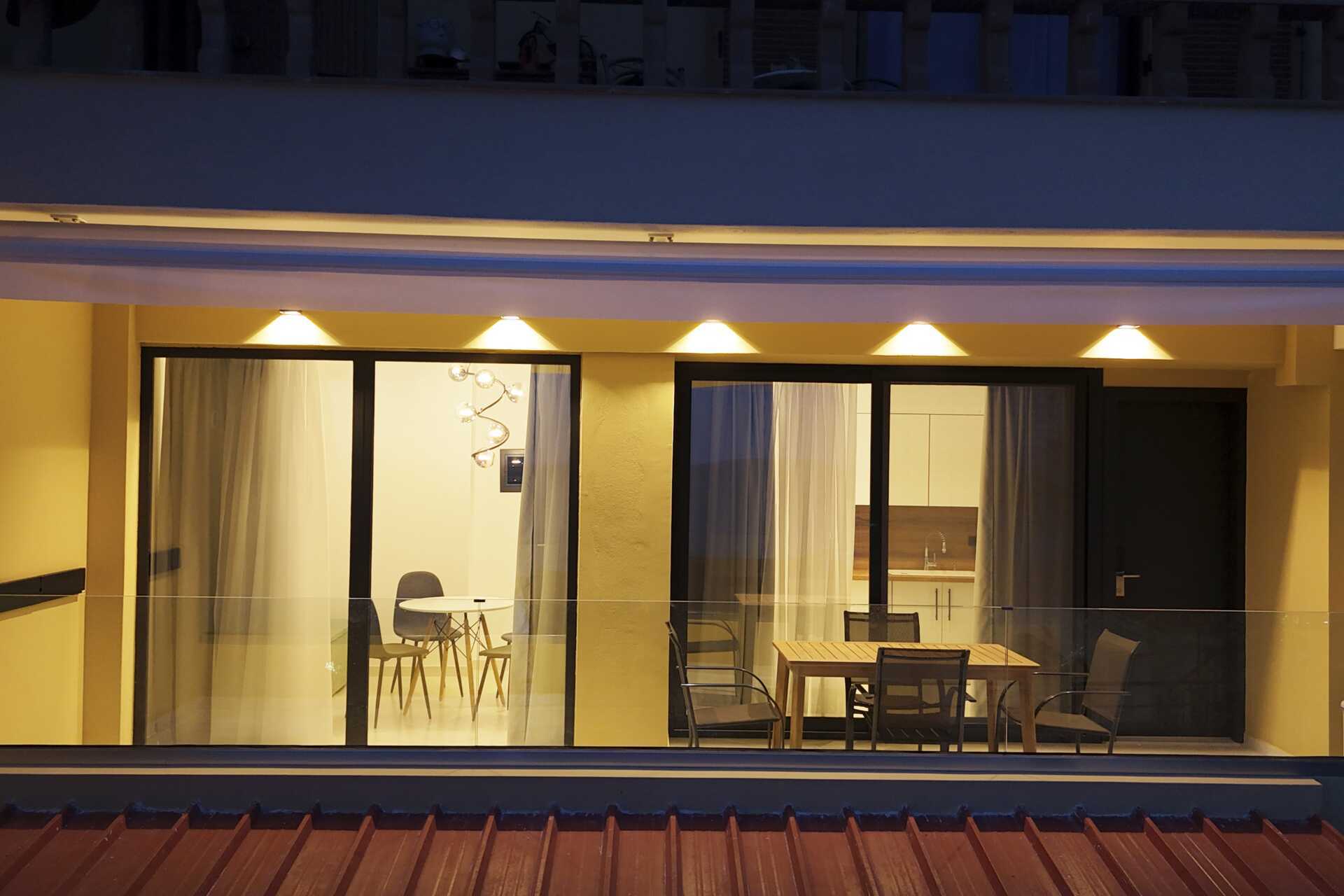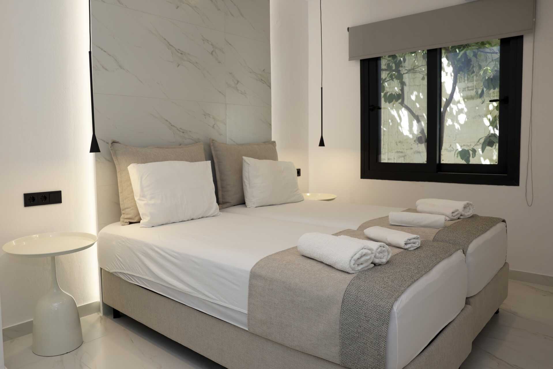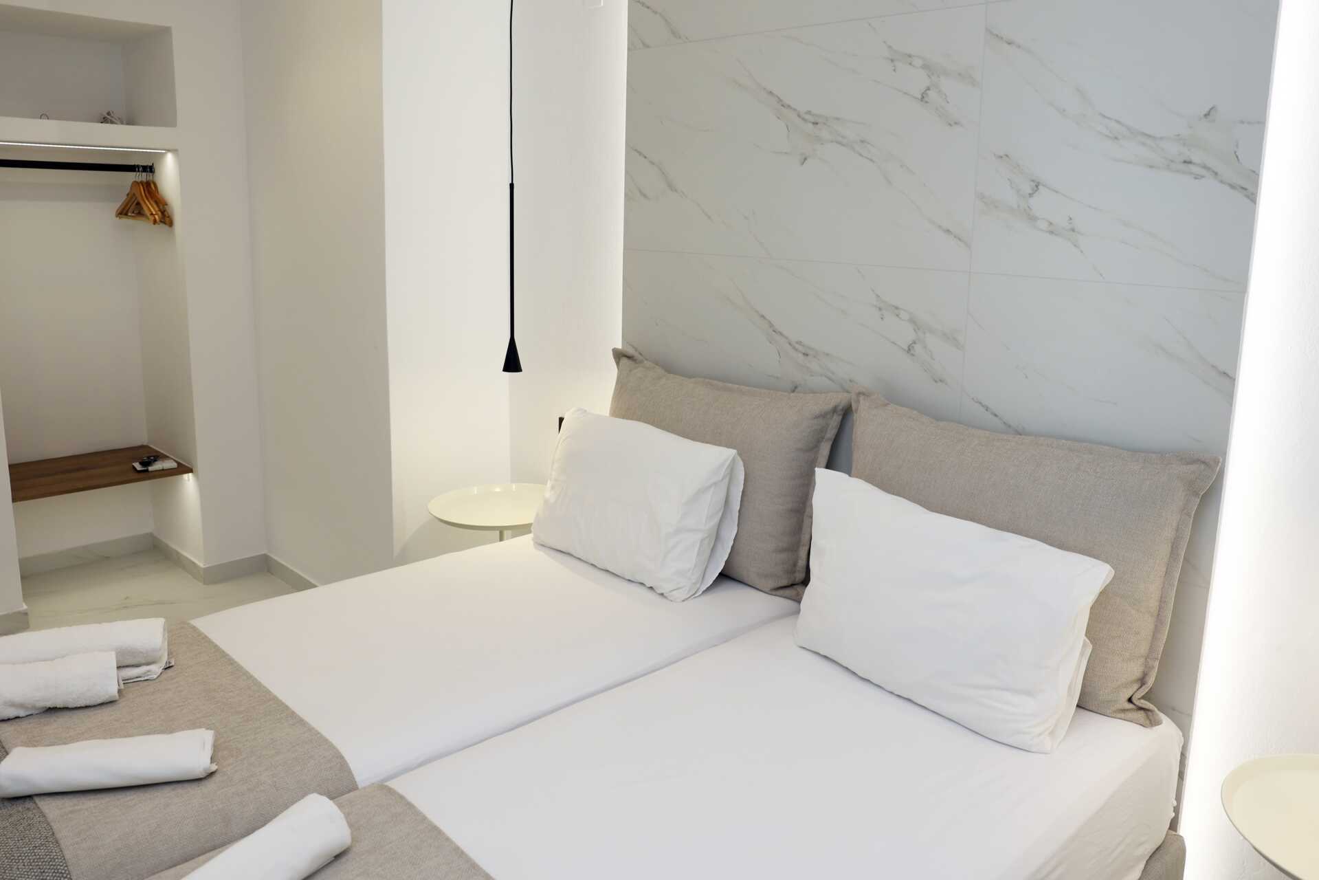 Tweekamerappartementen met balkon en zeezicht. Slaapkamer en een gecombineerde woonkamer met kitchenette. Niveauverschillen met enkele treden in het appartement. Twee eenpersoonsbedden in de slaapkamer en een eenpersoonsbed en een stapelbed in de woonkamer. Mogelijkheid voor een extra bed in een eenpersoonsbed. Minikeuken met kookplaten, oven, koelkast, koffiezetapparaat, waterkoker, magnetron, tosti-ijzer, broodrooster en basis keukenuitrusting. Wifi, airconditioning en kluisje inbegrepen. Tv met lokale zenders. Föhn. Strijkijzer en strijkplank. Badkamer met bad of douche en toilet. Schoonmaak 5 keer/week.