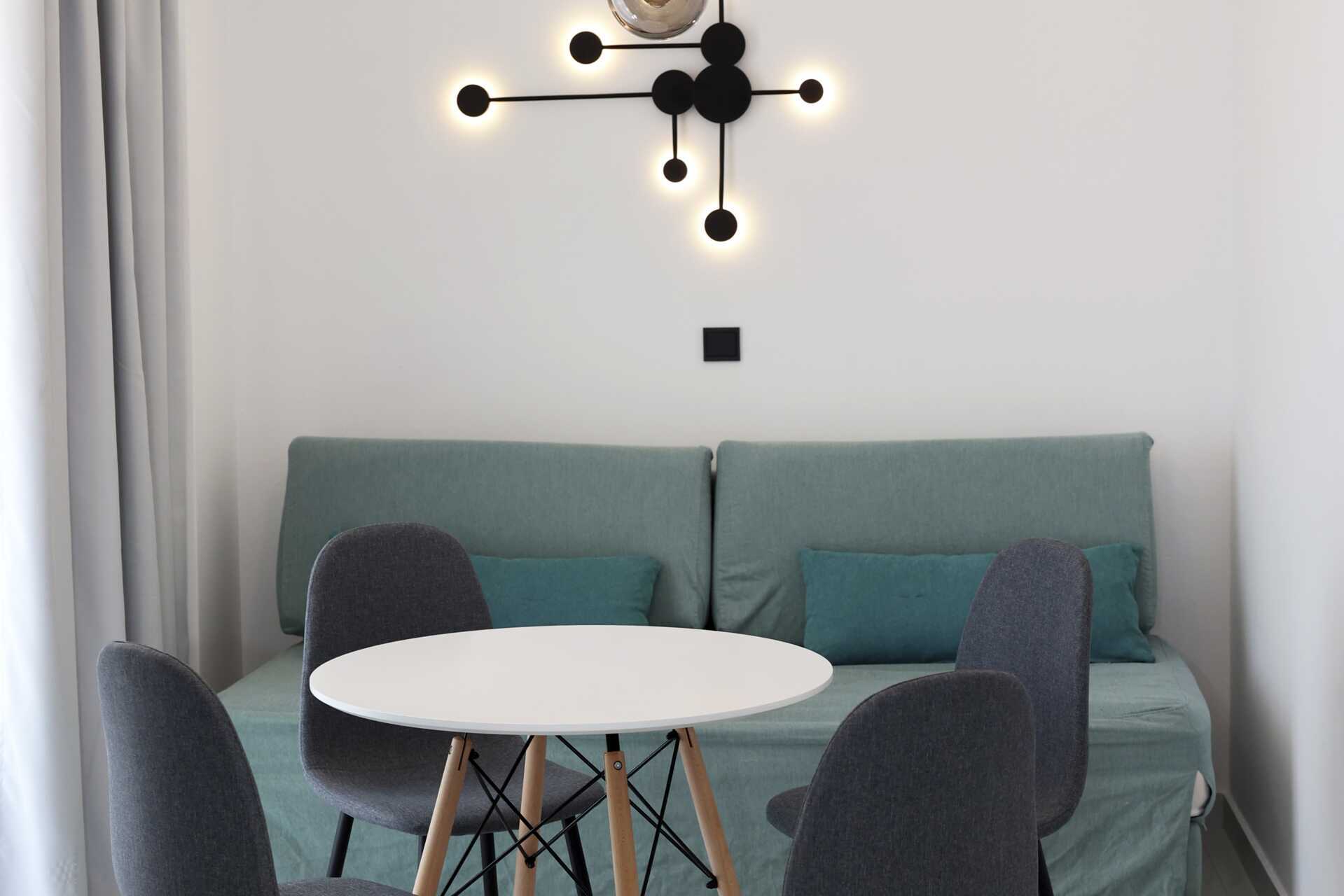 Kleinere tweekamerappartement met balkon en zeezicht. Slaapkamer en gecombineerde woonkamer met kitchenette. Twee eenpersoonsbedden. Mogelijkheid tot een extra bed in de vorm van een eenpersoonsbed. Minikeuken met kookplaten, koelkast met vriesvak, magnetron, koffiezetapparaat, waterkoker, broodrooster en eenvoudige keukenapparatuur. Wifi, airconditioning en kluisje inbegrepen. Tv met lokale zenders. Strijkijzer en strijkplank. Föhn. Badkamer met bad of douche en toilet. Schoonmaak 5 keer/week.