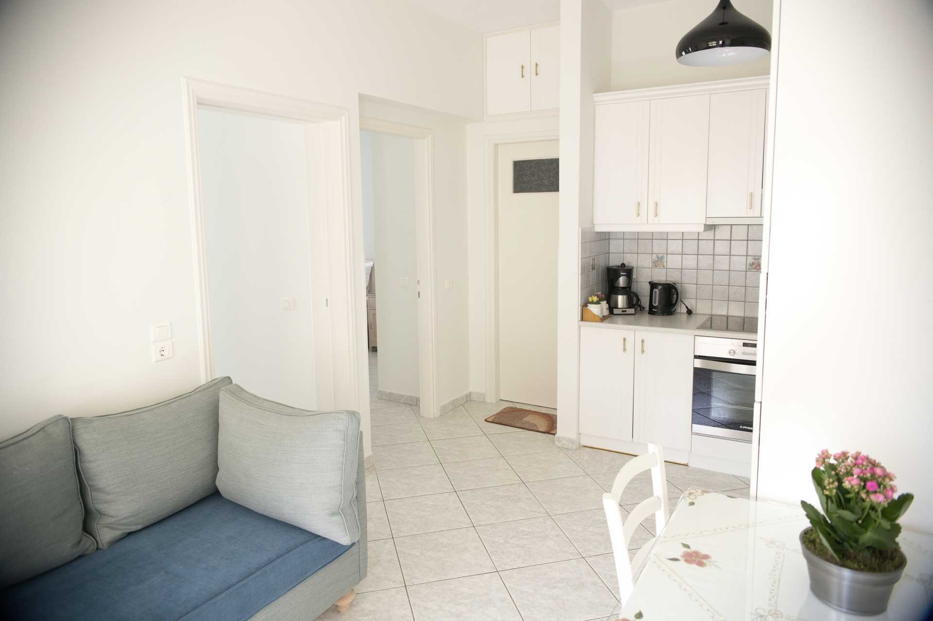 Tweekamerappartement met balkon en uitzicht op zee. Slaapkamer en gecombineerde woonkamer met kitchenette. Twee eenpersoonsbedden en mogelijkheid voor extra bed in de vorm van een slaapbank in de slaapkamer. Kitchenette met kookplaten, oven, koelkast, koffiezetapparaat, waterkoker, broodrooster en basiskeukengerei. Wifi en kluisje inbegrepen. Airconditioning tegen toeslag. TV met internationale zenders. Haardroger. Badkamer met douche en toilet. Schoonmaak 5 keer per week.