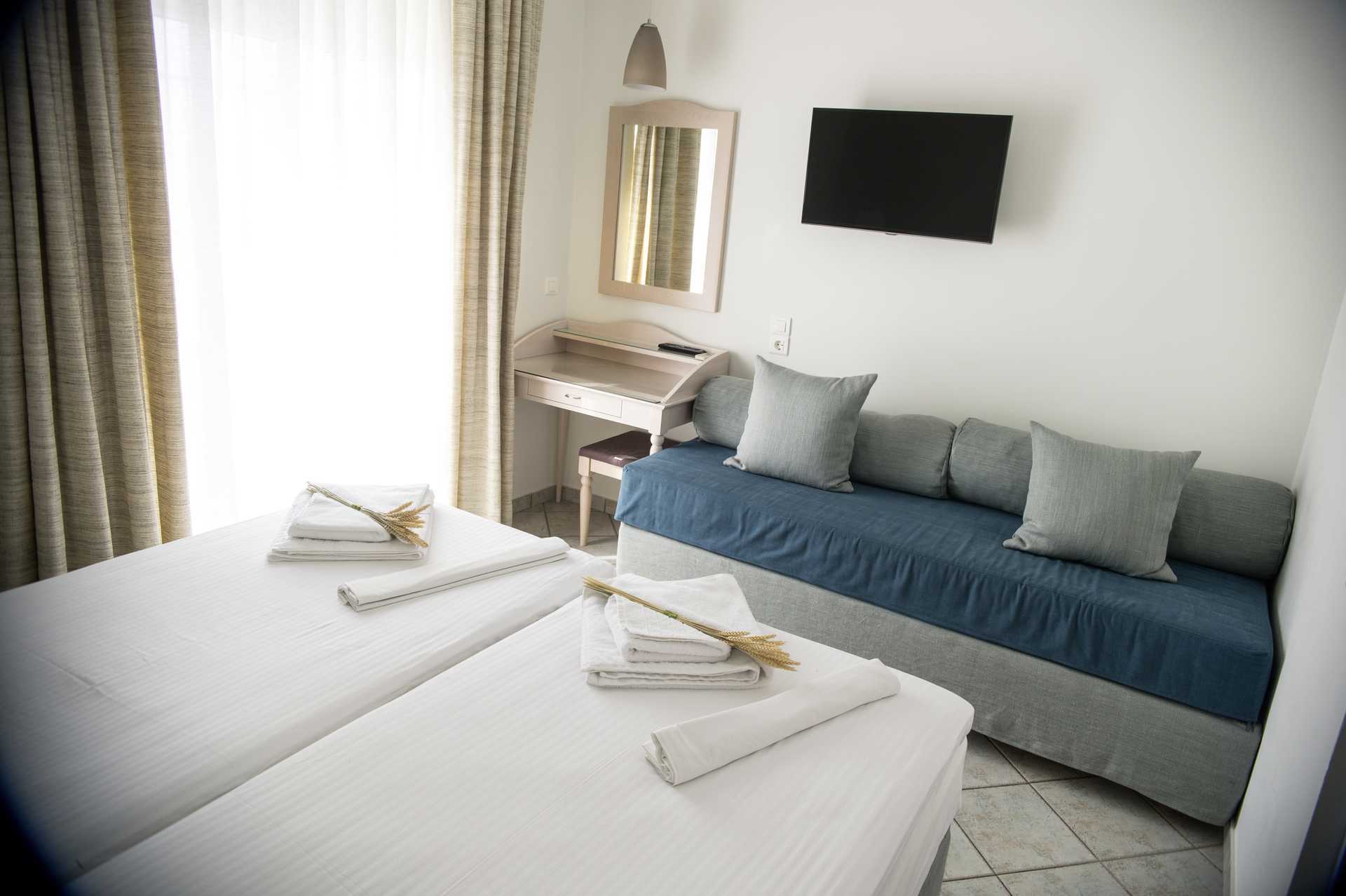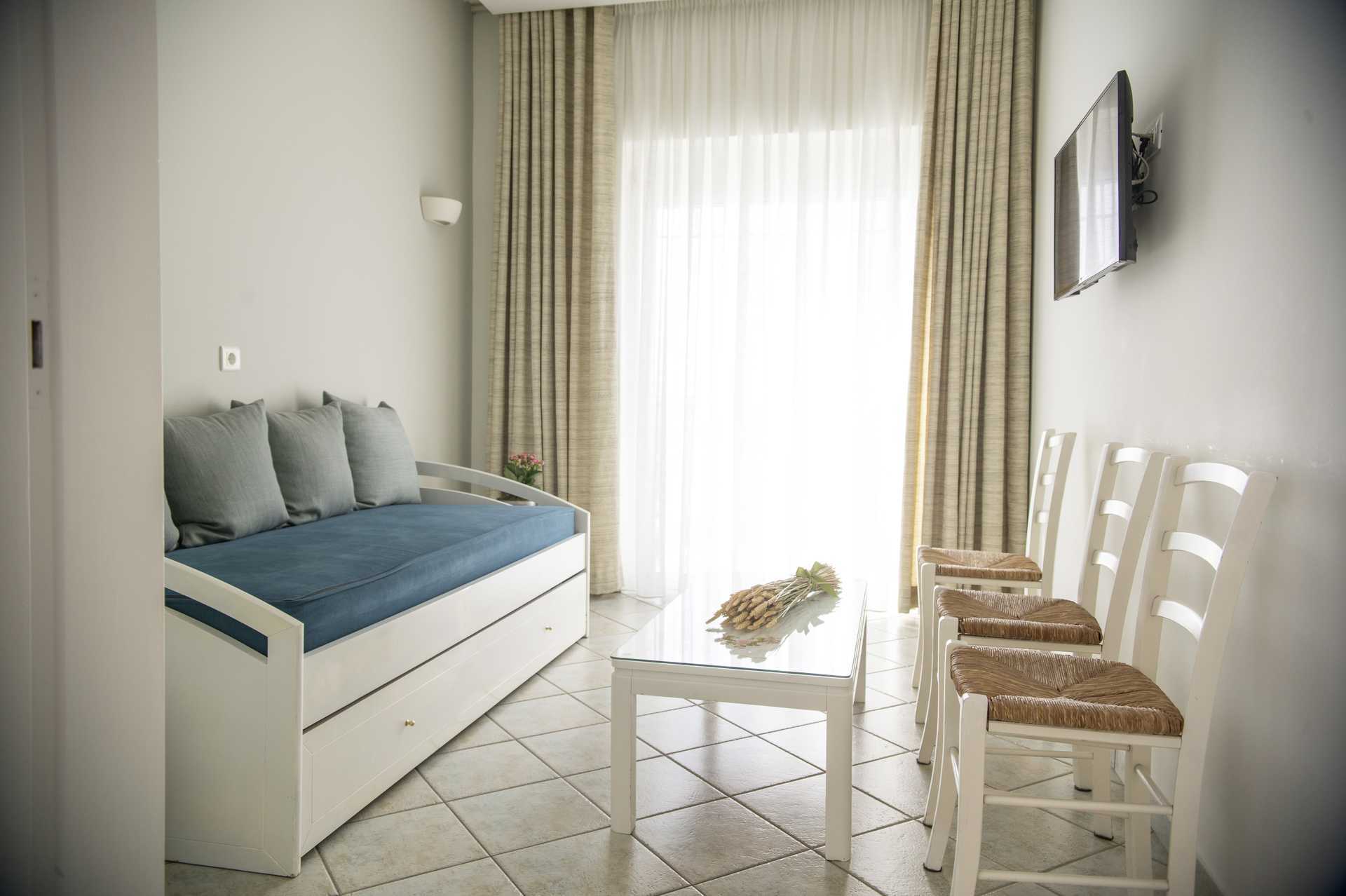 Superior tweekamerappartement met twee balkons en uitzicht op zee. Slaapkamer en een gecombineerde woonkamer met kitchenette. Twee eenpersoonsbedden. Mogelijkheid voor extra bedden in de vorm van een slaapbank. Kitchenette met kookplaten, oven, koelkast, koffiezetapparaat, waterkoker, broodrooster en basiskeukengerei. Wifi en kluisje inbegrepen. Airconditioning tegen toeslag. TV met internationale zenders. Haardroger. Badkamer met bad en toilet. Schoonmaak 5 keer per week.