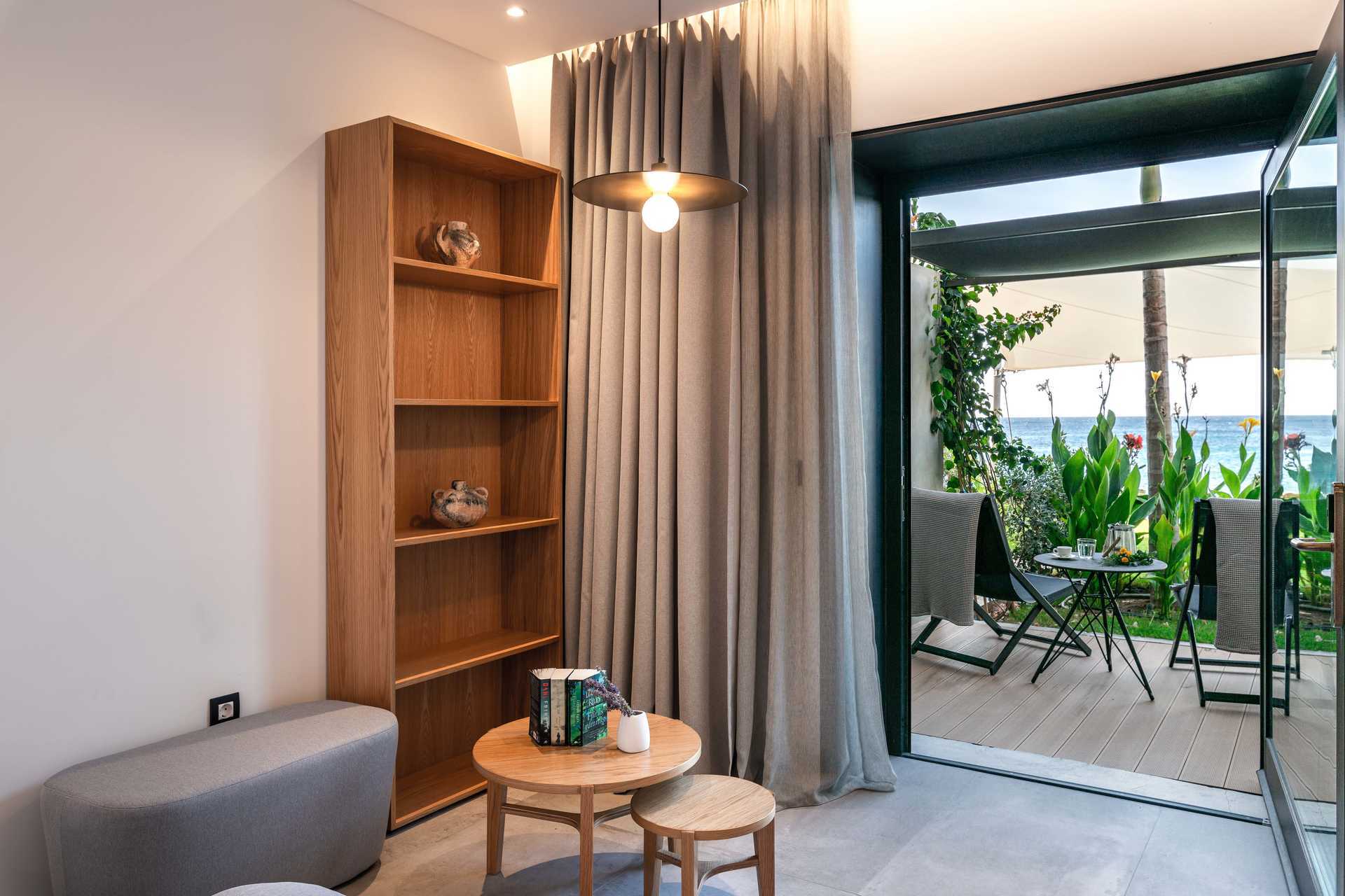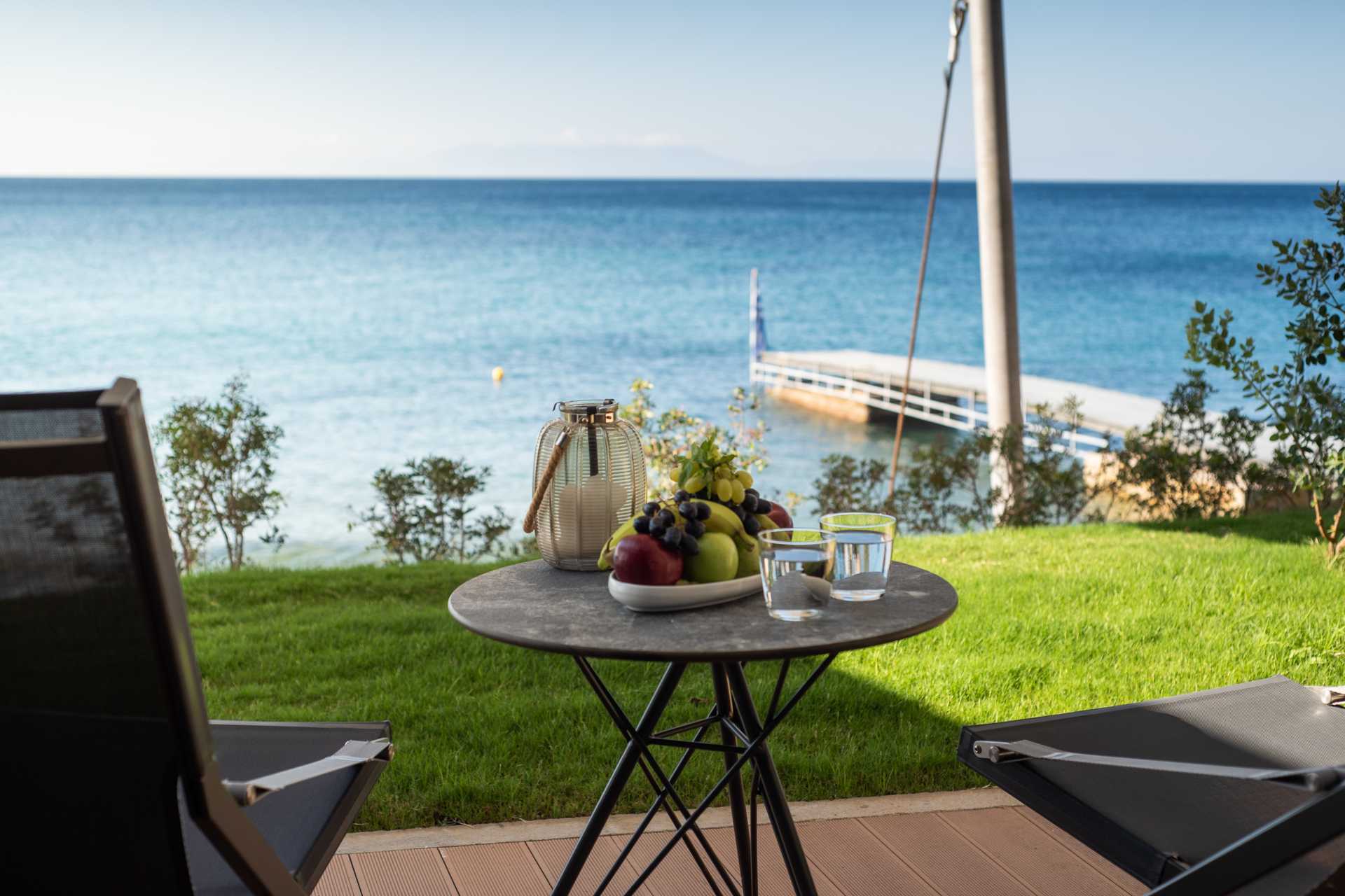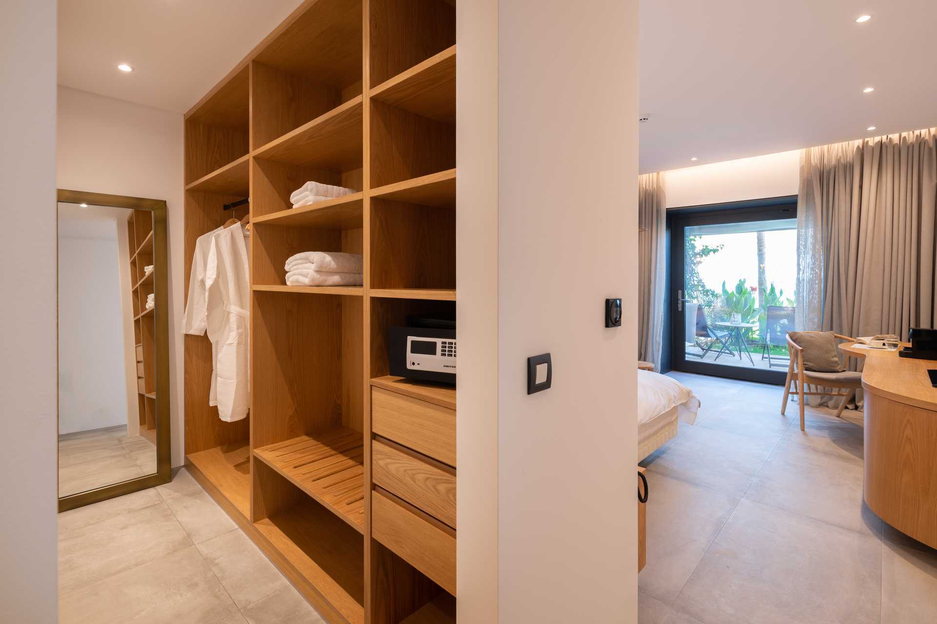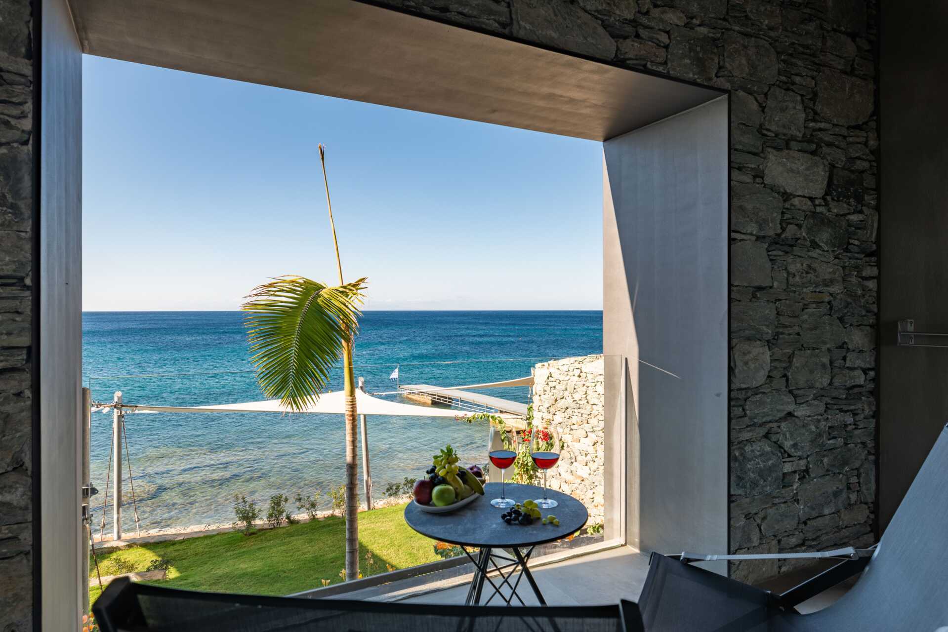 Junior suite met terras, sommige met zeezicht. Het slaapcomfort is uitzonderlijk met een comfortabel tweepersoonsbed en linnengoed van hoge kwaliteit. Wifi, airconditioning en kluisje inbegrepen. Minibar/koelkast. Nespresso-apparaat, vier koffiecapsules zijn inbegrepen, extra capsules zijn te koop bij de receptie. Er is een comfortabele zithoek in de kamer en op de patio. Bluetooth-luidsprekers kunnen tegen een toeslag worden geleend bij de receptie. Haardroger. Badkamer met douche en toilet. Om de dag schoonmaak.