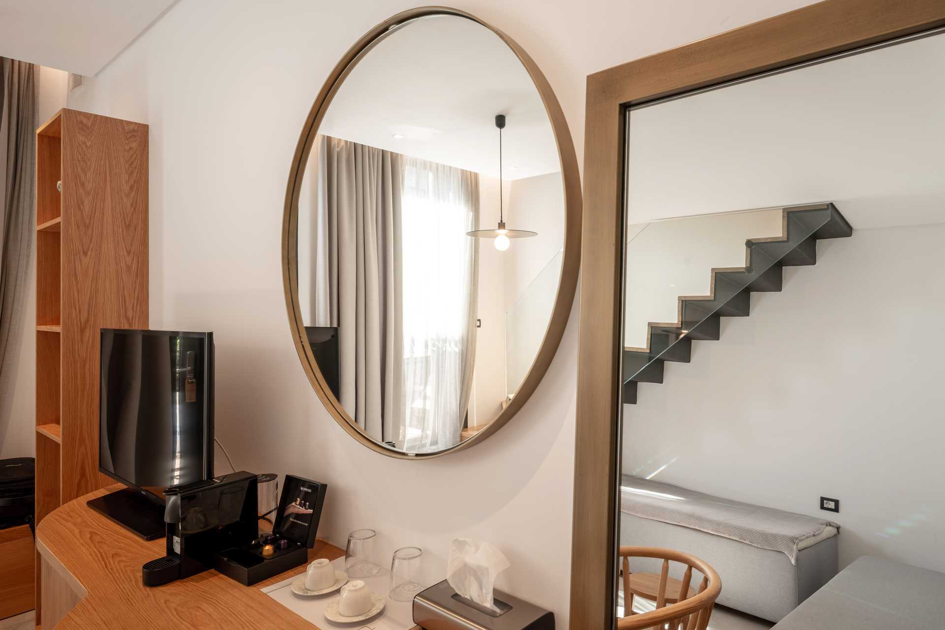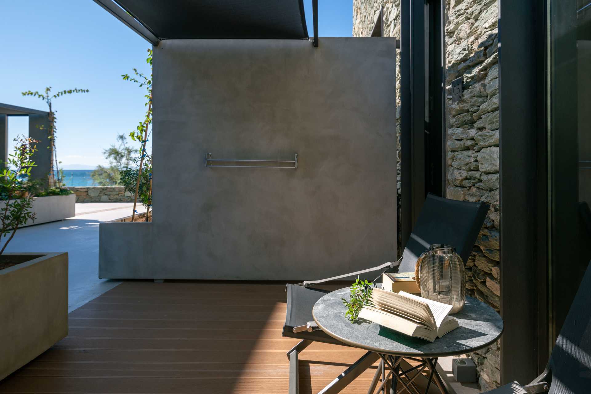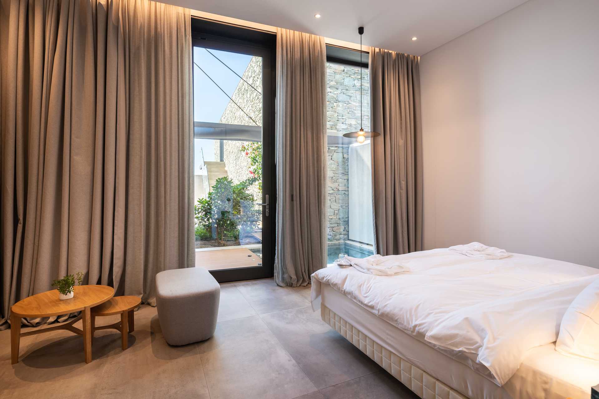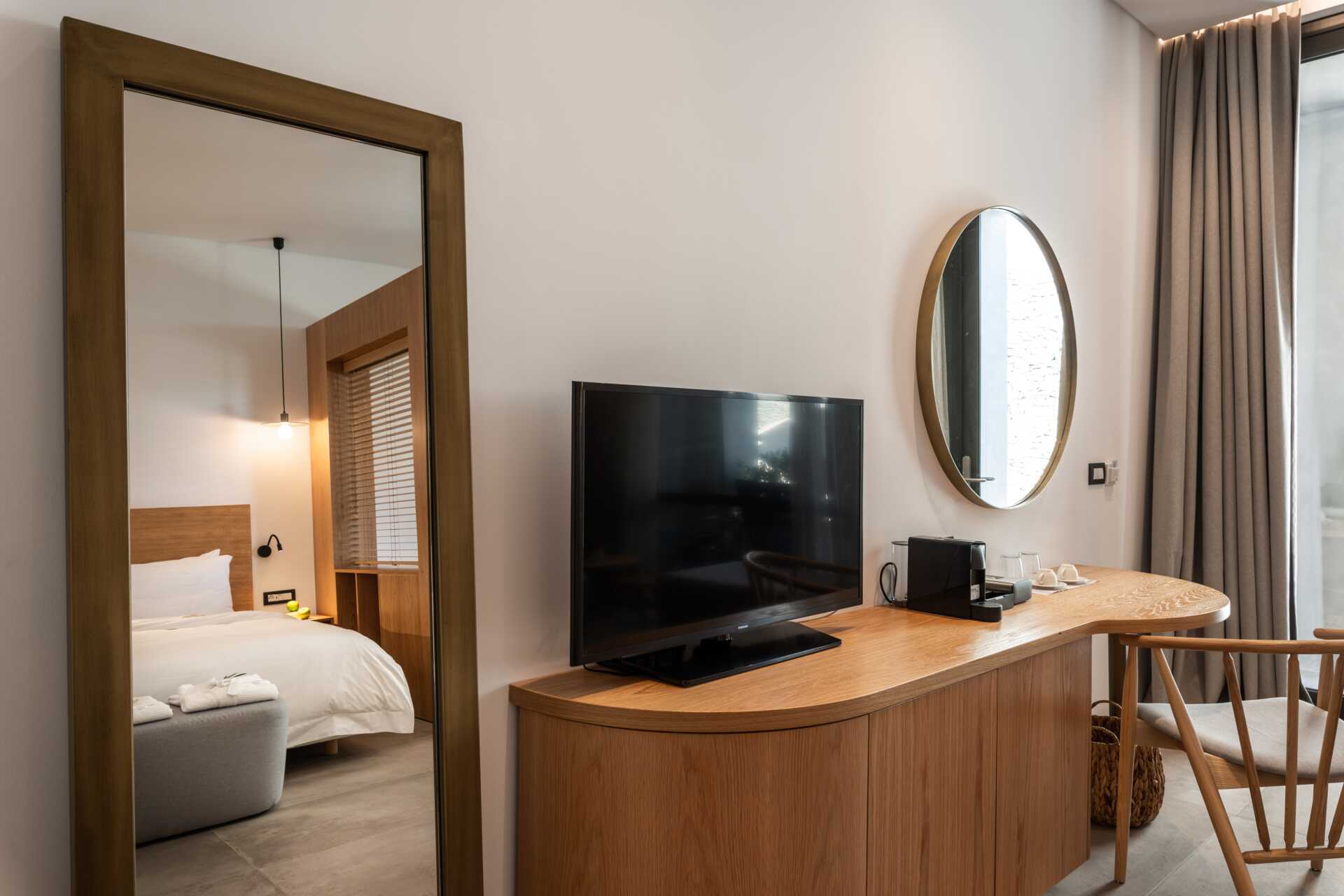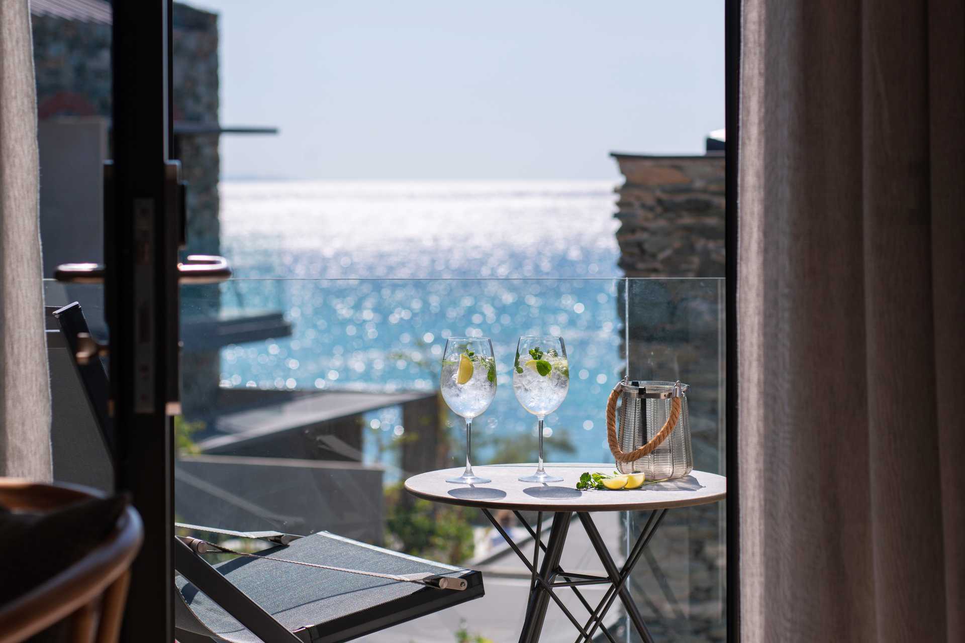 Junior suite met terras, sommige met zeezicht. Het slaapcomfort is uitzonderlijk met een comfortabel tweepersoonsbed en linnengoed van hoge kwaliteit. Wifi, airconditioning en kluisje inbegrepen. Minibar/koelkast. Nespresso-apparaat, vier koffiecapsules zijn inbegrepen, extra capsules zijn te koop bij de receptie. Er is een comfortabele zithoek in de kamer en op de patio. Bluetooth-luidsprekers kunnen tegen een toeslag worden geleend bij de receptie. Haardroger. Badkamer met douche en toilet. Om de dag schoonmaak.