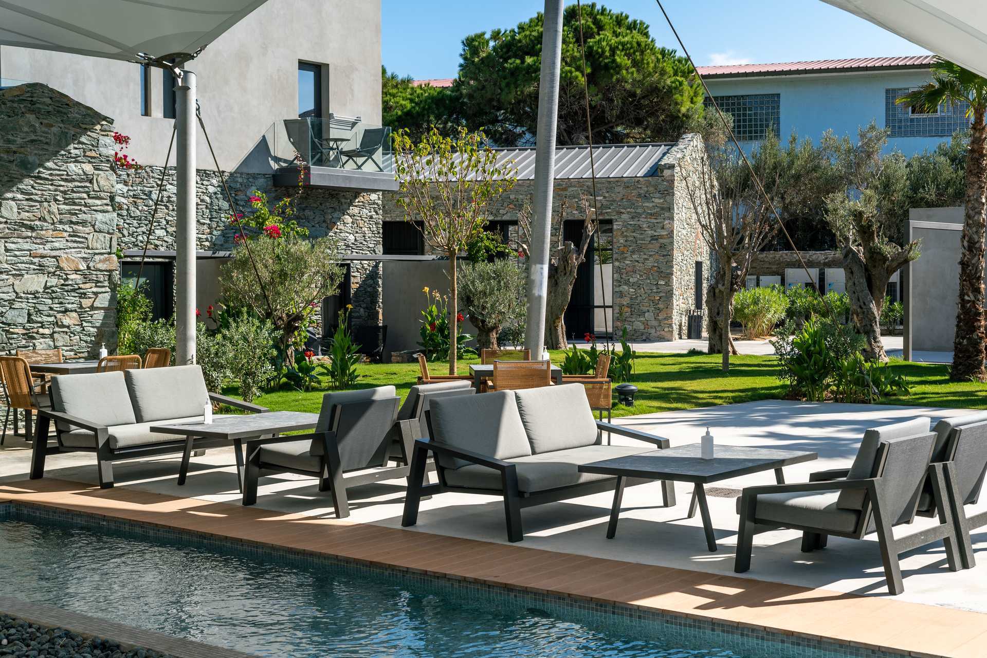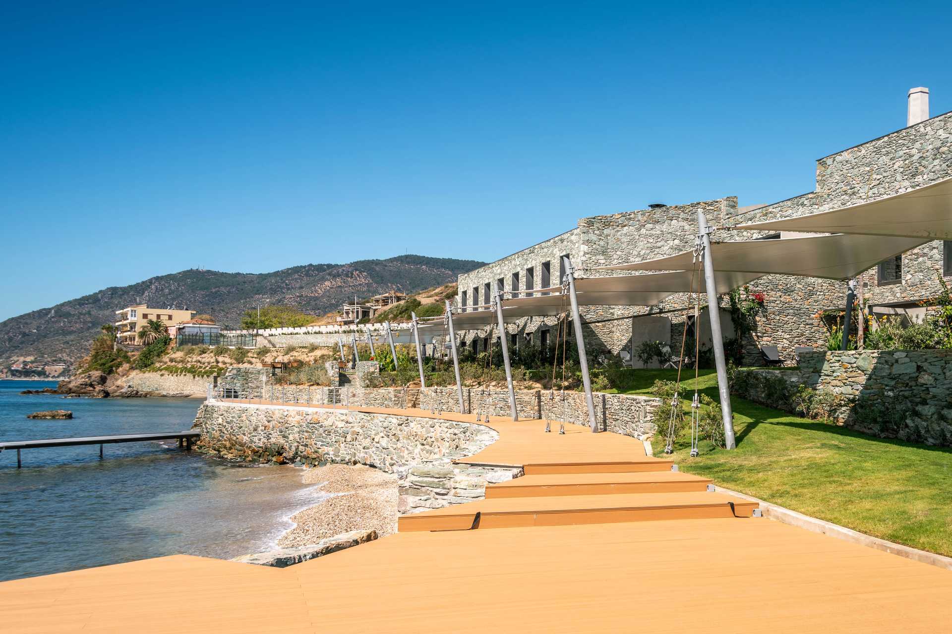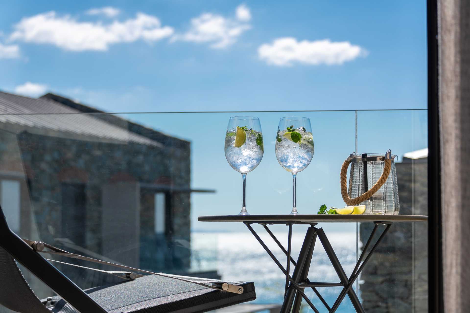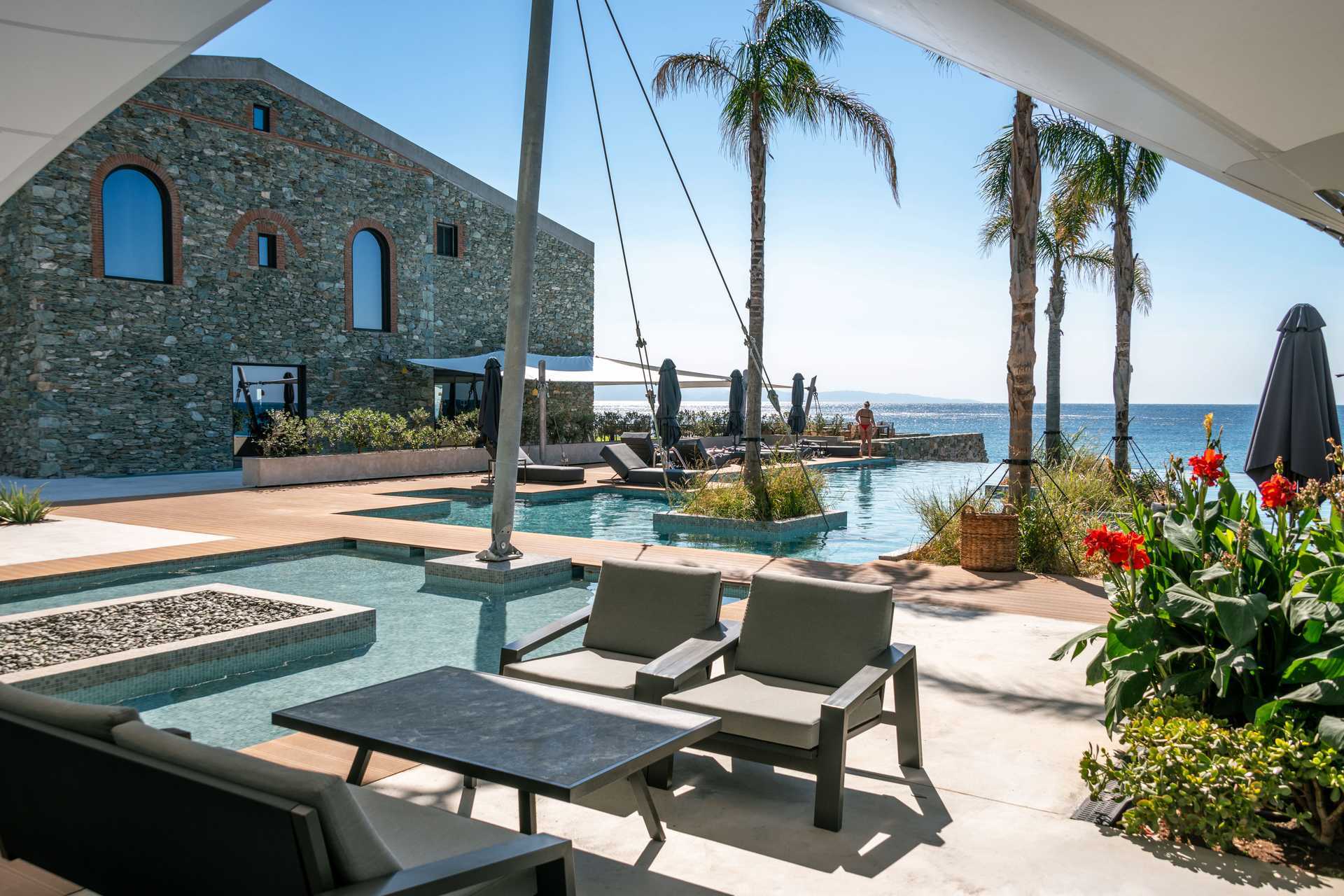 Junior suite met terras, sommige met zeezicht. Het slaapcomfort is uitzonderlijk met een comfortabel tweepersoonsbed en linnengoed van hoge kwaliteit. Wifi, airconditioning en kluisje inbegrepen. Minibar/koelkast. Nespresso-apparaat, vier koffiecapsules zijn inbegrepen, extra capsules zijn te koop bij de receptie. Er is een comfortabele zithoek in de kamer en op de patio. Bluetooth-luidsprekers kunnen tegen een toeslag worden geleend bij de receptie. Haardroger. Badkamer met douche en toilet. Om de dag schoonmaak.