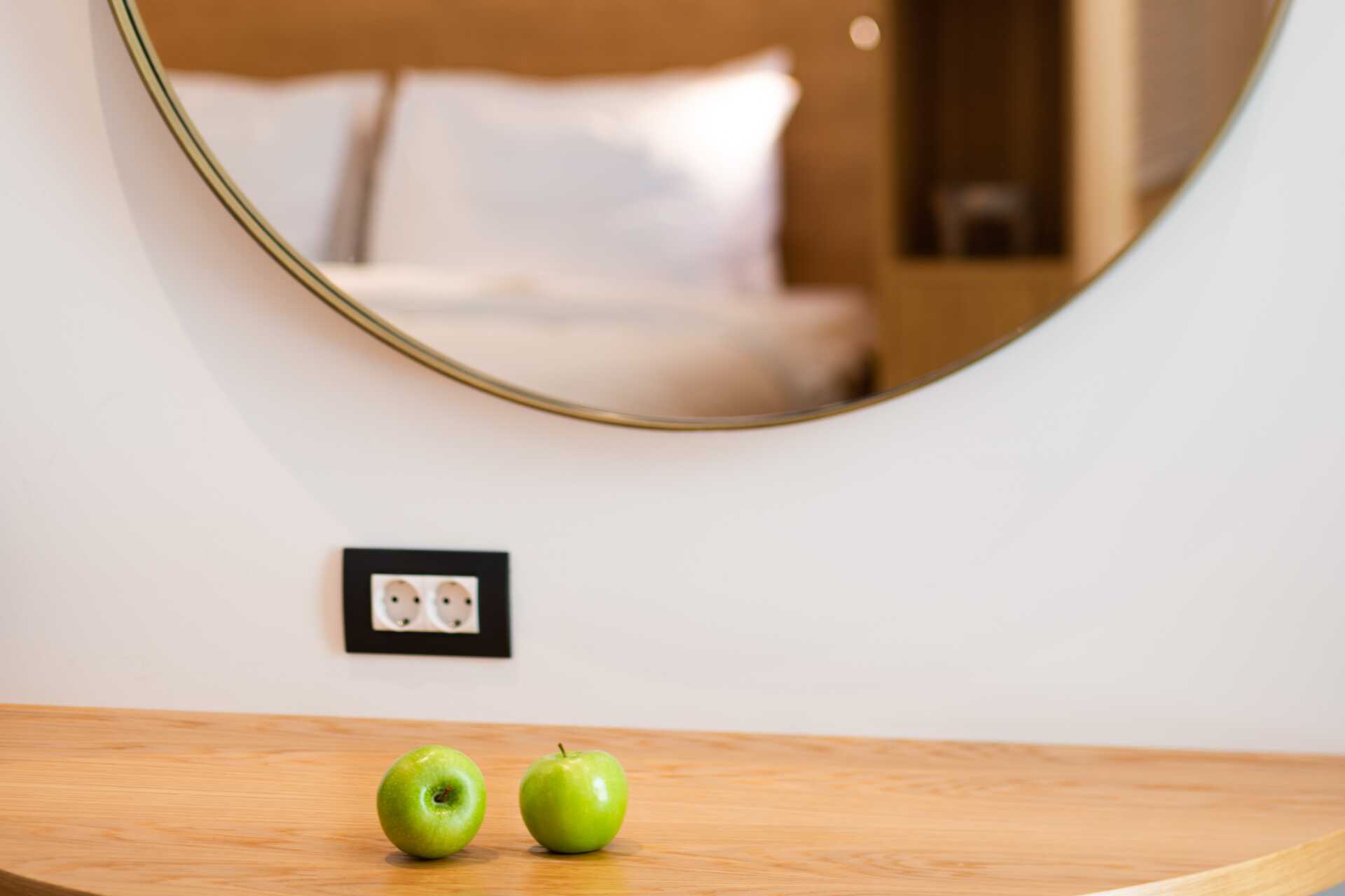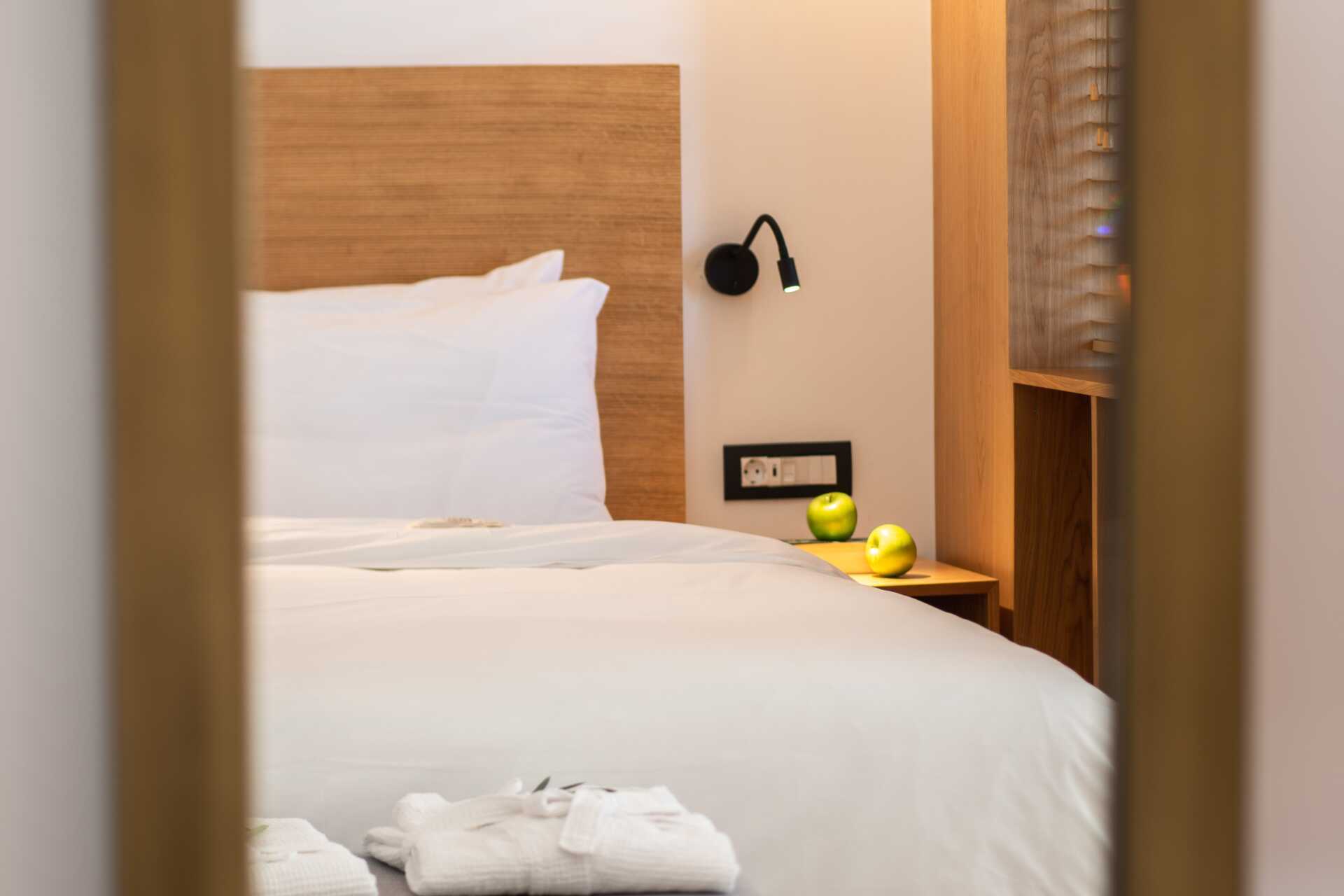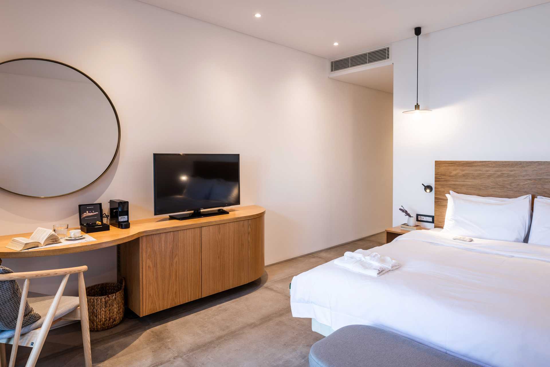 Tweepersoonskamer met balkon of grondterras, sommige balkons hebben zeezicht. Slaapcomfort is uitzonderlijk met een comfortabel tweepersoonsbed en linnengoed van hoge kwaliteit. Wifi, airconditioning en kluisje inbegrepen. Minibar/koelkast. Nespresso-apparaat, vier koffiecapsules zijn inbegrepen, extra capsules zijn te koop bij de receptie. Bluetooth speakers zijn te leen bij de receptie tegen een toeslag. Haardroger. Badkamer met douche en toilet. Om de dag schoonmaak.
