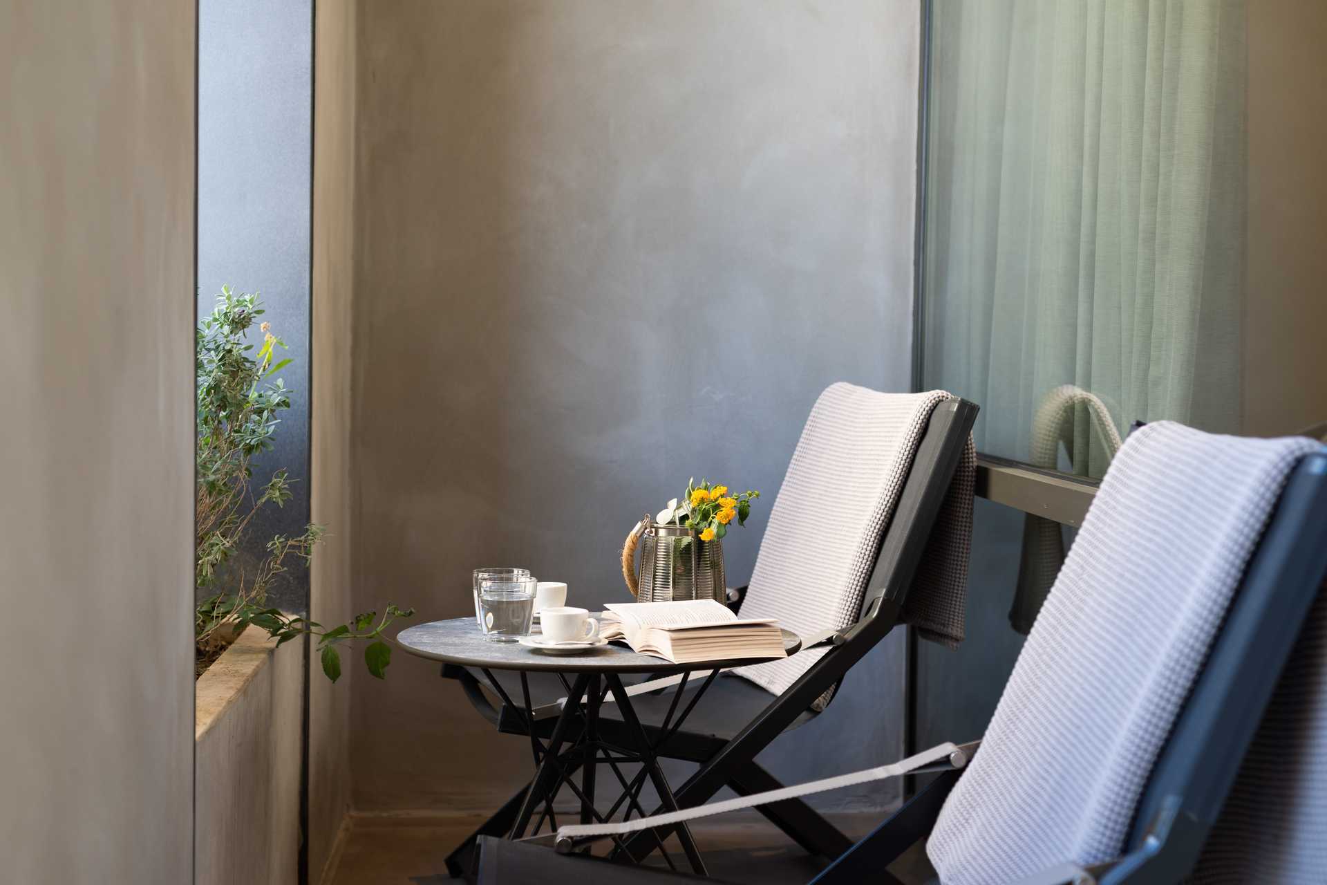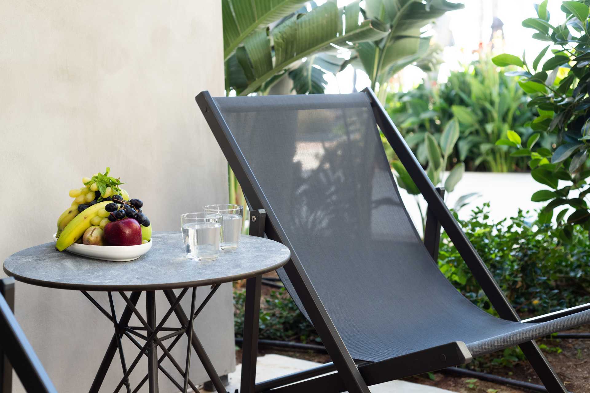 Eenpersoonskamer met terras. Het slaapcomfort is uitzonderlijk met een comfortabel eenpersoonsbed en linnengoed van hoge kwaliteit. Minibar/koelkast. Nespresso koffiemachine, vier koffiecapsules zijn inbegrepen, extra capsules zijn te koop bij de receptie. Bluetooth speakers zijn te leen bij de receptie tegen een toeslag. Wifi, airconditioning en kluisje inbegrepen. Haardroger. Badkamer met douche en toilet. Om de dag schoonmaak.
