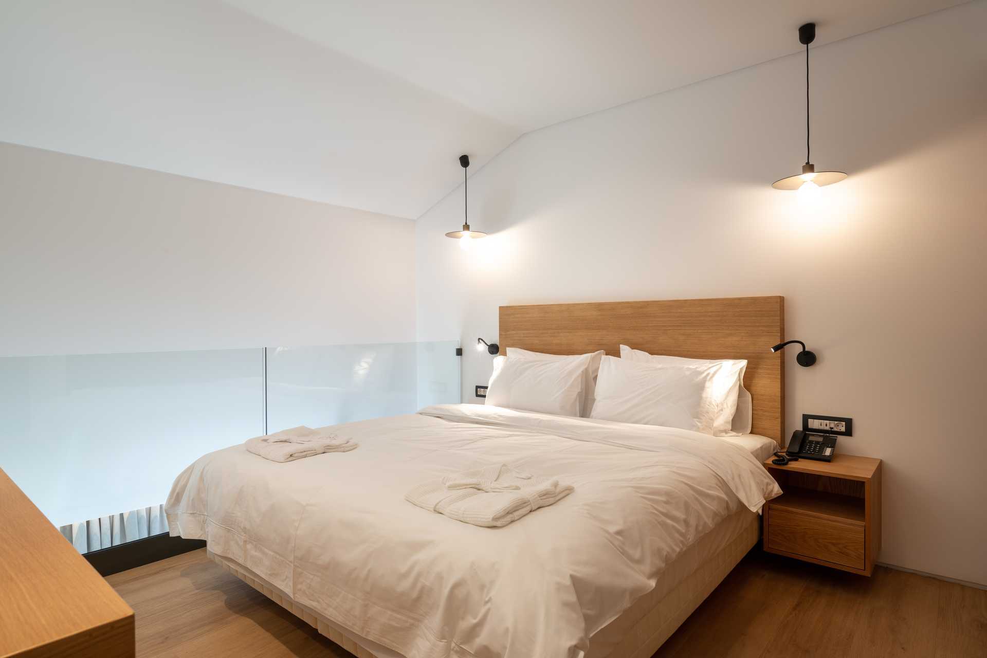 Duplex deluxe kamer Eén van de luxe kamers heeft een ingebouwd balkon, de andere kamers hebben een balkon met uitzicht op zee. Via een trap bereikt je de slaapvide waar slaapcomfort extra wordt benadrukt door een comfortabel tweepersoonsbed en hoogwaardig linnengoed. Mogelijkheid voor een extra bed in een eenpersoonsbed. Wifi, airconditioning en kluisje inbegrepen. Minibar/koelkast. Nespresso-koffiezetapparaat, inclusief vier koffiecapsules, indien gewenst kunt je bij de receptie meer capsules kopen. Bij de receptie kunt je tegen betaling van een borg Bluetooth-luidsprekers lenen. Föhn. Twee badkamers met douche en toilet op elke verdieping. Om de dag schoonmaken.