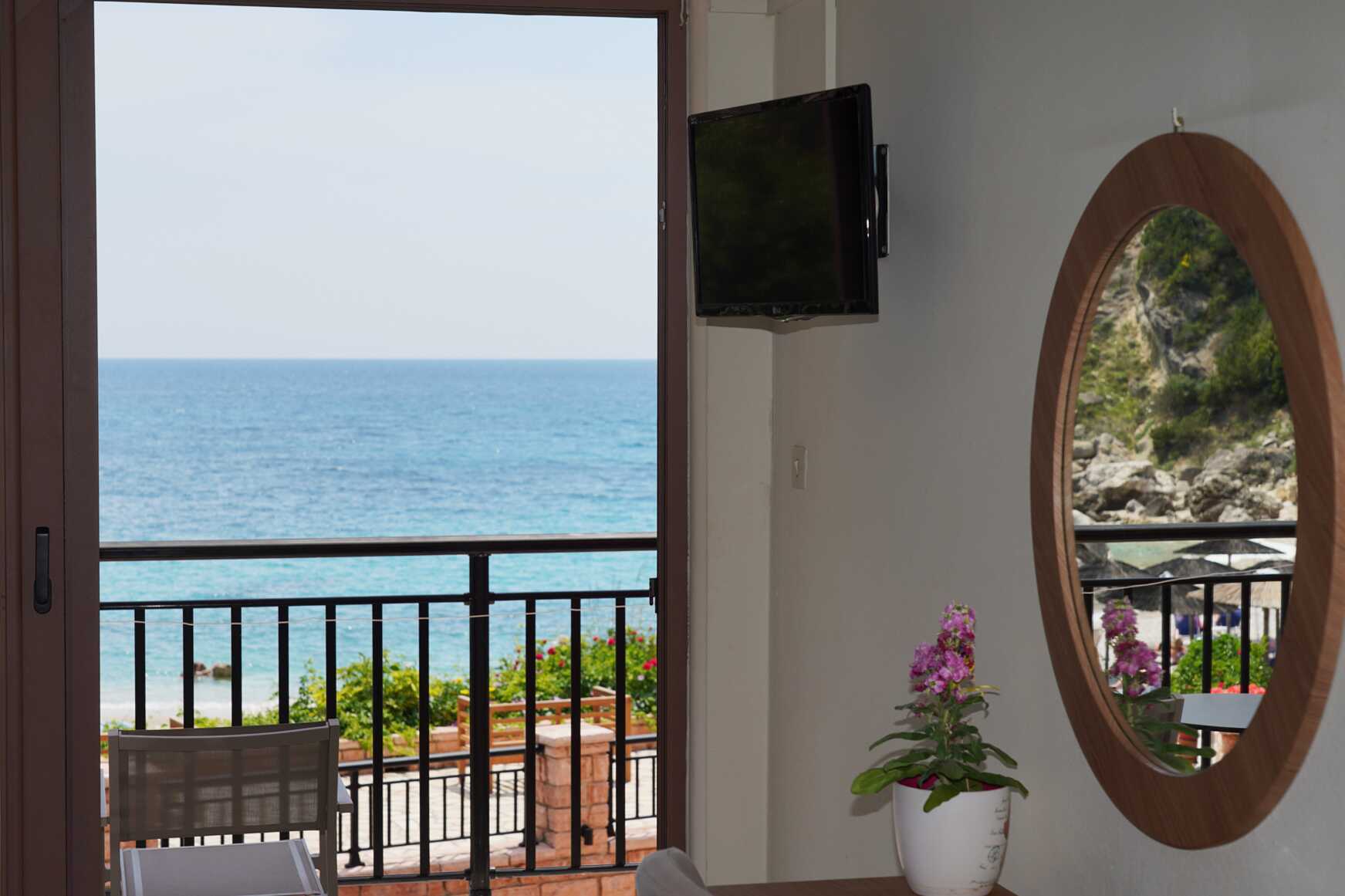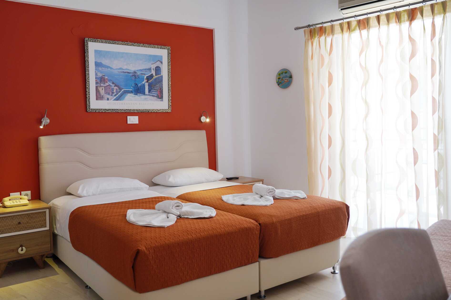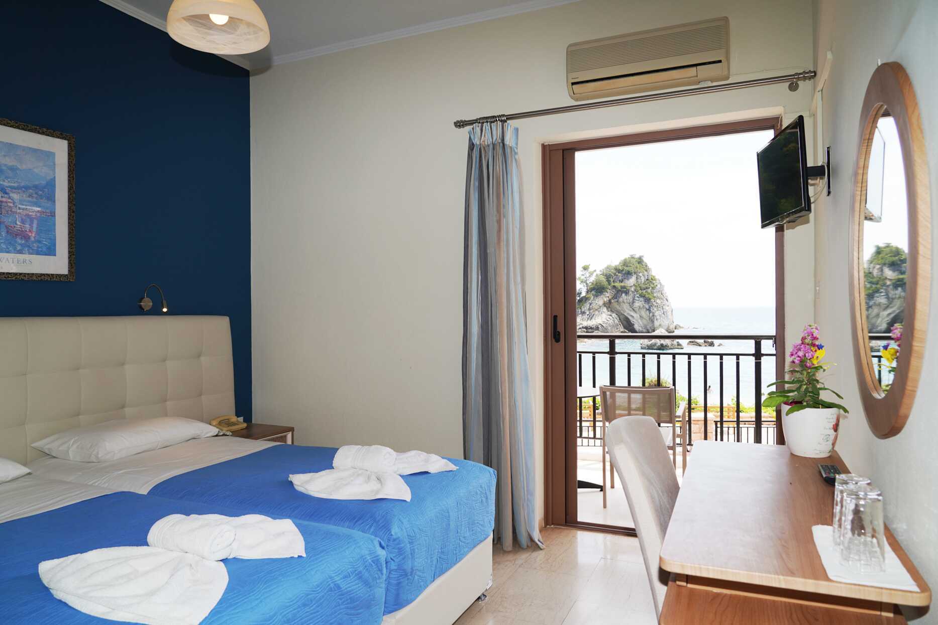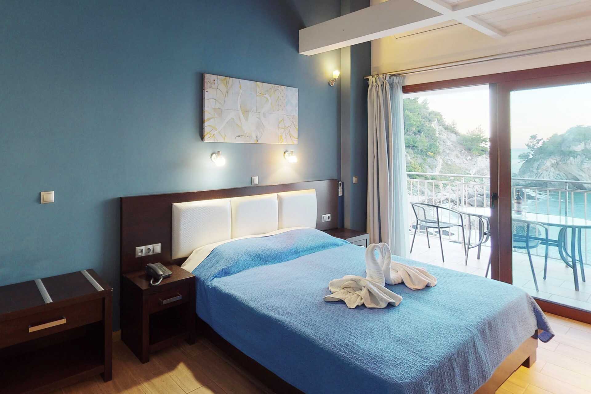 Deluxe kamer met balkon en zeezicht. Een tweepersoonsbed of twee eenpersoonsbedden. Mogelijkheid voor extra bed in slaapbank. Wifi, airconditioning en kluisje inbegrepen. Koelkast. Tv met internationale zenders. Föhn. Badkamer met douche en toilet. Schoonmaak 7 keer / week.