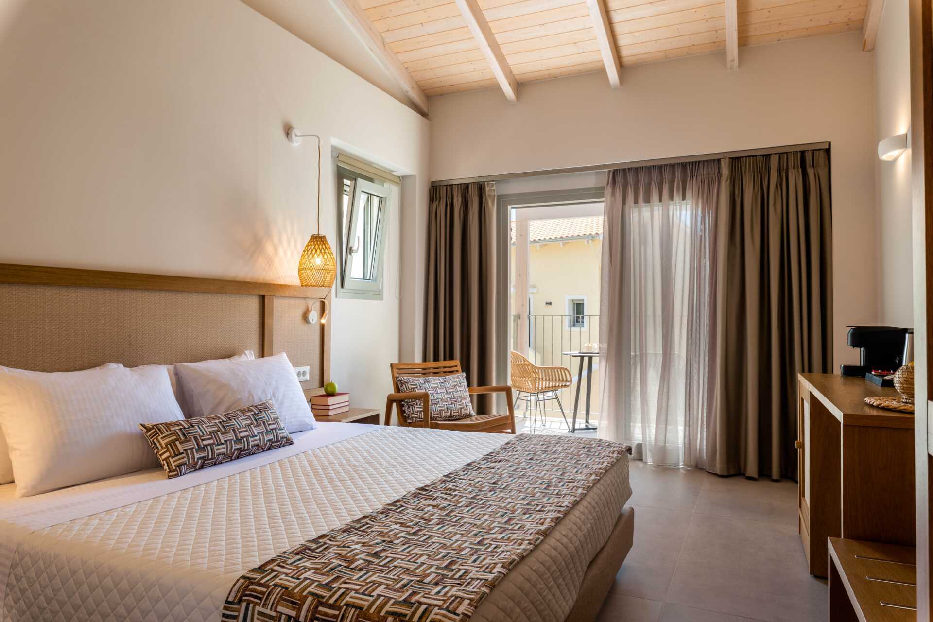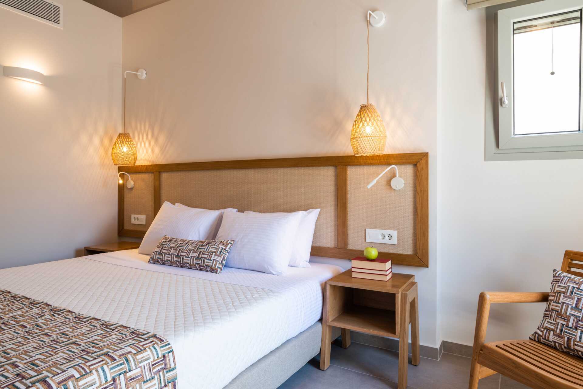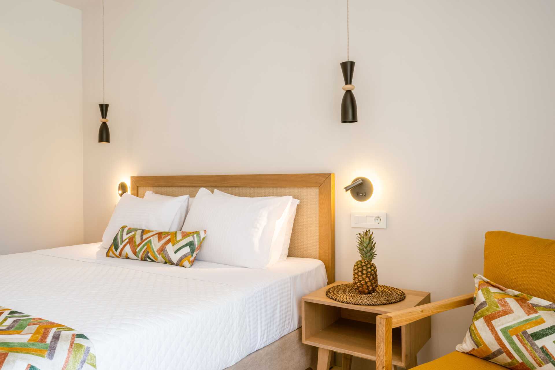 Tweepersoonskamer met balkon, sommige met uitzicht op zee. Een tweepersoonsbed. Wifi, airconditioning en kluis inbegrepen. Koelkast. Elektrische waterkoker en koffie en thee. Illy koffiezetapparaat - capsules inbegrepen bij aankomst en daarna te koop bij de receptie. Tv met internationale zenders. Föhn. Hotelslippers. Badkamer met douche en toilet. Schoonmaak 7 keer / week.