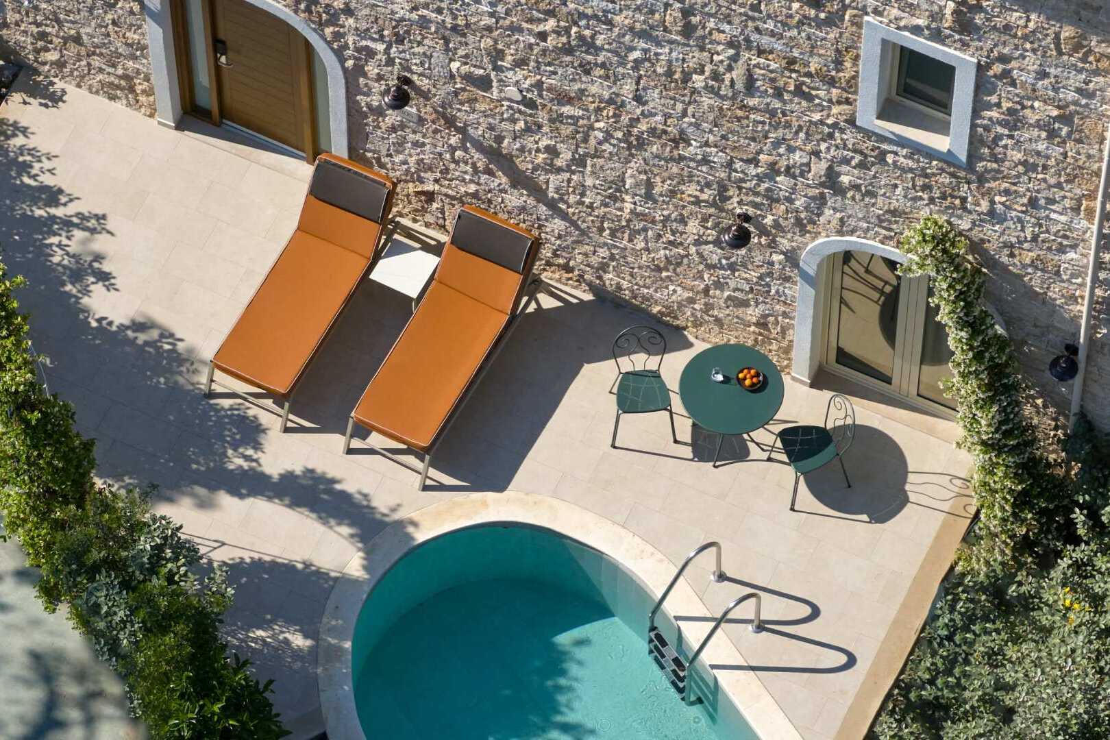 Suite met privézwembad op het terras. Ligstoelen bij het zwembad. Een tweepersoonsbed. Mogelijkheid tot extra bedden in slaapbank. Kussenmenu. Wifi, airconditioning en kluisje inbegrepen. Minibar. Nespresso-apparaat, capsules tegen betaling. Waterkoker, koffie en thee. Tv met internationale zenders. Badjassen en hotelslippers. Föhn. Badkamer met douche en toilet. Schoonmaak 7 keer/week. De suites bevinden zich in een apart gebouw en om het strand en andere delen van het hotel te bereiken, moet je een kleine weg met beperkt verkeer oversteken.