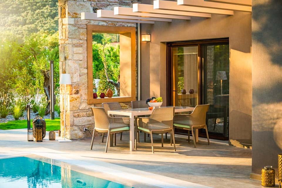 Handdoeken voor bij het zwembad, Outdoor Pool, Zwembad, Loungestoelen, Parasol, Privé zwembad, Sun terrace