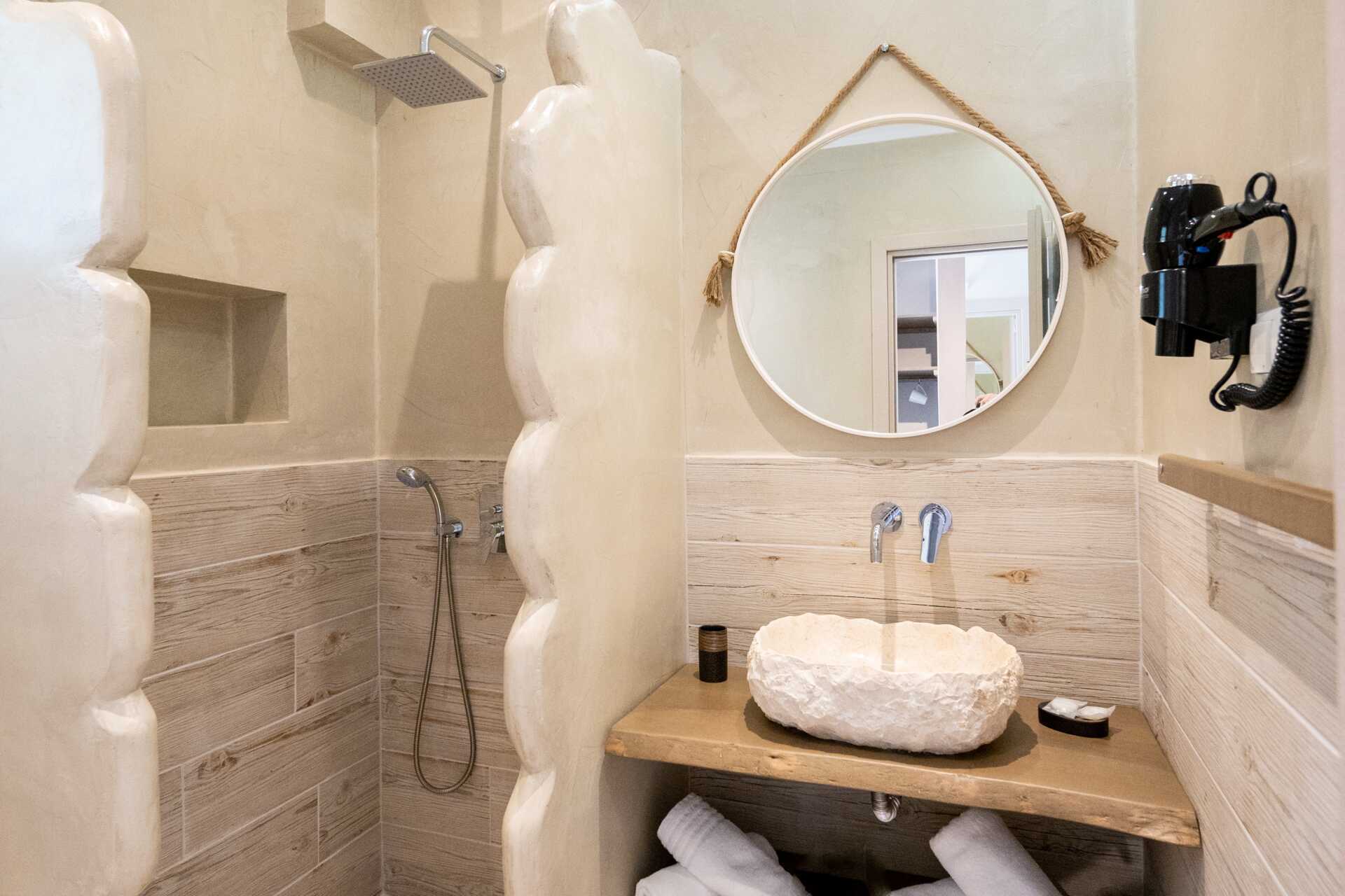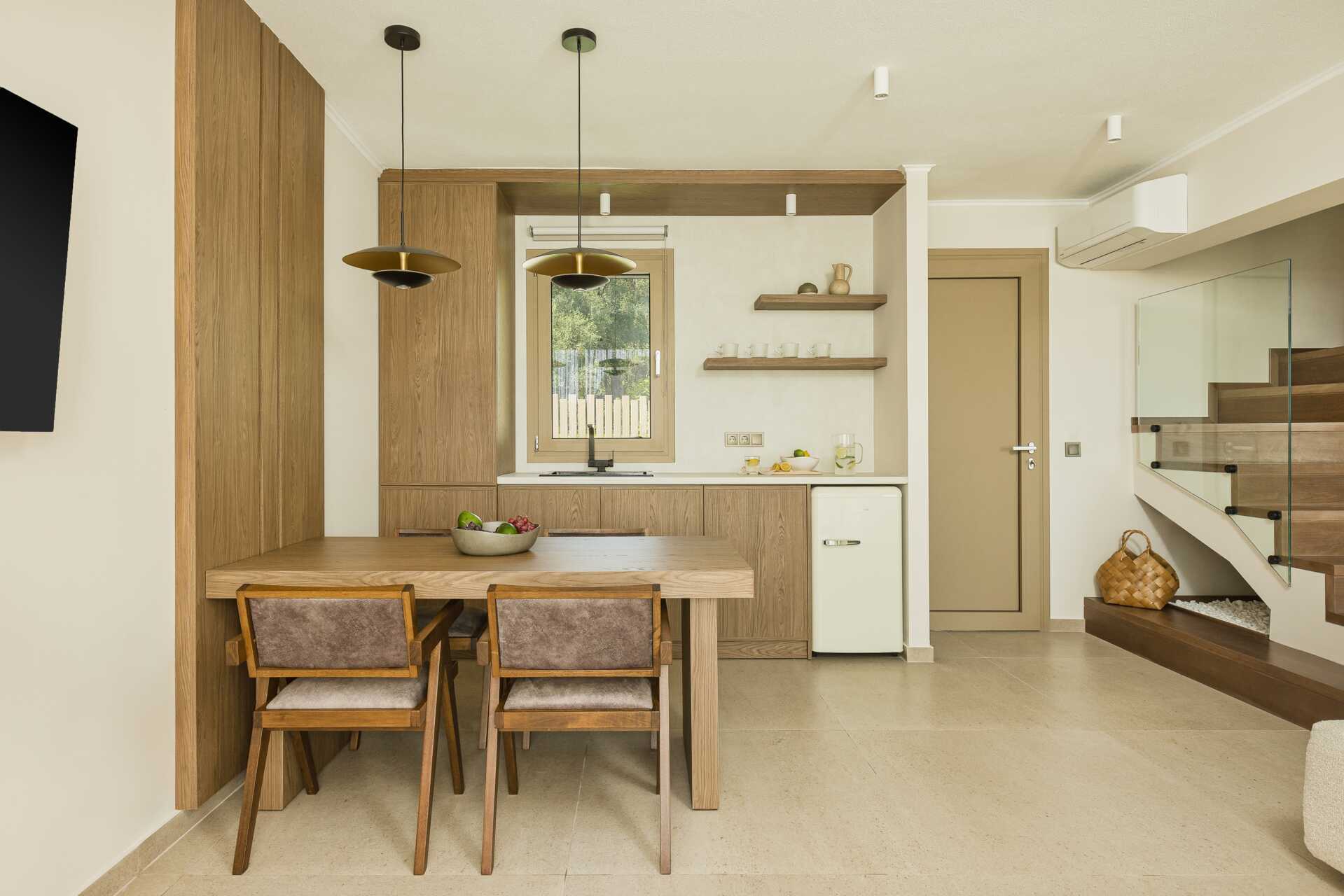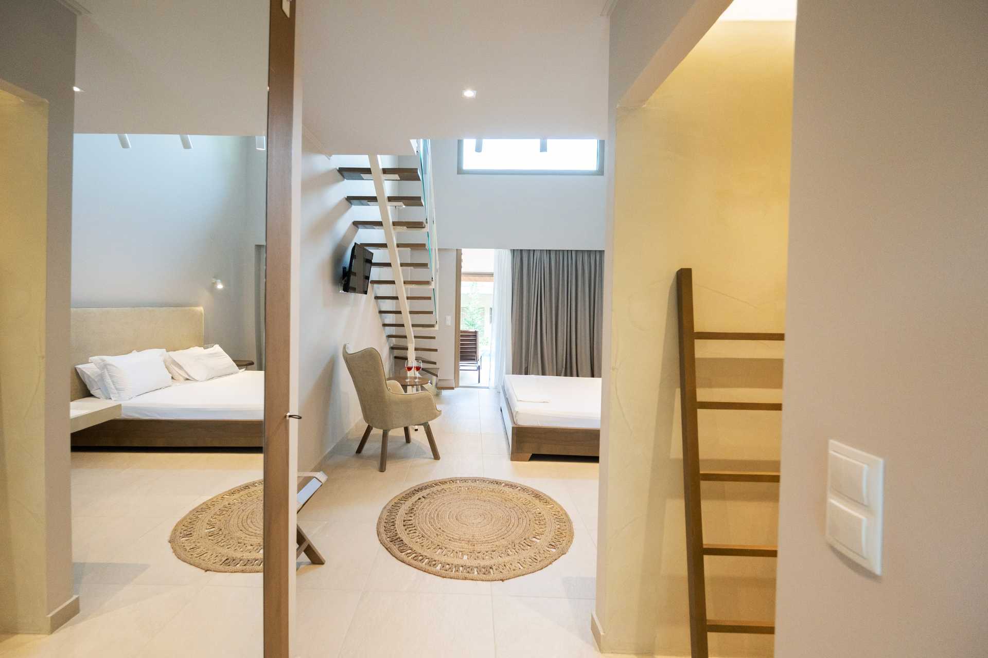 Suite met gelijkvloers terras, ligstoelen en privézwembad. Op de begane grond is er een tweepersoonsbed en een badkamer. Boven is er een slaapzolder met nog een tweepersoonsbed. Wifi, airconditioning (op de bovenverdieping) en kluisje inbegrepen. Koelkast. Waterkoker en koffie en thee. Espressomachine. TV met internationale zenders. Föhn. Badkamer met douche en toilet. Schoonmaak 7 keer/week.