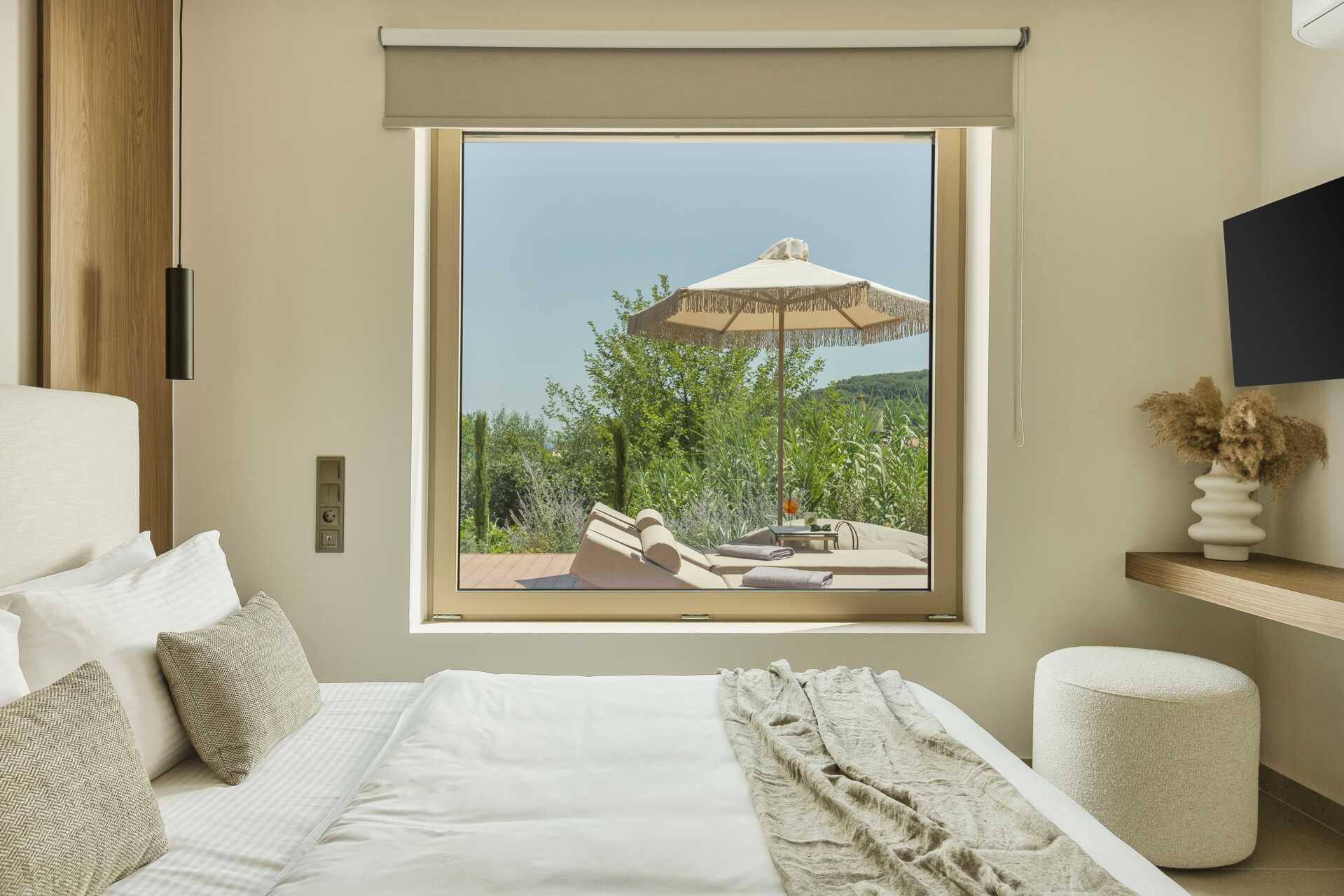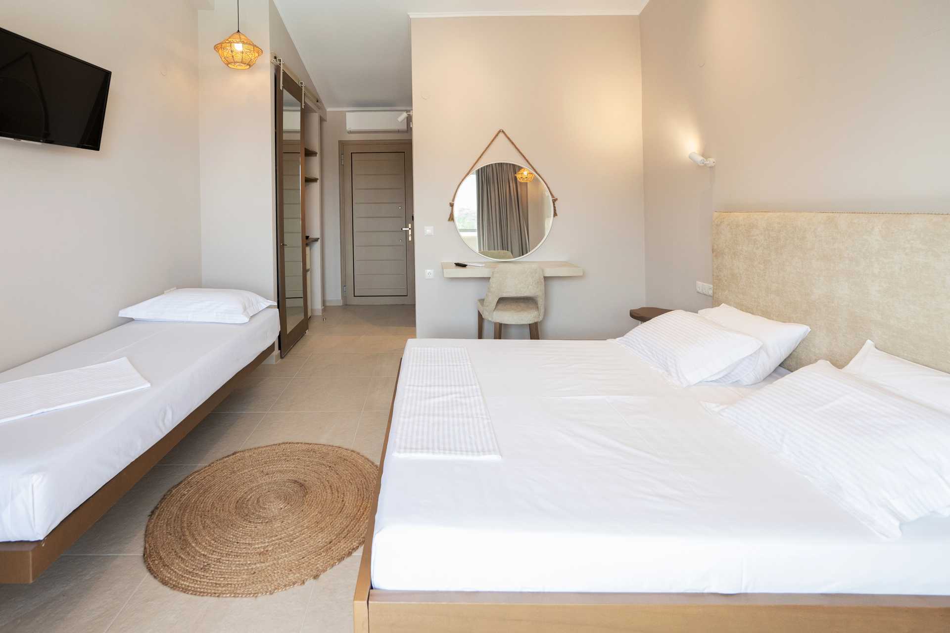 Superior kamer met balkon of terras. De kamers bevinden zich in een gebouw dat is gebouwd voor de zomer van 2025. Een tweepersoonsbed. Wifi, airconditioning en kluisje inbegrepen. Koelkast. Waterkoker met koffie en thee. Tv met internationale zenders. Bluetooth-luidspreker. Strijkijzer en strijkplank. Badjassen en hotelslippers. Föhn. Badkamer met douche en toilet. Schoonmaak 7 keer/week.